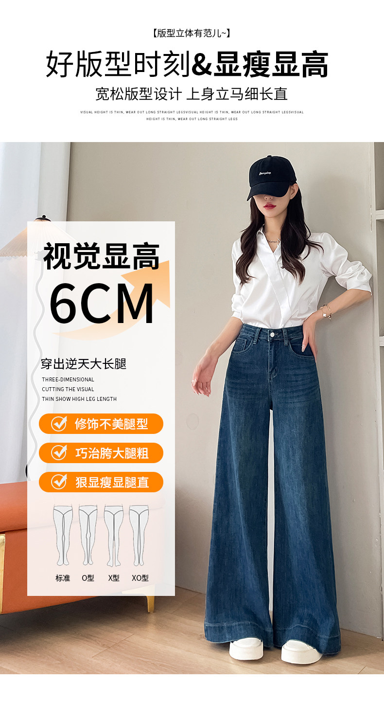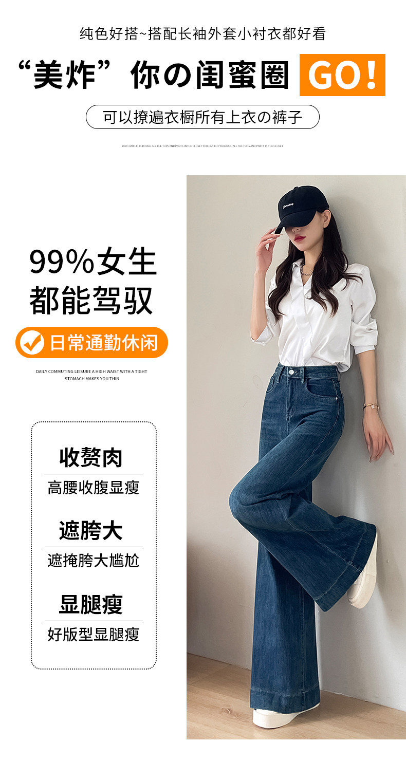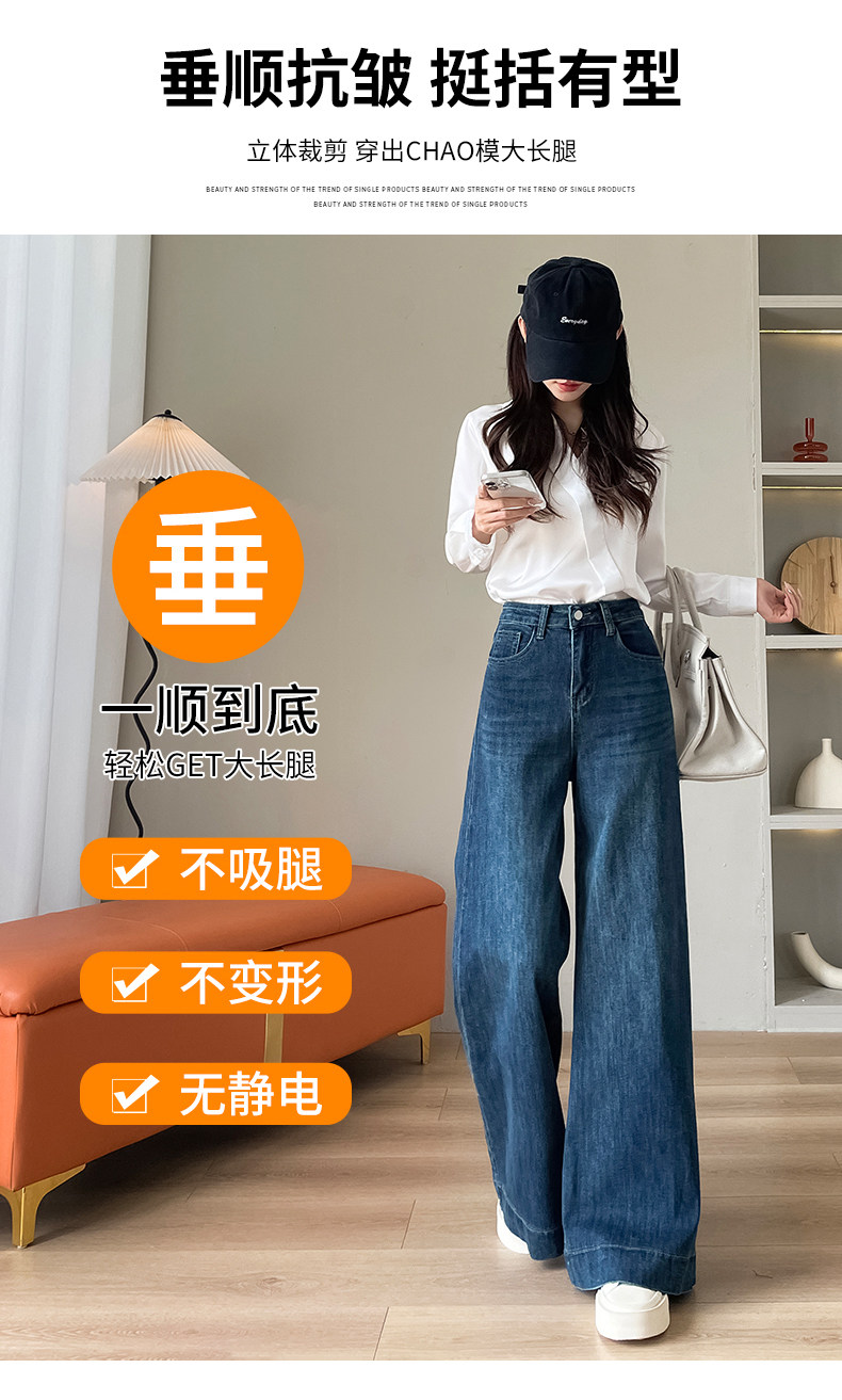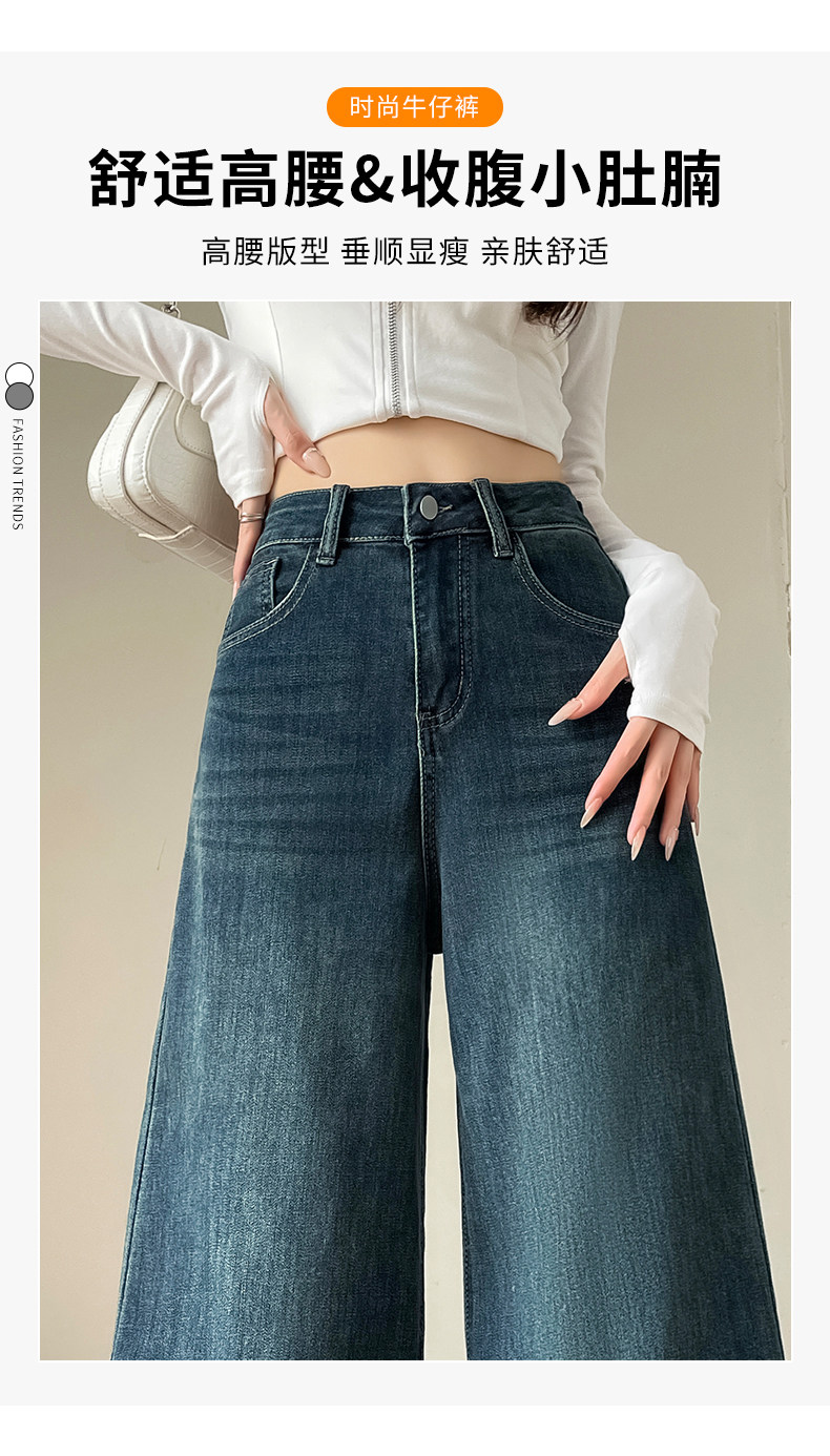 Wide-leg flared jeans for women 2026 high-end, loose, winter floor-length straight pants plus velvet floor-length pants