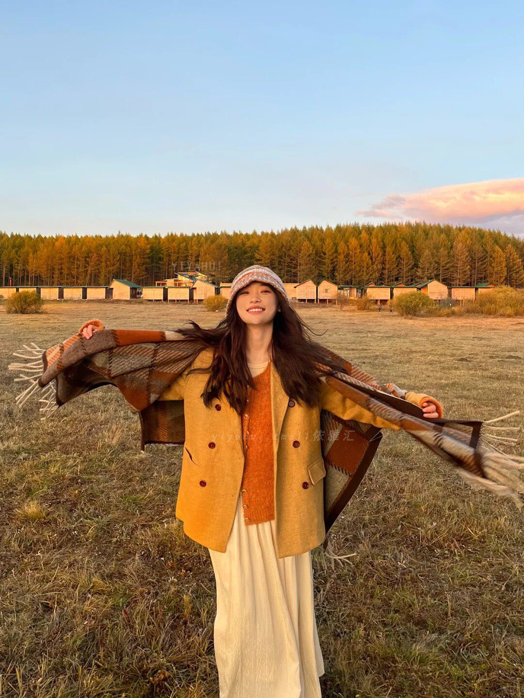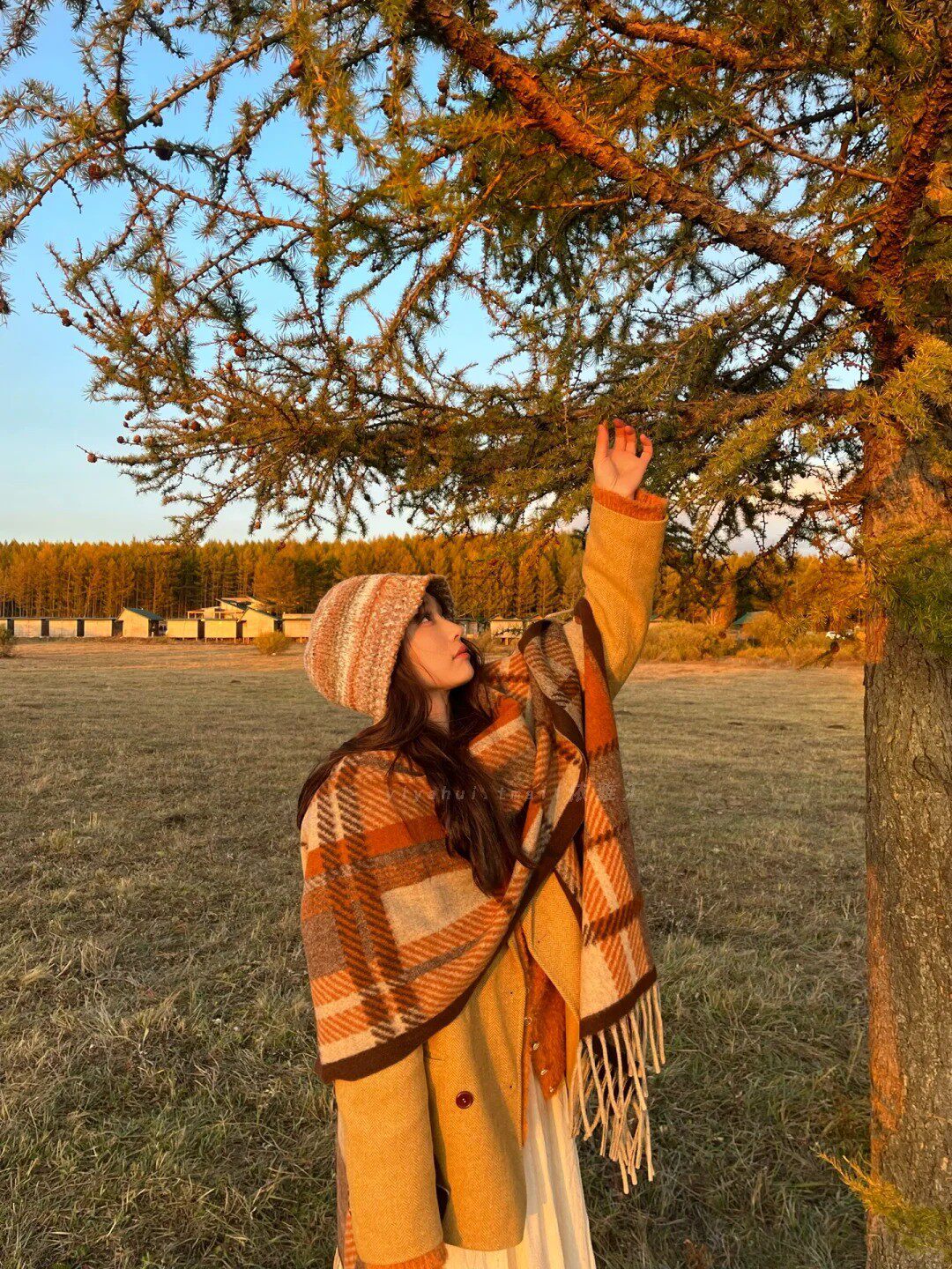 Northwest Xinjiang Tibet autumn and winter shawl Western Sichuan Yunnan wear travel outer wear Maillard women's thick scarf dual use