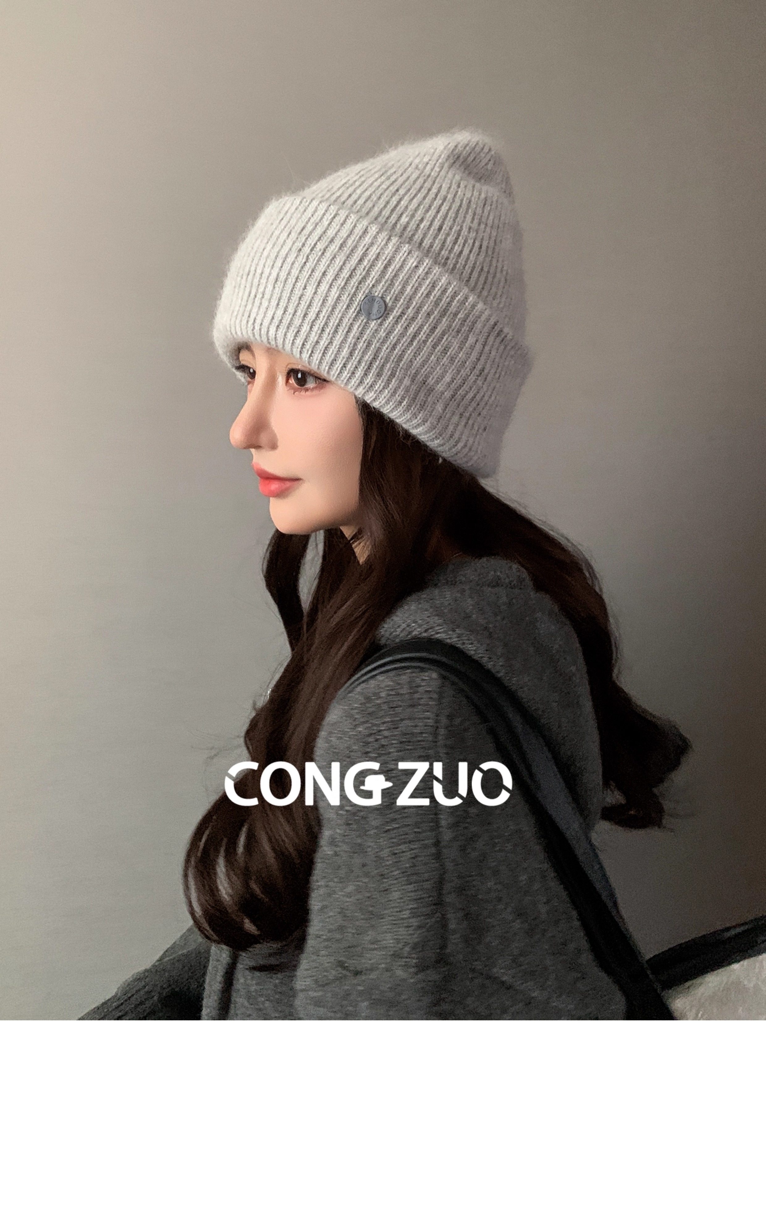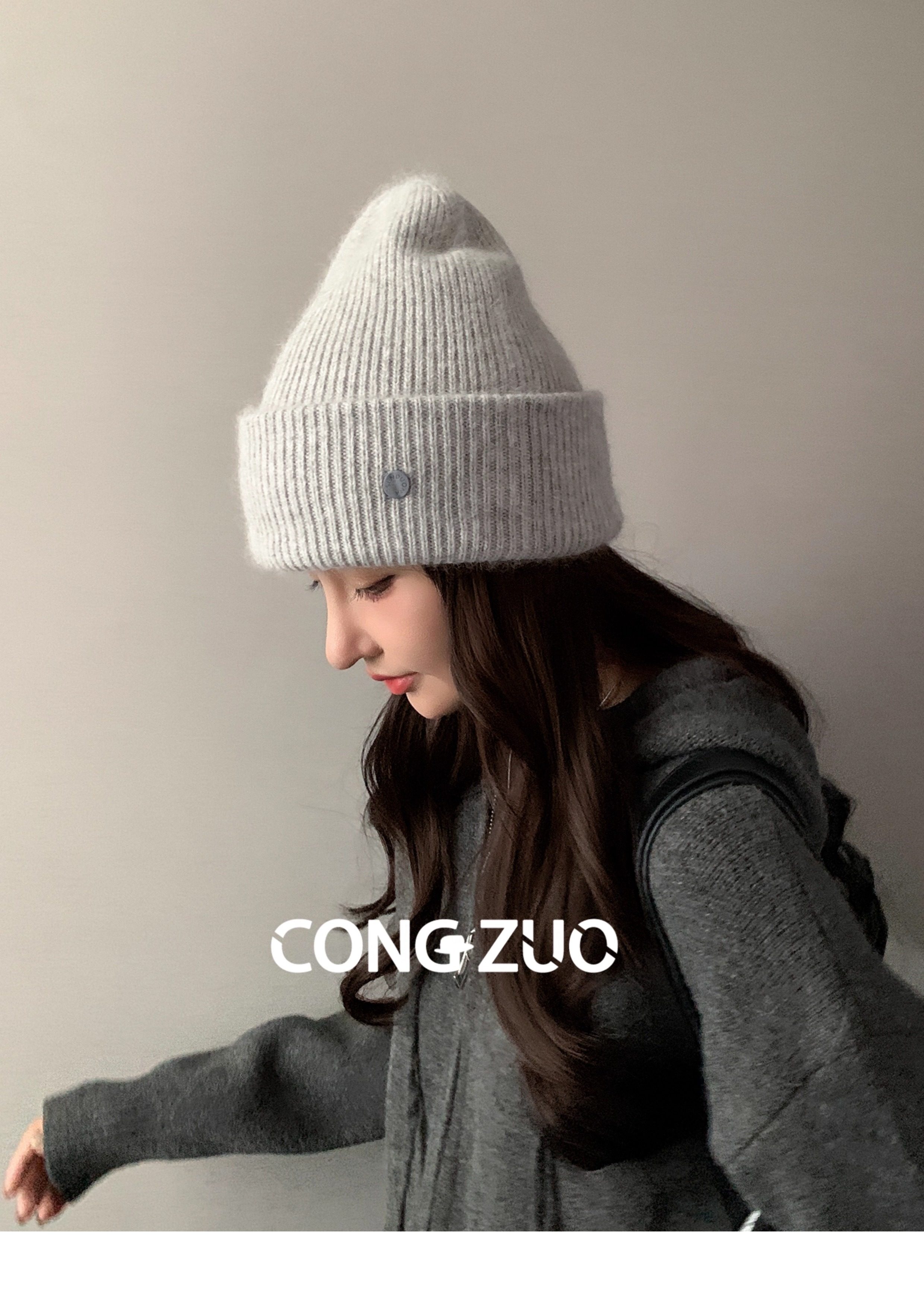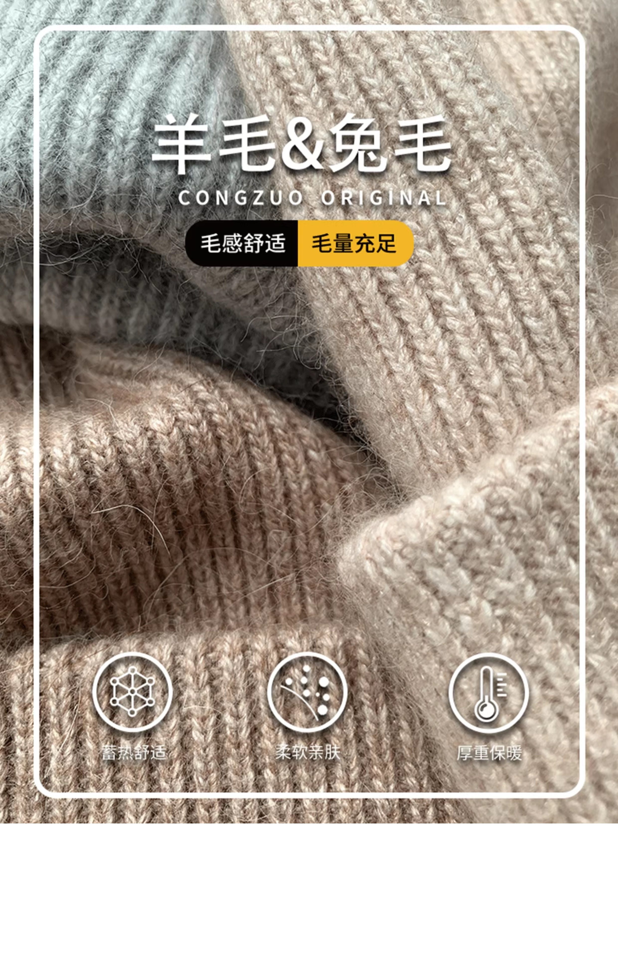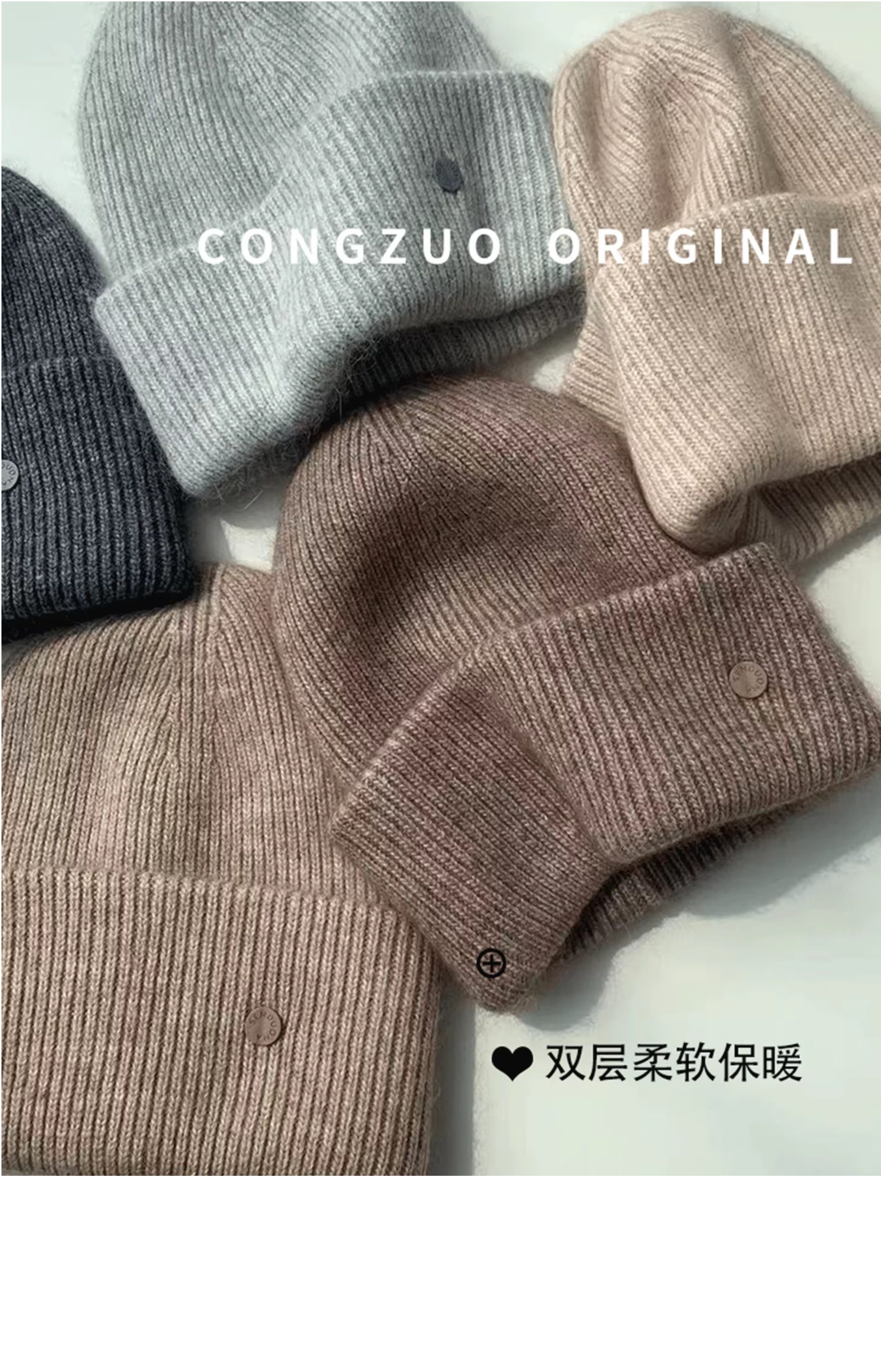 High-density knitted hat for women in winter woolen warm ear protection hat showing face small wool cold hat exquisite thickened toe cap