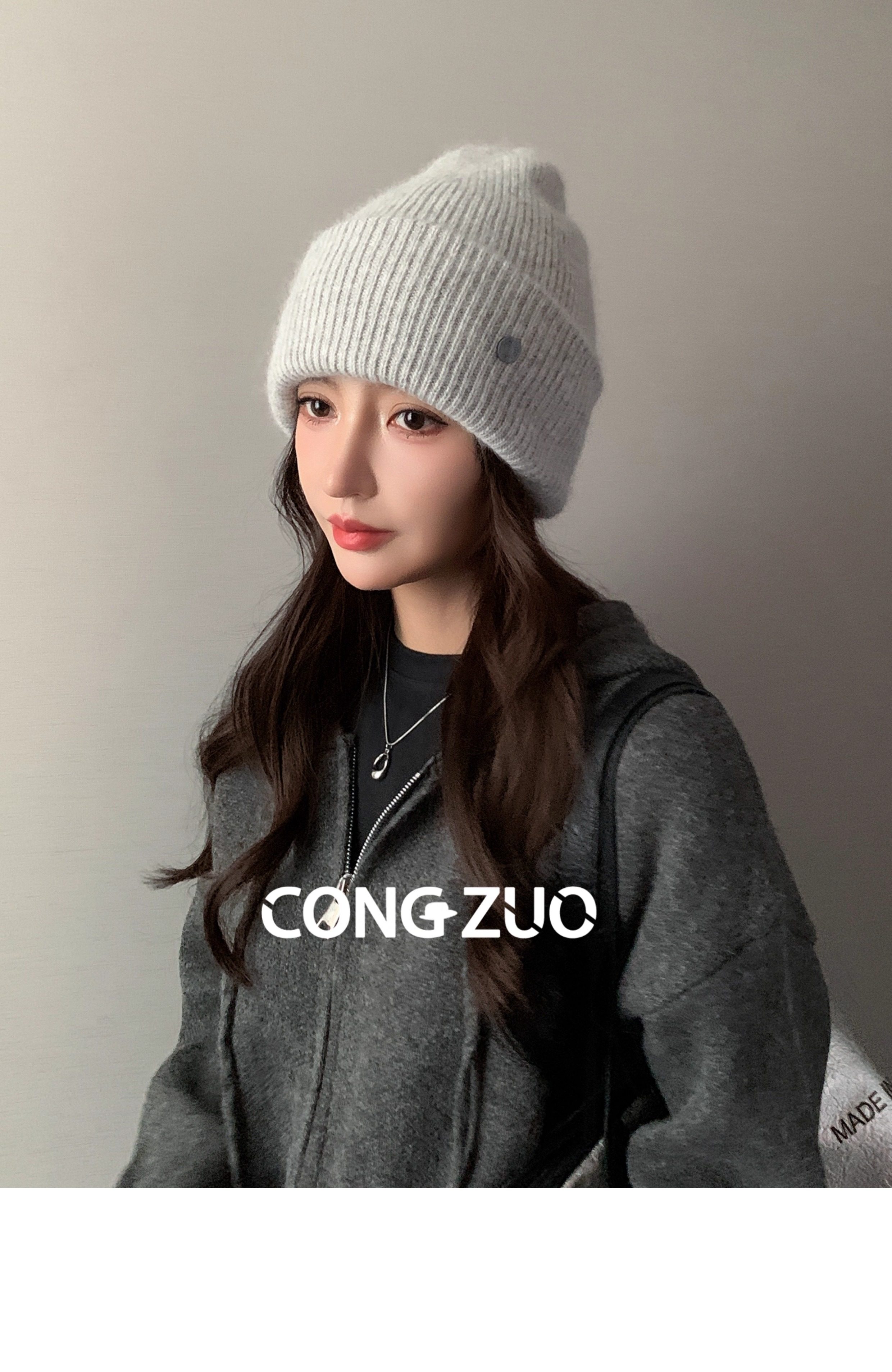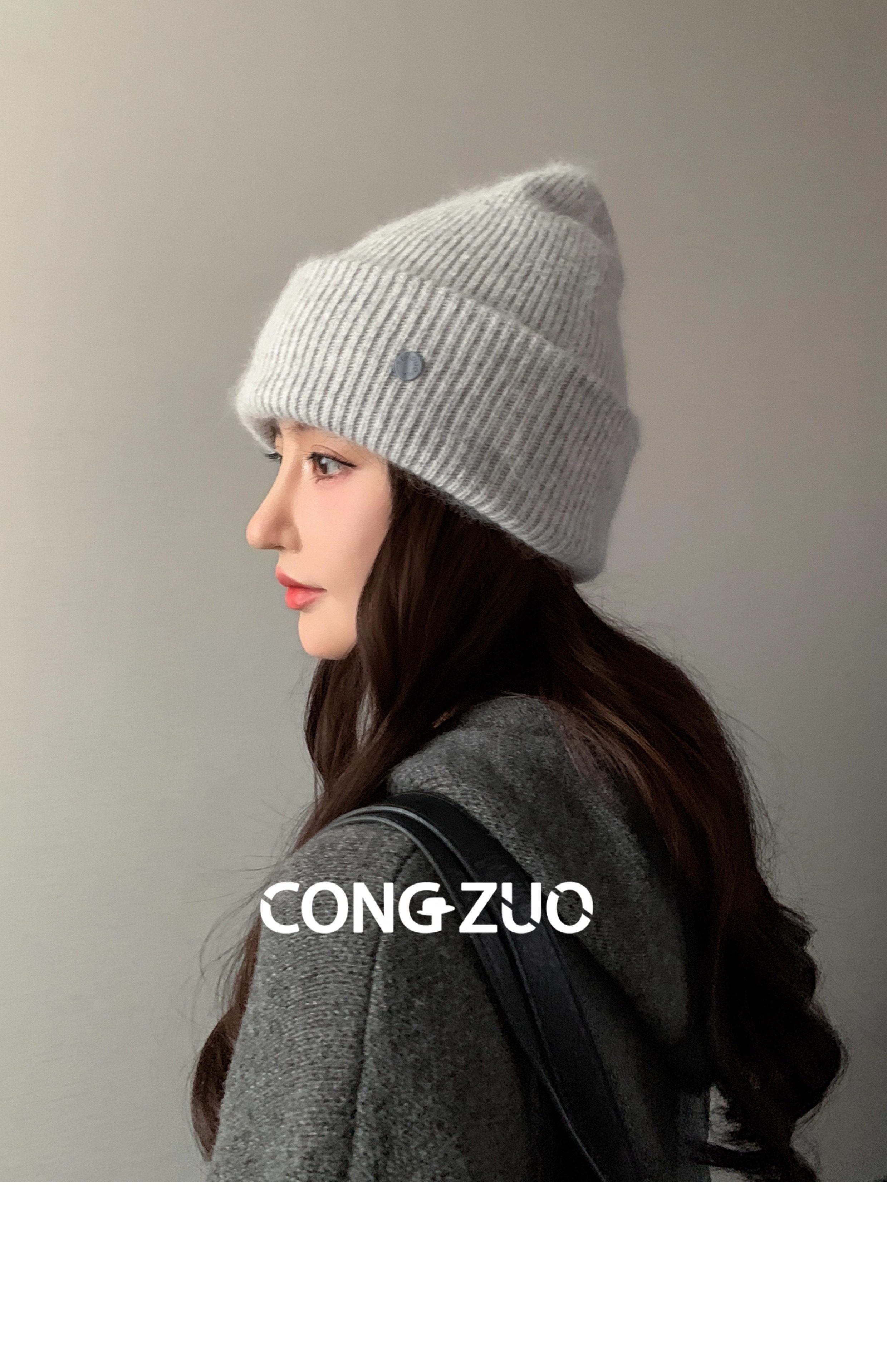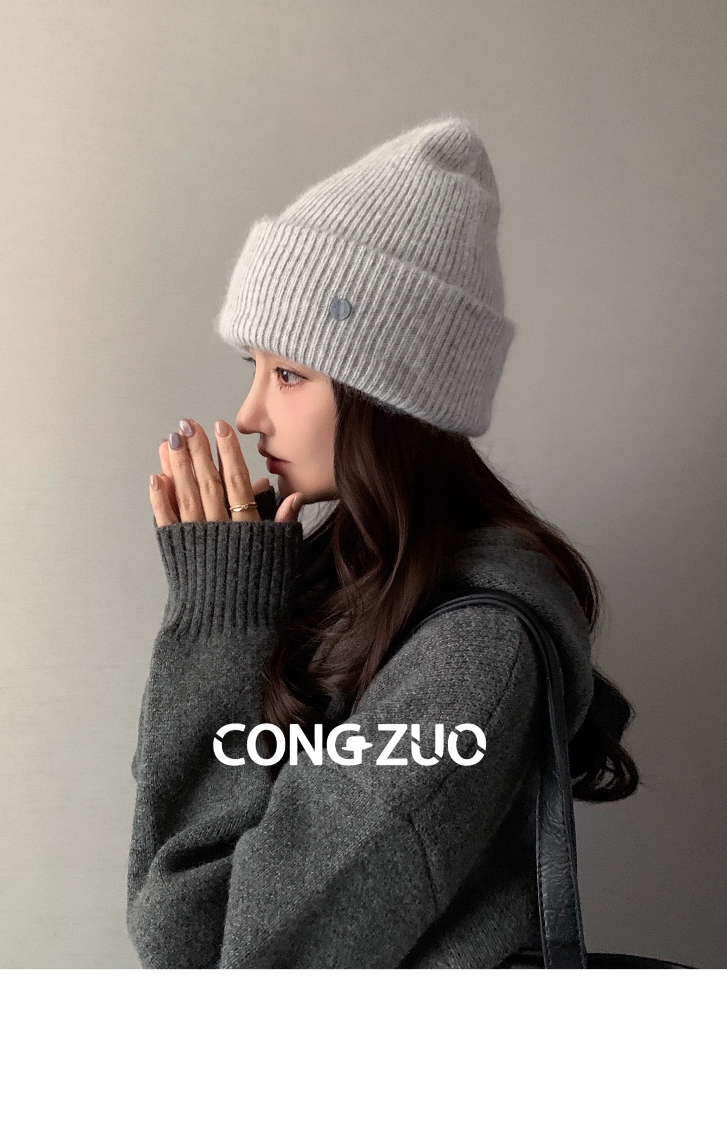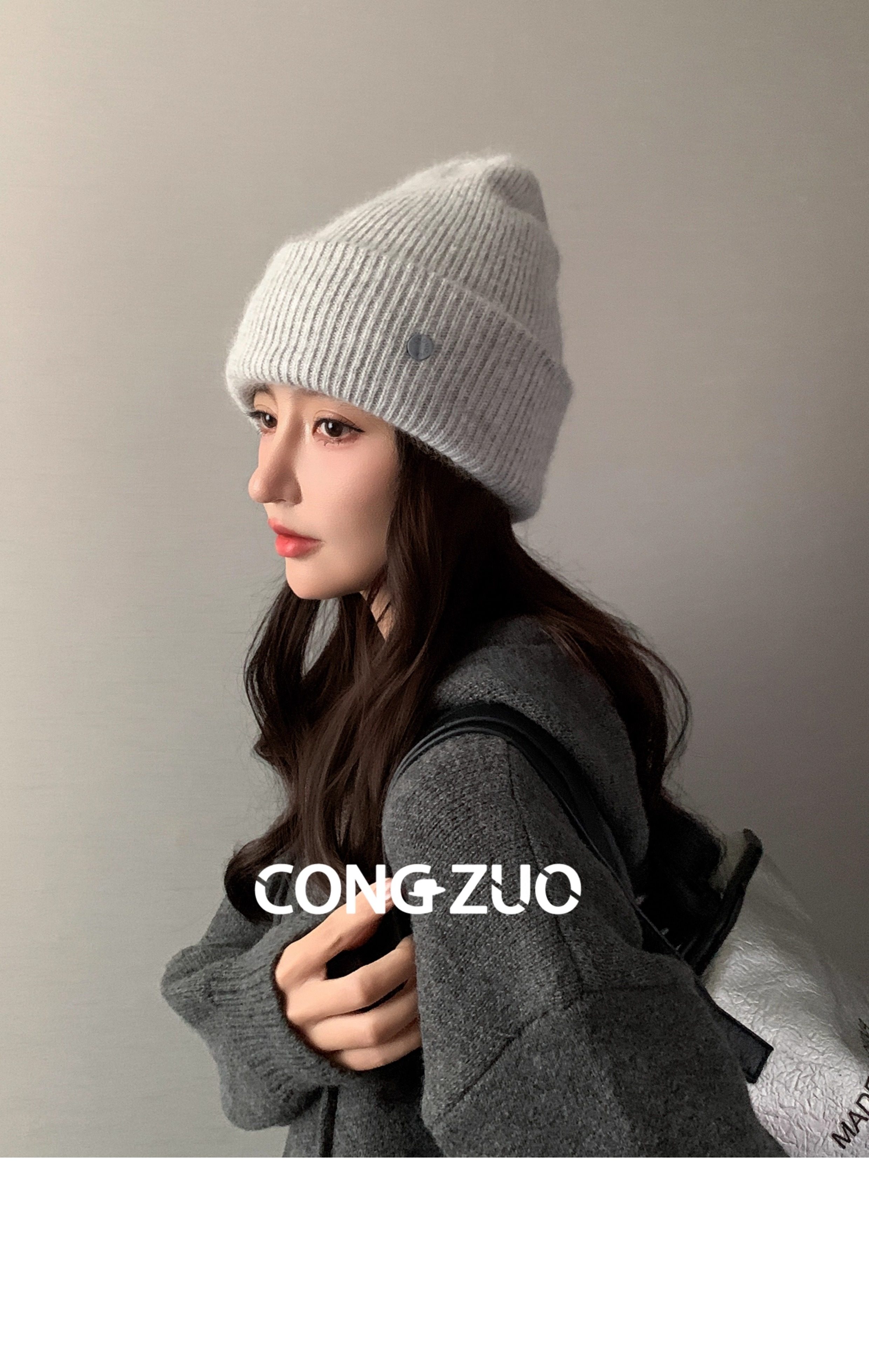 High-density knitted hat for women in winter woolen warm ear protection hat showing face small wool cold hat exquisite thickened toe cap