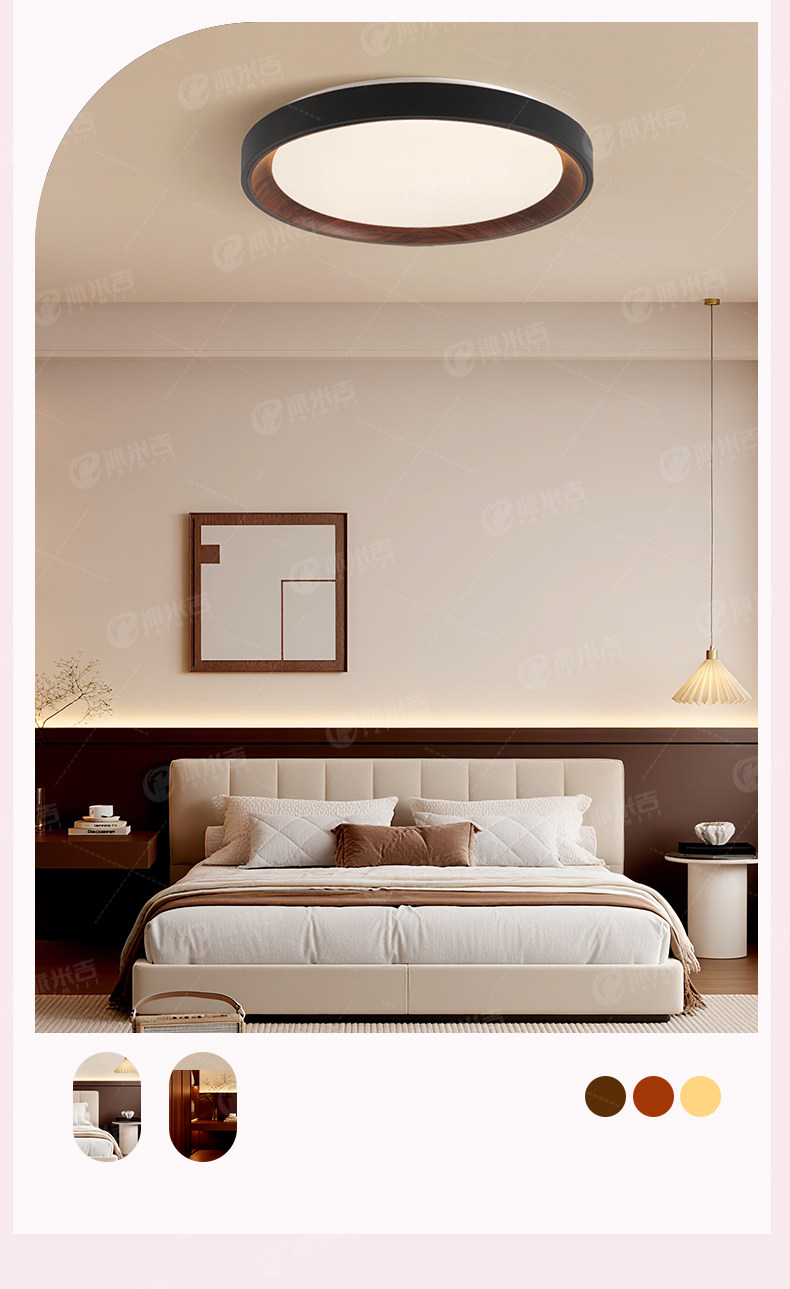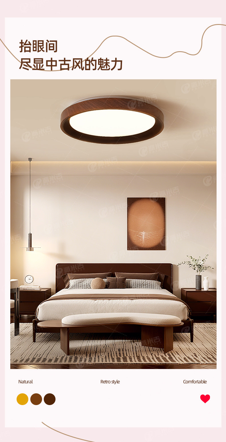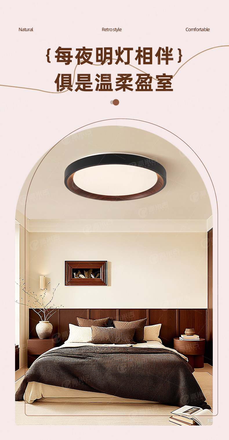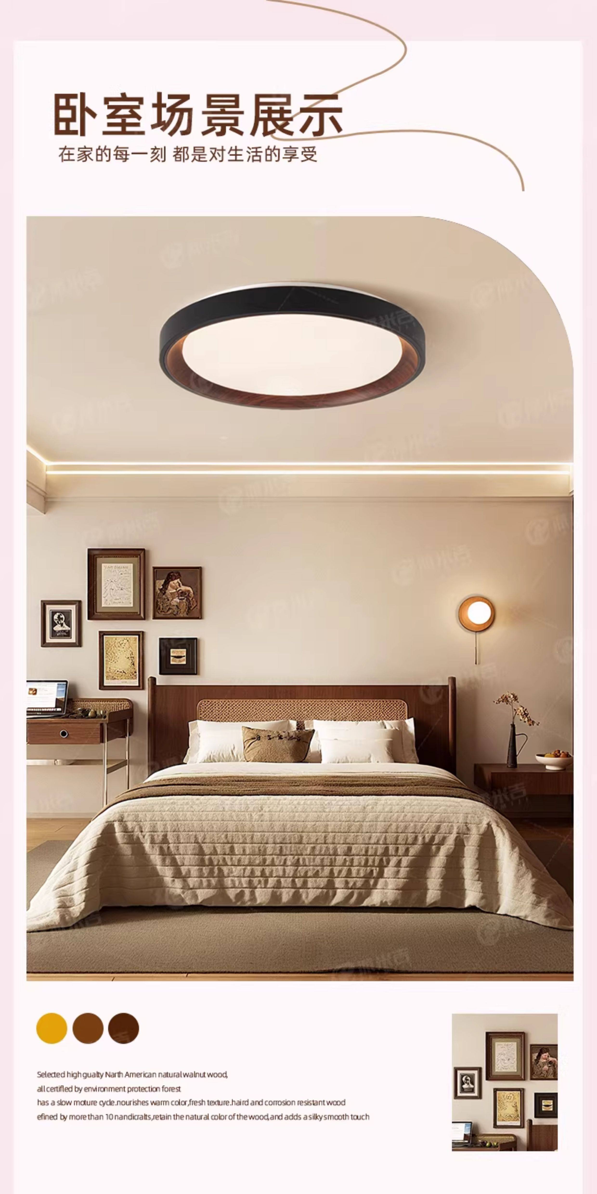 Medieval Style Bedroom Ceiling Lamp, New Style, Simple and Elegant, High-End Master Bedroom Study Lamp, Round Smart Room Lighting Lamp