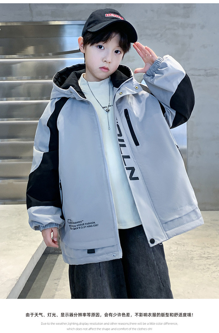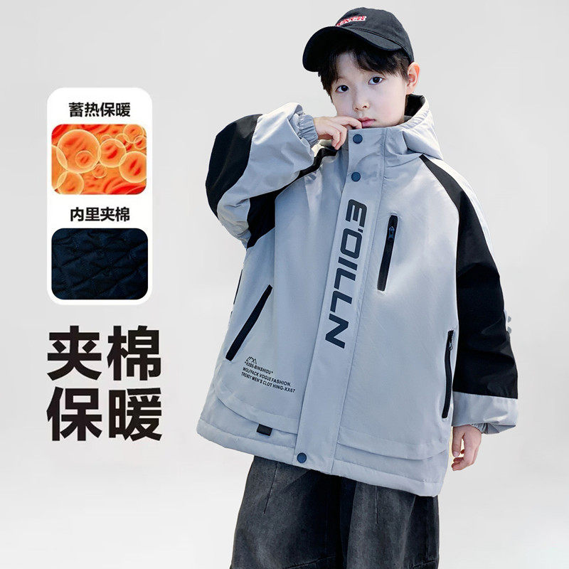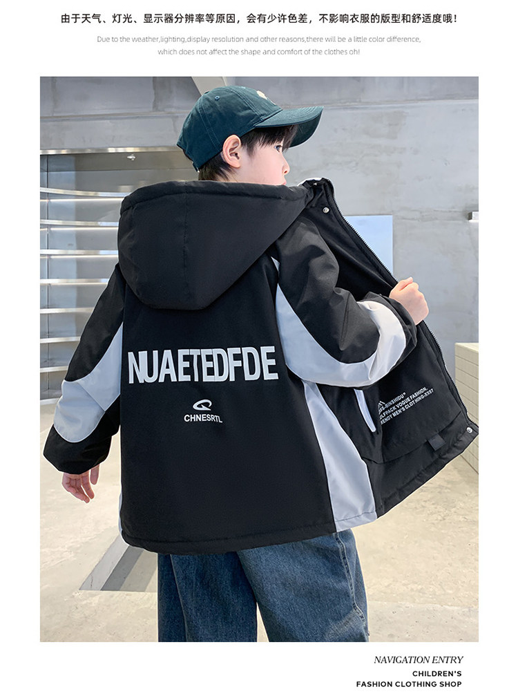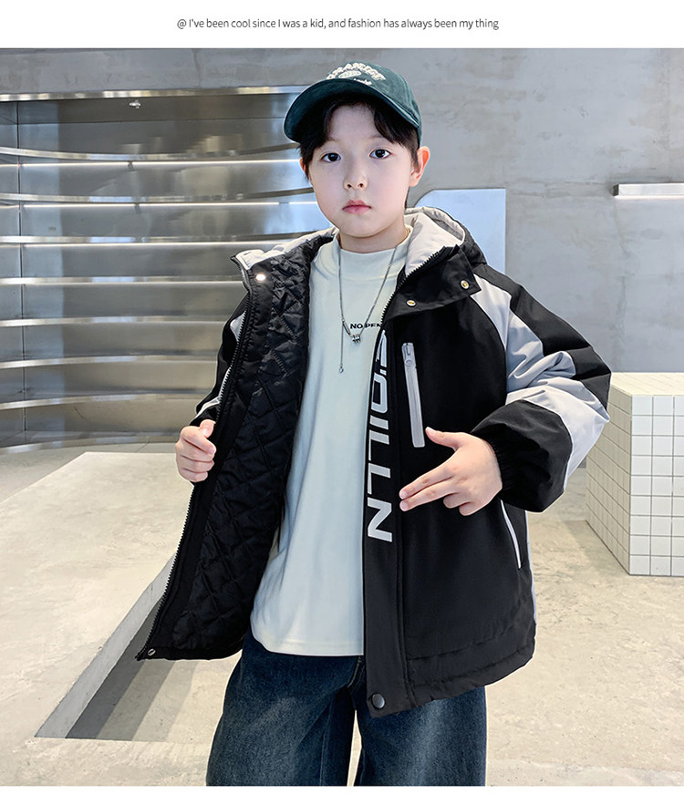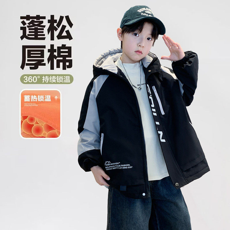 Boys' Jacket, Autumn and Winter Style, Padded and Thickened, for Older Boys, Stylish and Fashionable Hooded Windbreaker for Winter