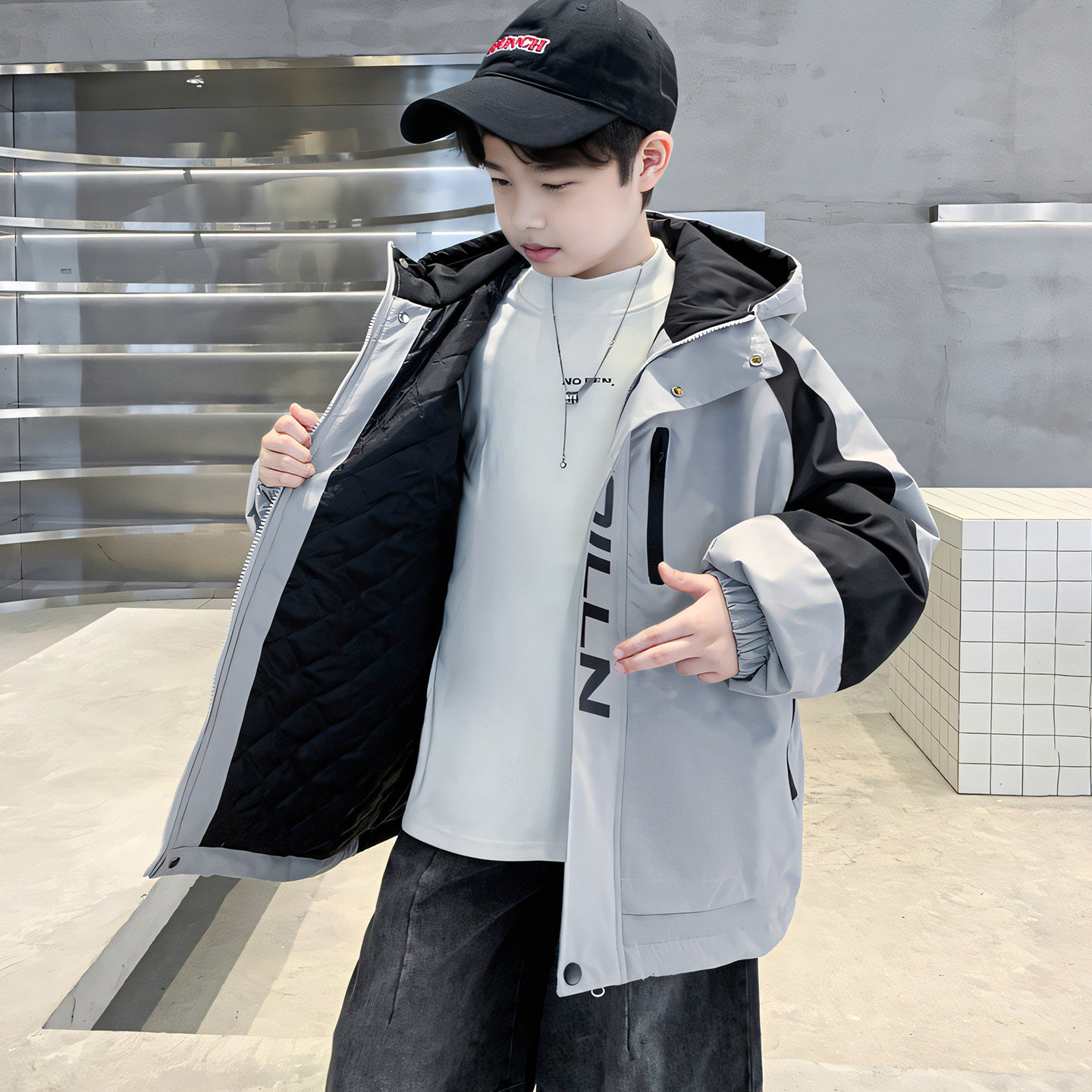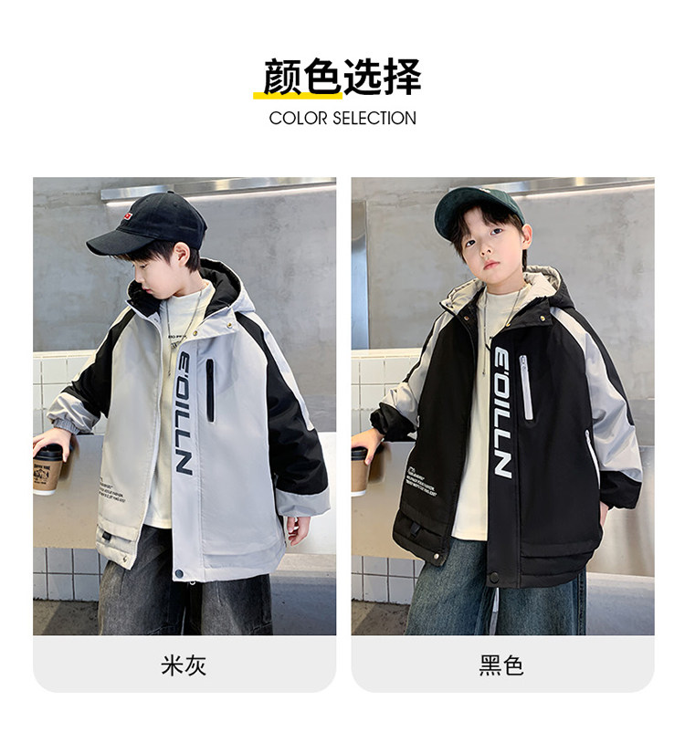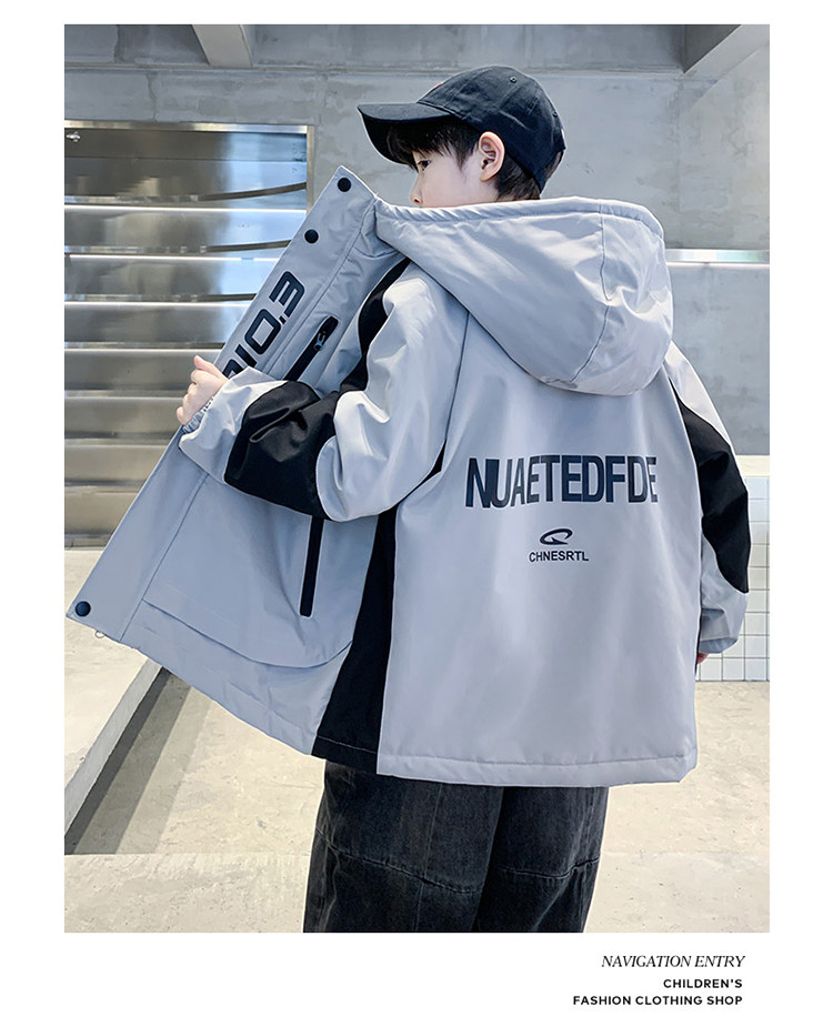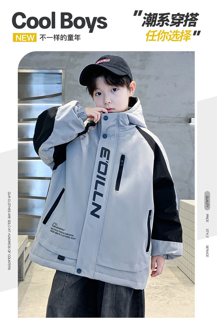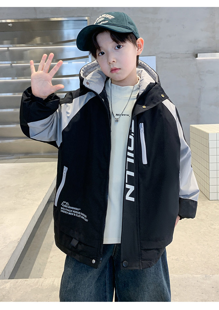 Boys' Jacket, Autumn and Winter Style, Padded and Thickened, for Older Boys, Stylish and Fashionable Hooded Windbreaker for Winter