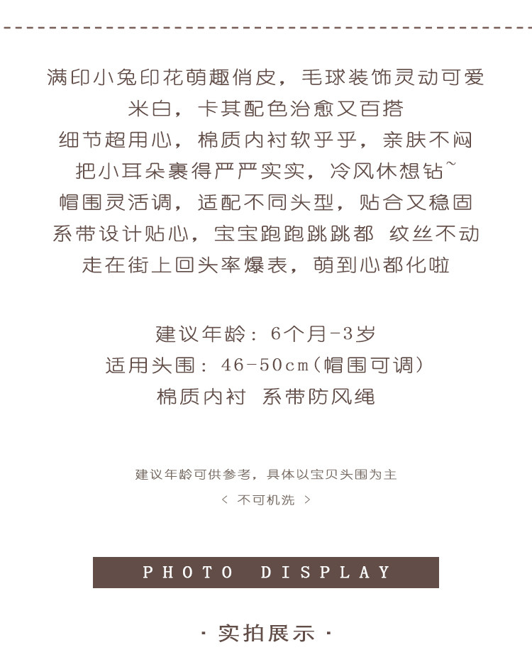 Baby hat autumn and winter female baby rabbit plush thickened warm children's fetal hat newborn baby ear protection hat