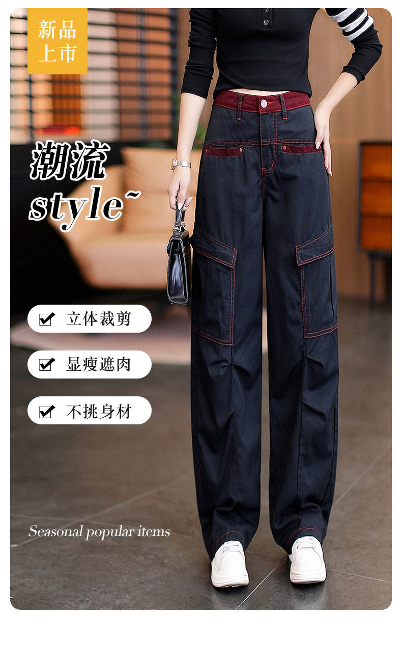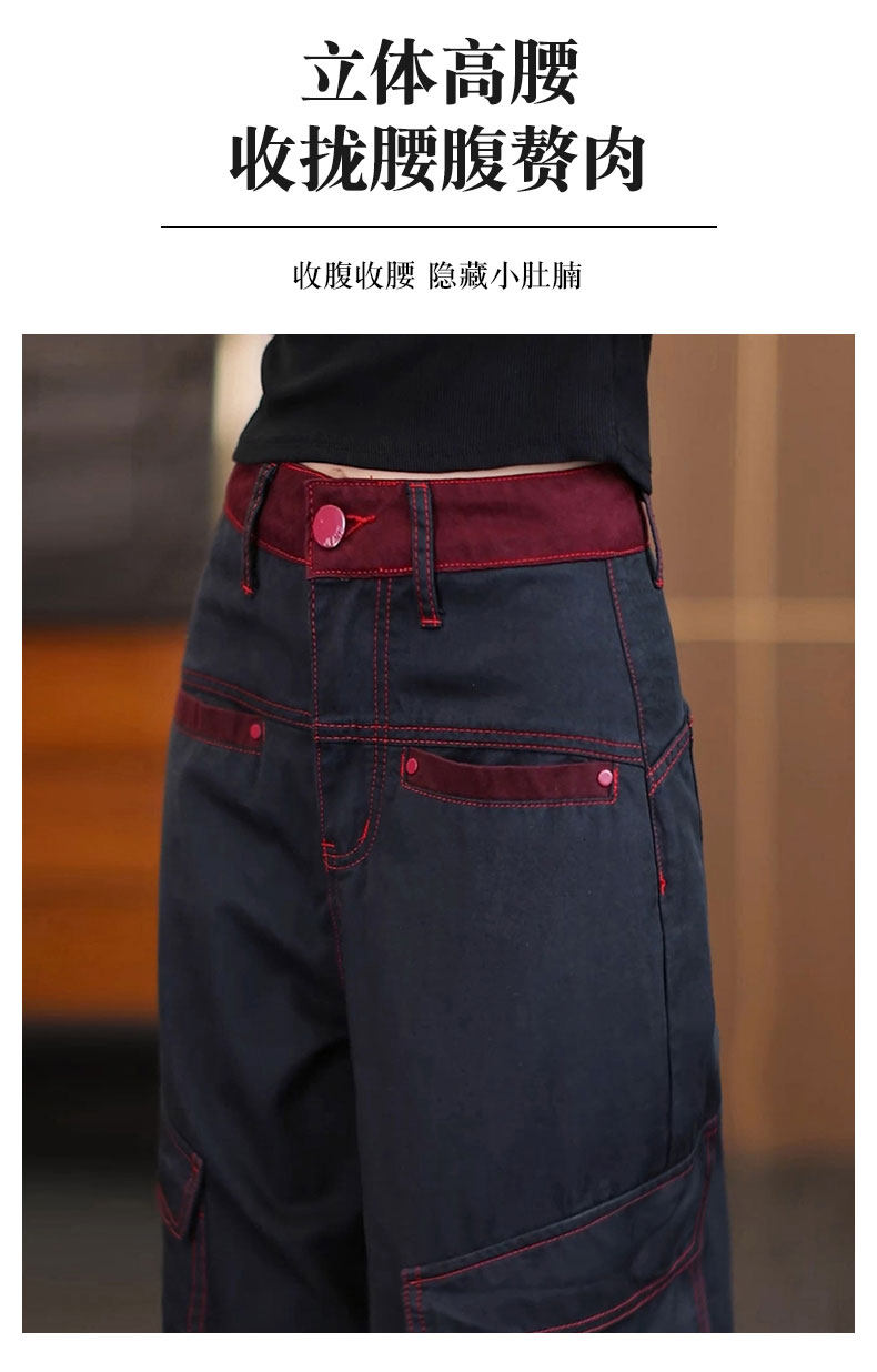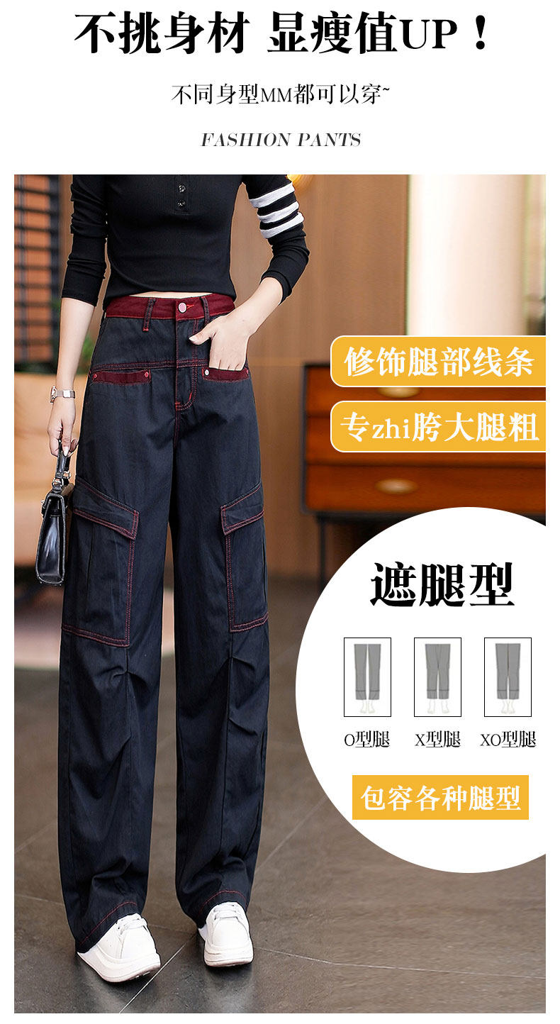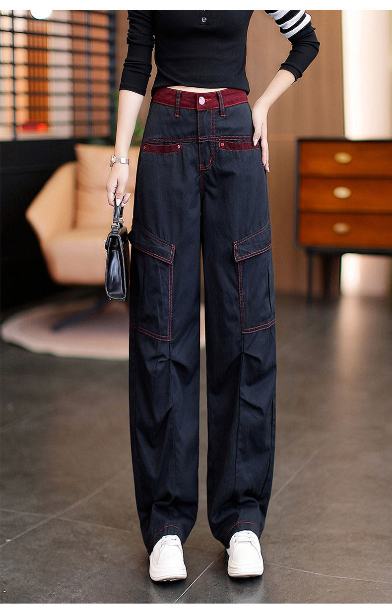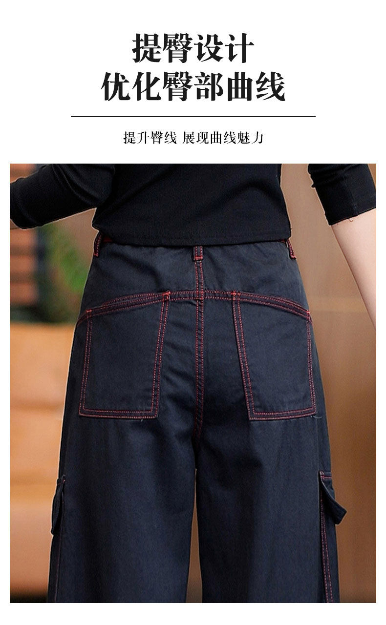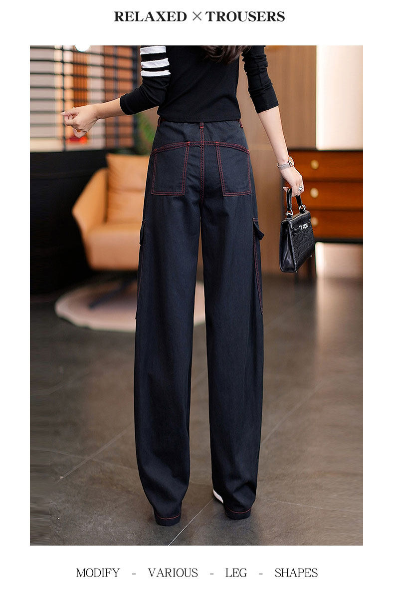 Navy blue scimitar jeans for women spring and autumn 2026 new loose and loose feeling wide-legged sickle work pants