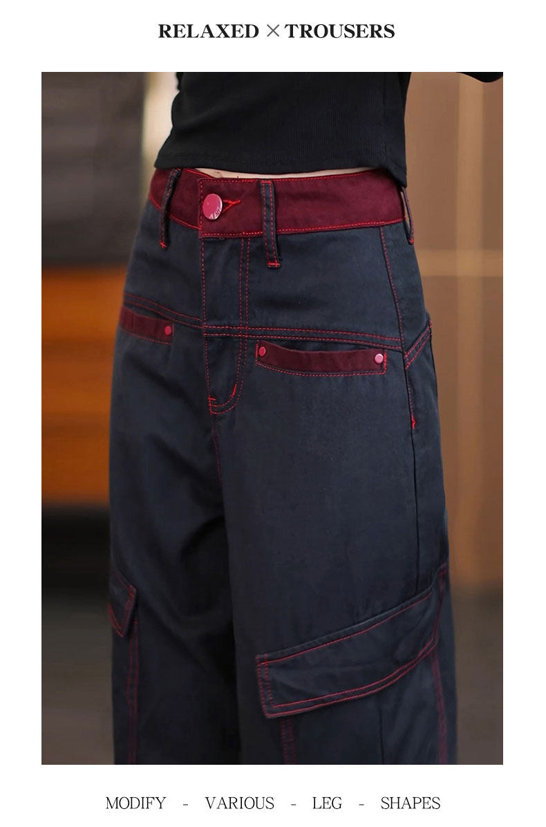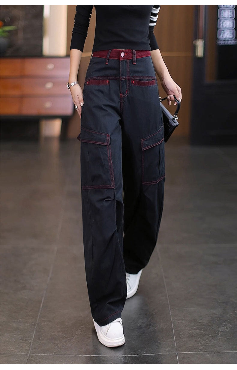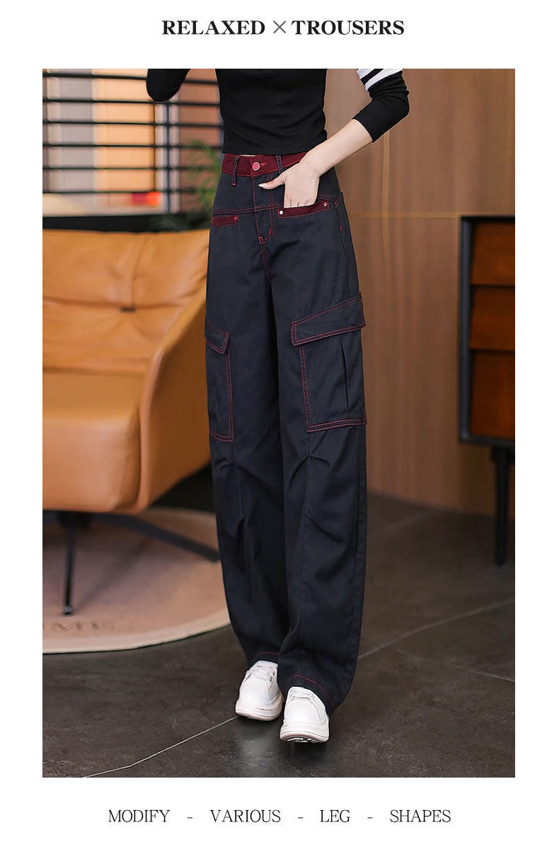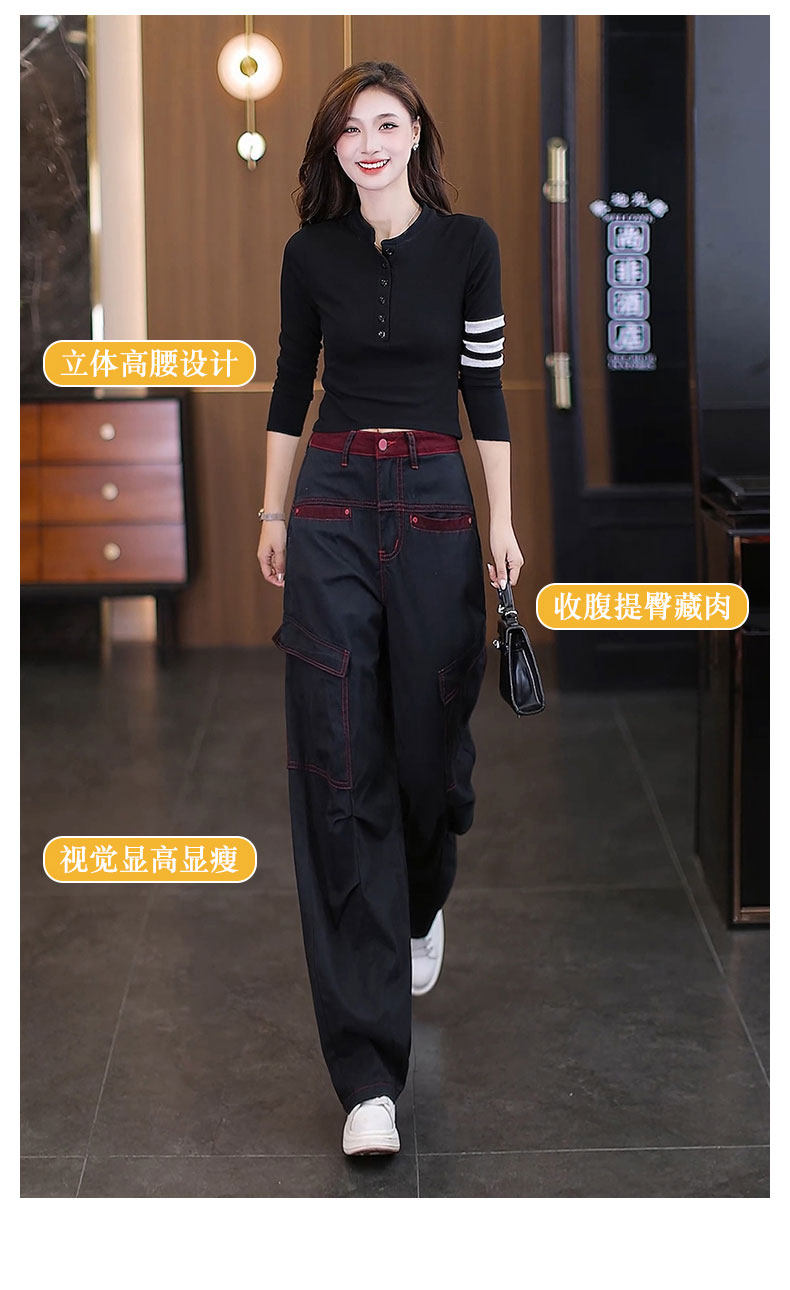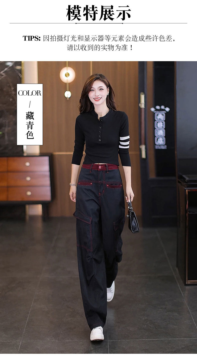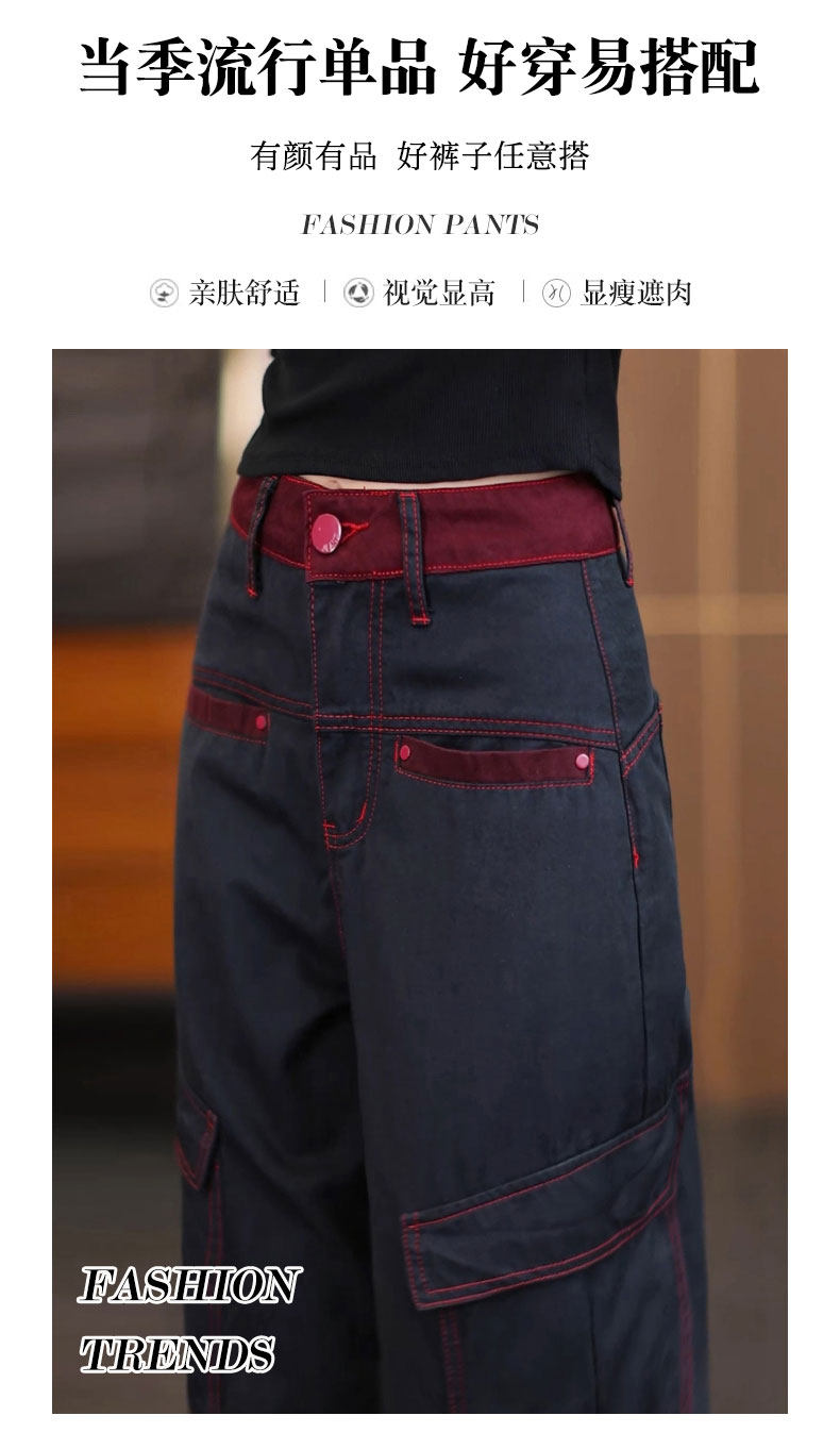 Navy blue scimitar jeans for women spring and autumn 2026 new loose and loose feeling wide-legged sickle work pants