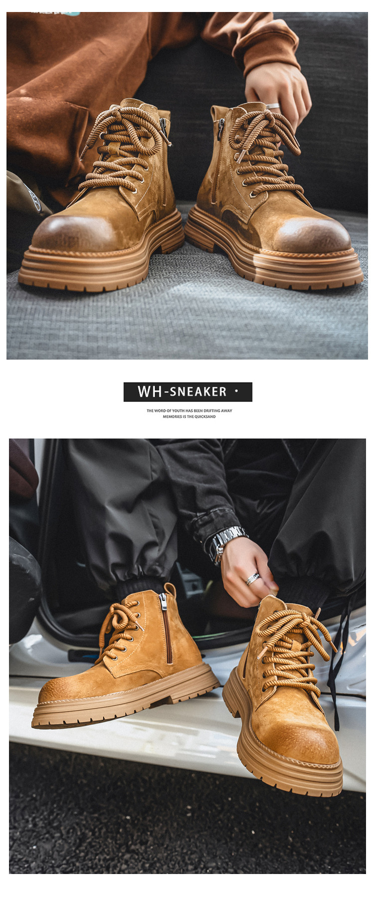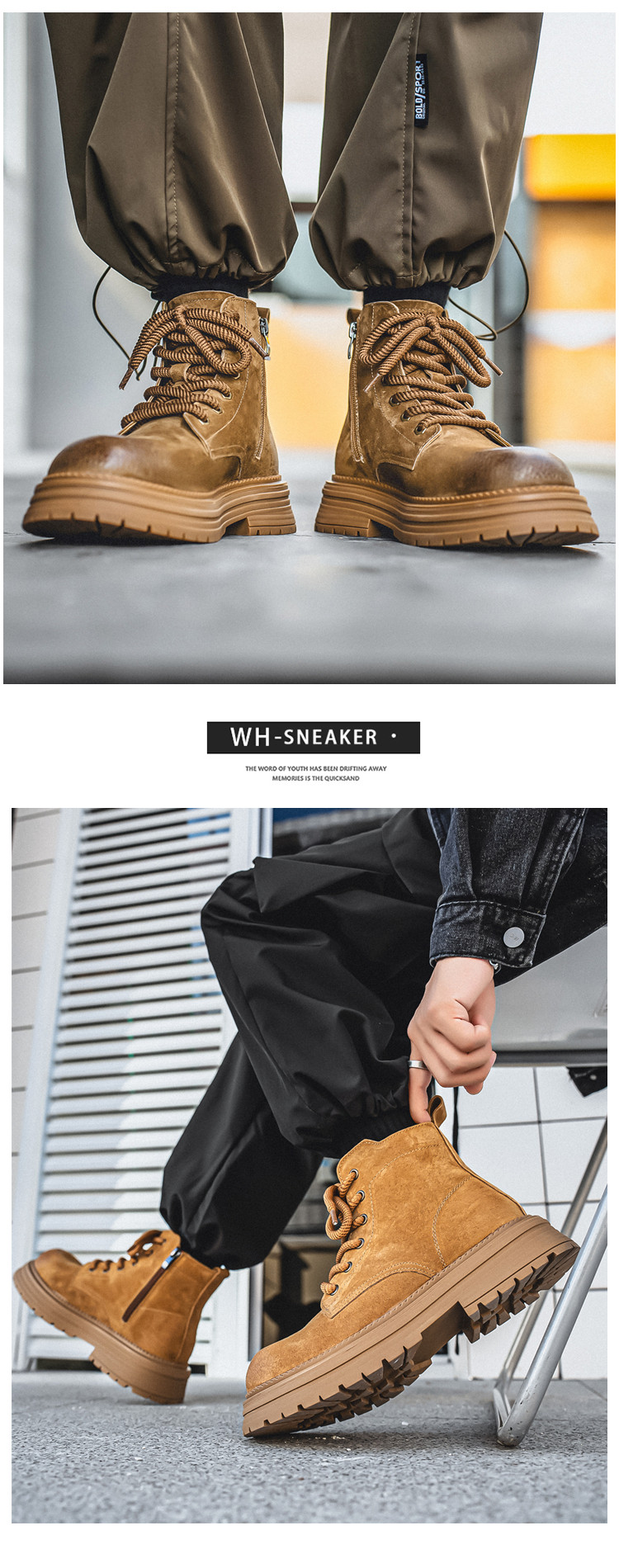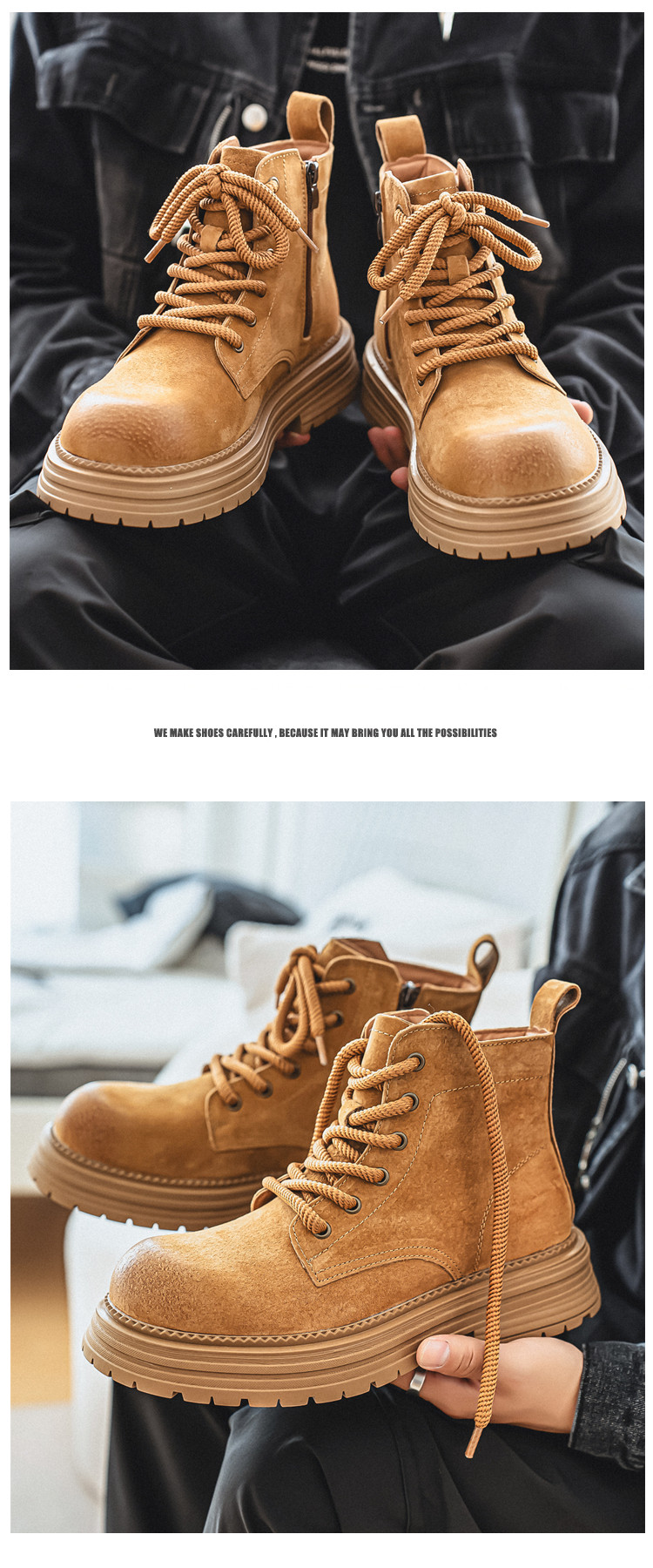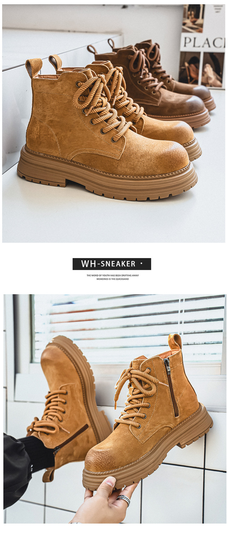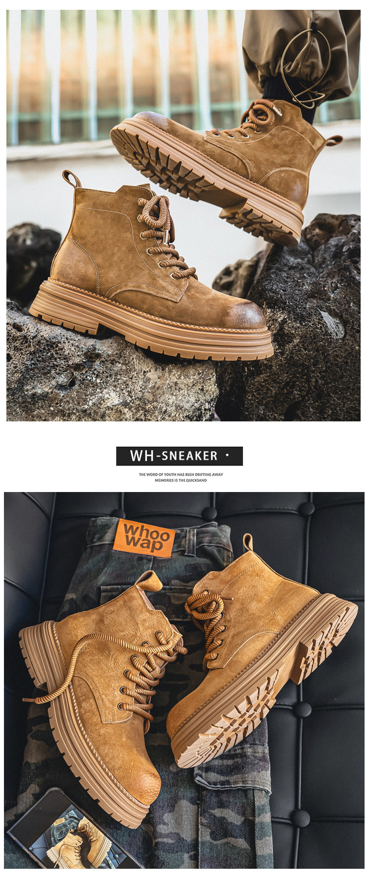 Martin Boots for Men 2025 New Winter Genuine Leather High-Top Shoes British Style Mid-Top Fleece-Lined Height-Increasing Retro Work Boots