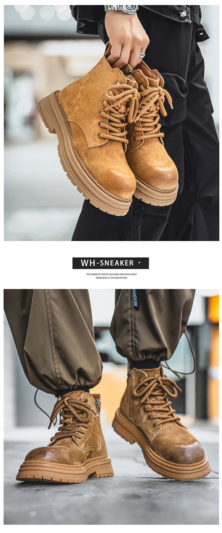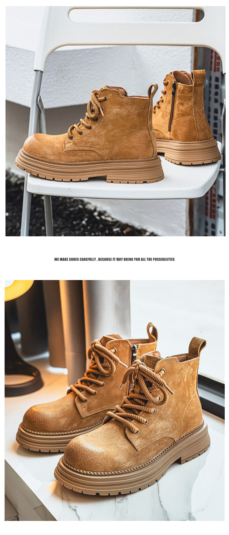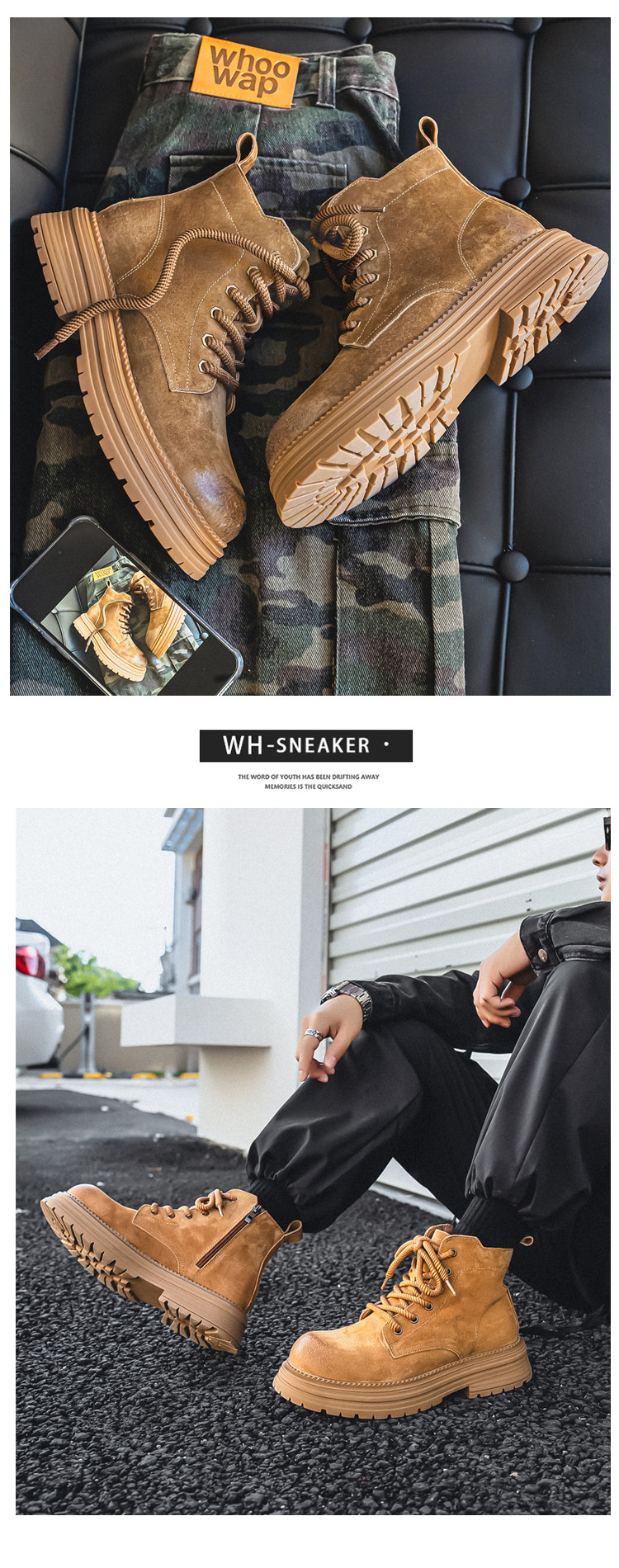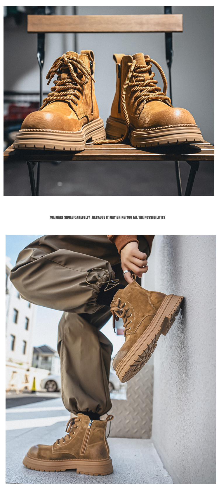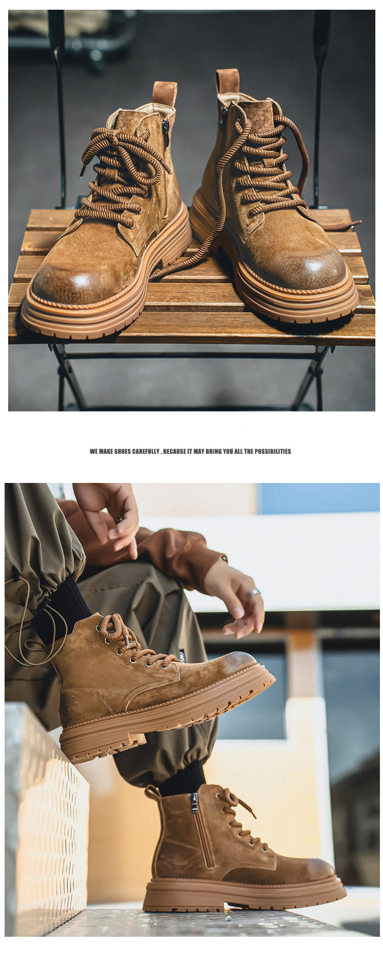 Martin Boots for Men 2025 New Winter Genuine Leather High-Top Shoes British Style Mid-Top Fleece-Lined Height-Increasing Retro Work Boots
