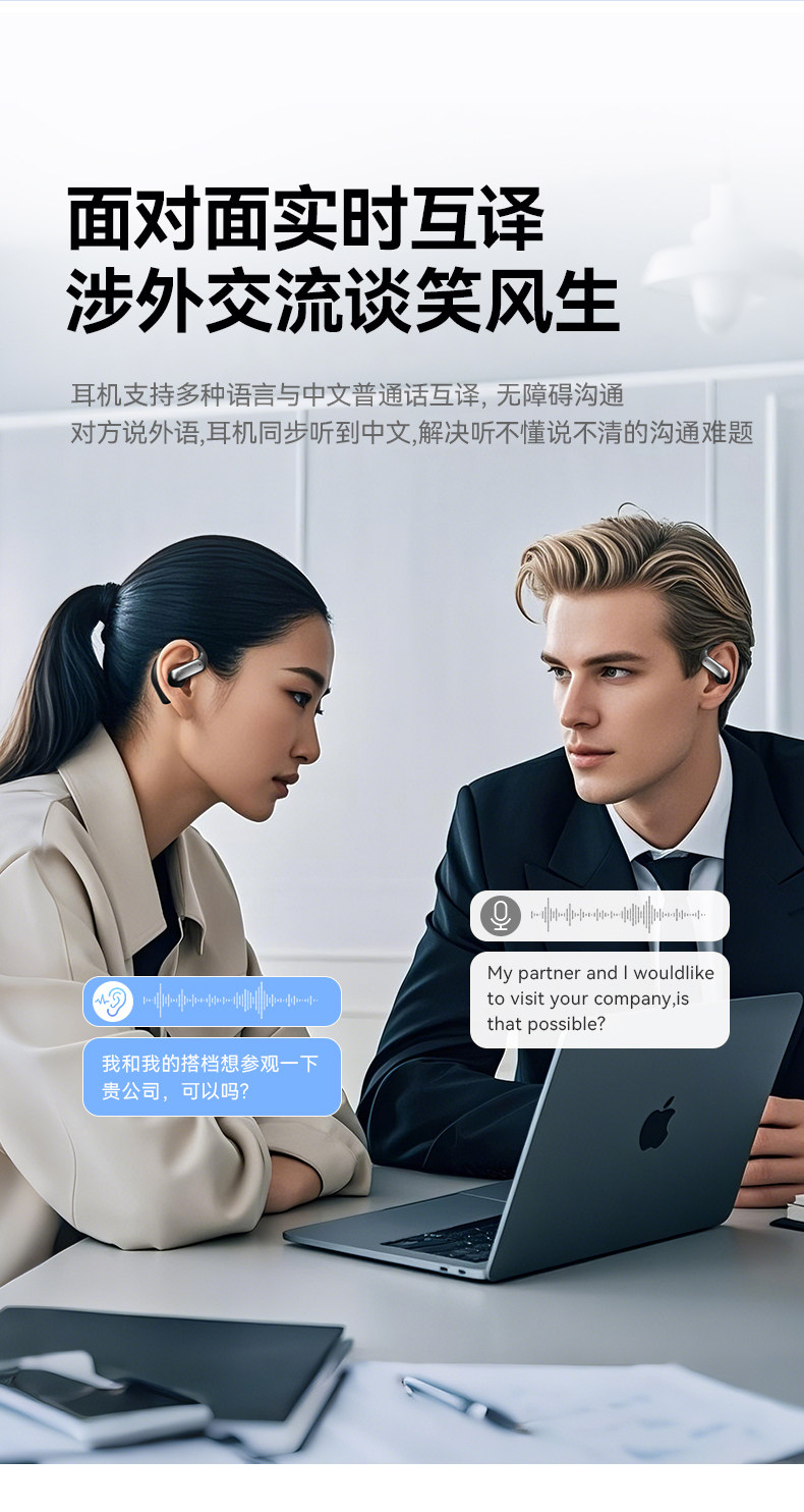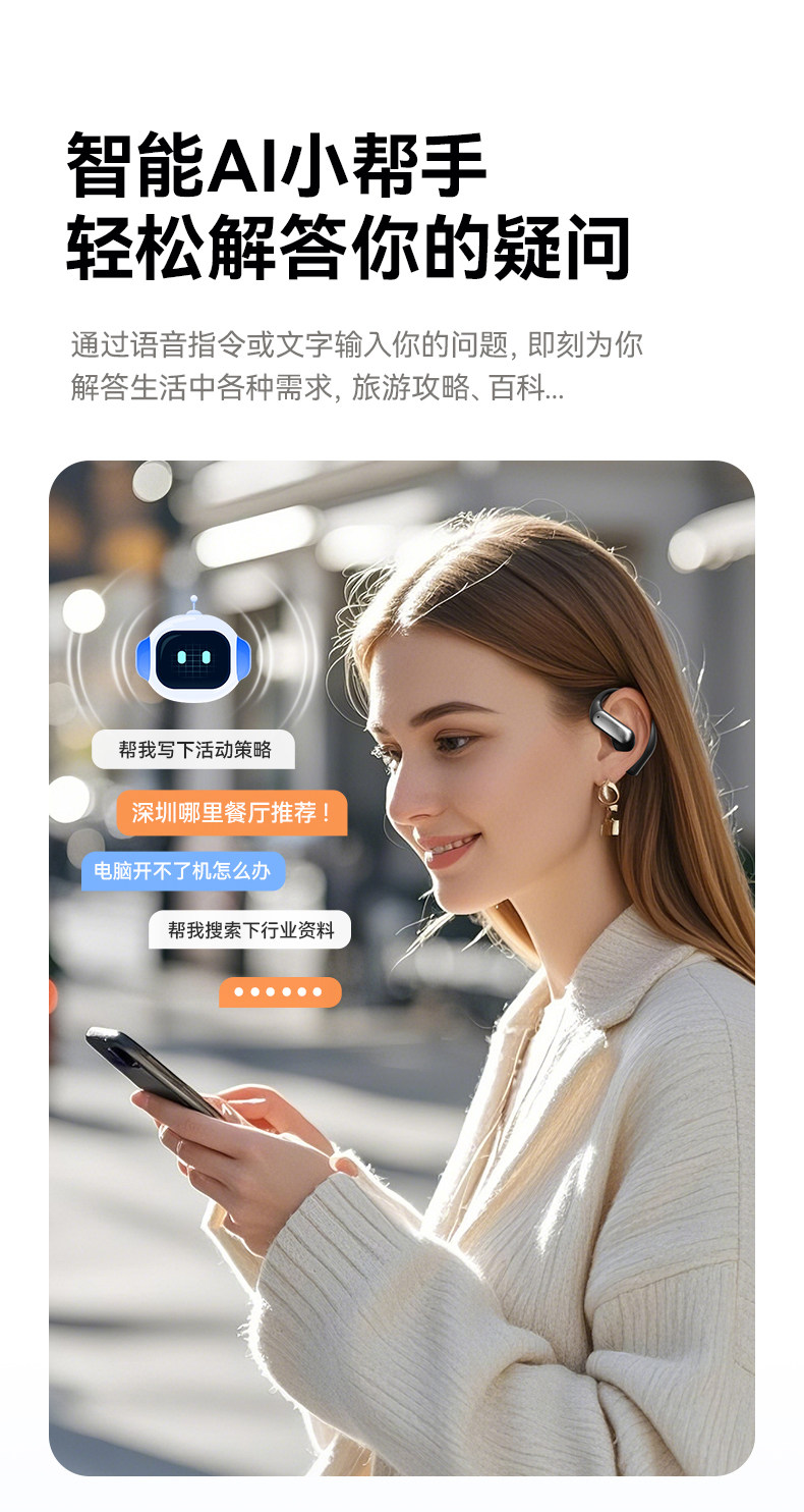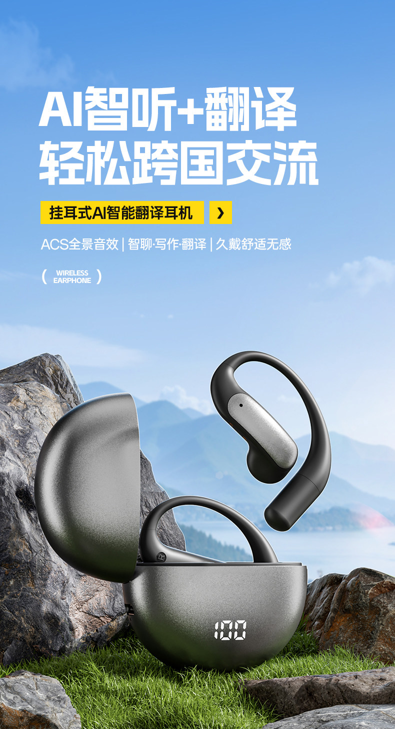 Zuoban AI Mo'er Bluetooth headset translates voice broadcast wireless multi-function ultra-long battery life open type
