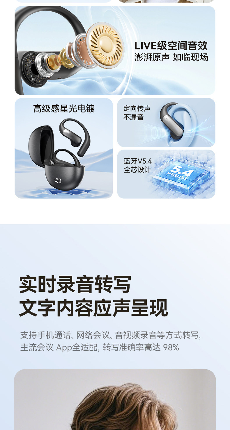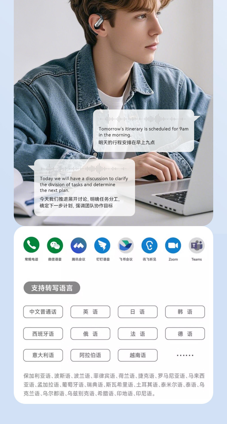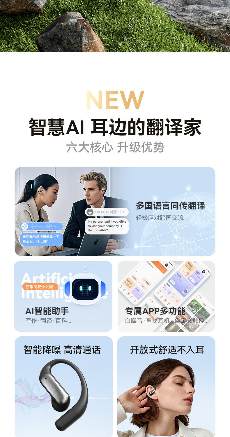 Zuoban AI Mo'er Bluetooth headset translates voice broadcast wireless multi-function ultra-long battery life open type
