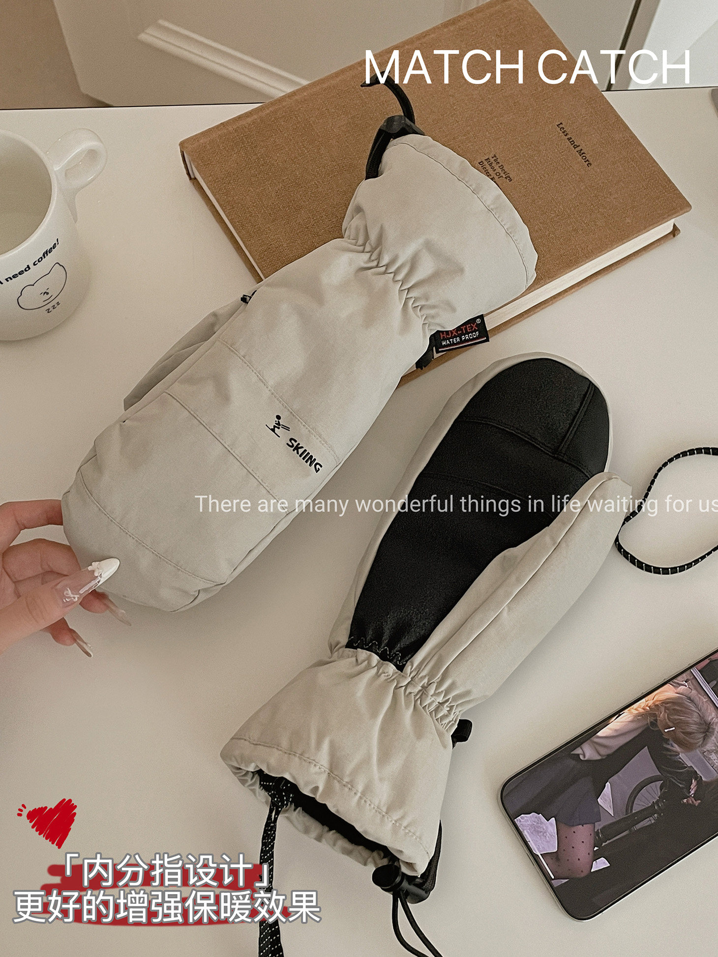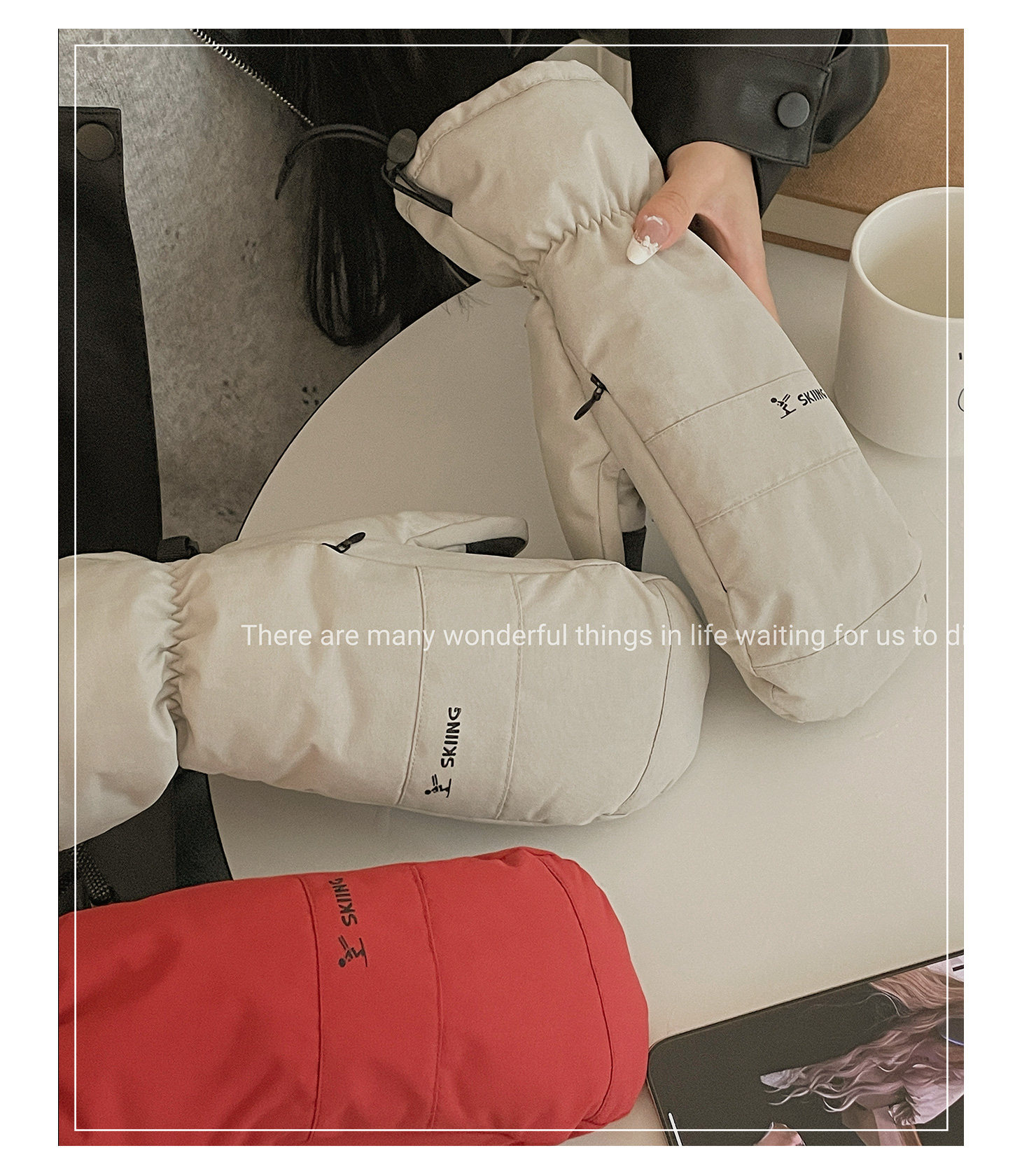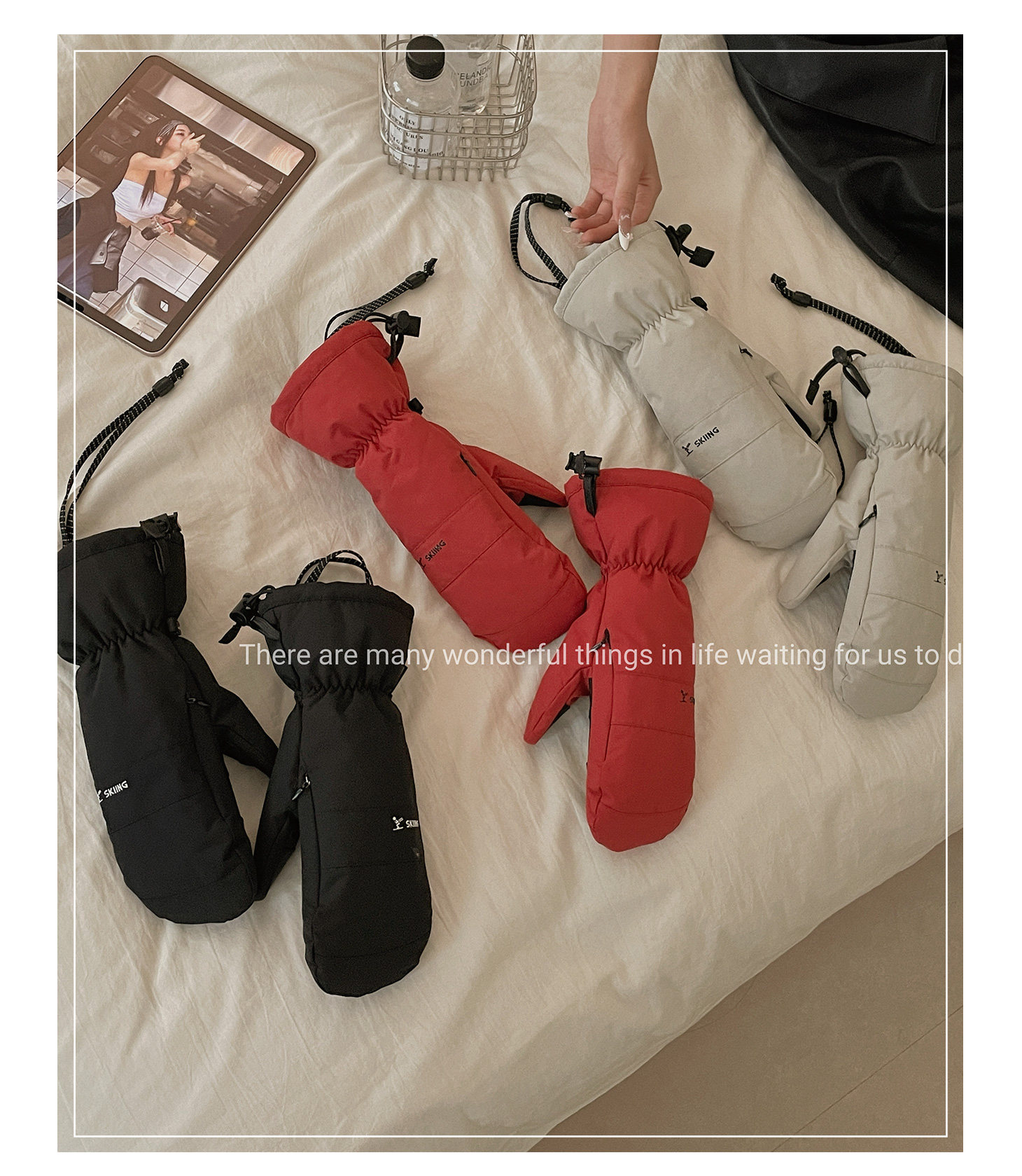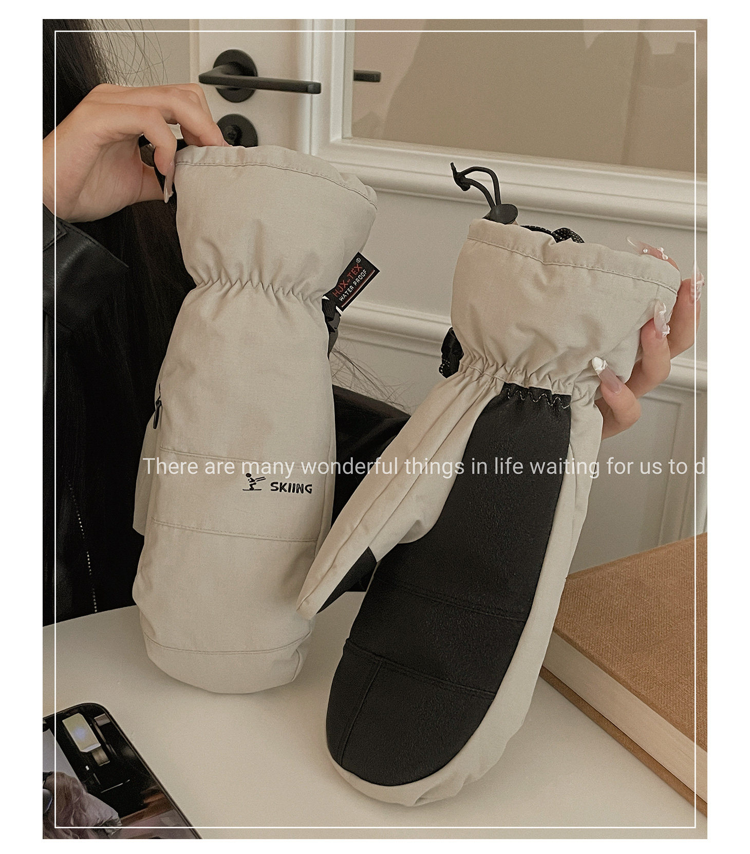 Extended Five-Finger Ski Gloves for Women, Winter Thickened Fleece, Warm, Windproof, Water-Resistant, Touchscreen-Compatible, Outdoor Cycling