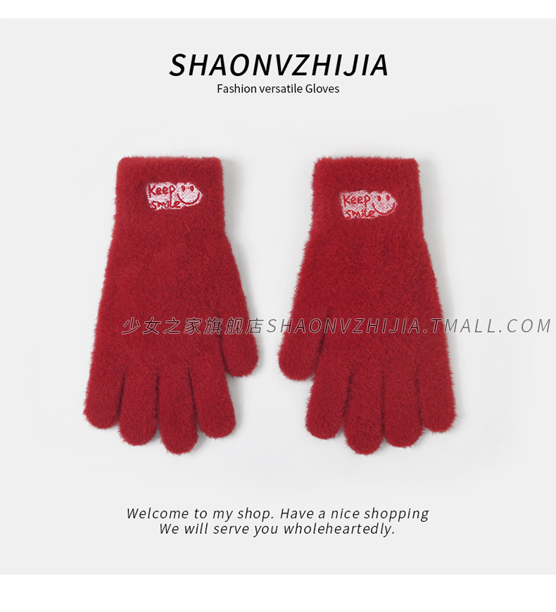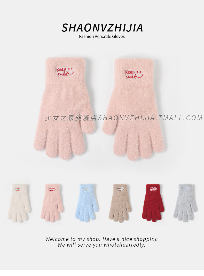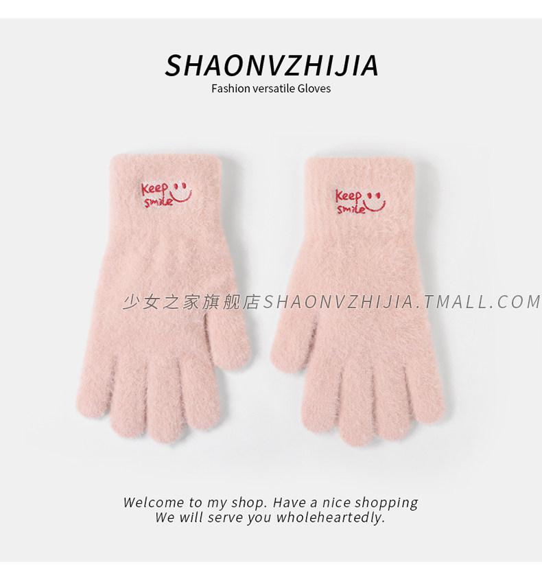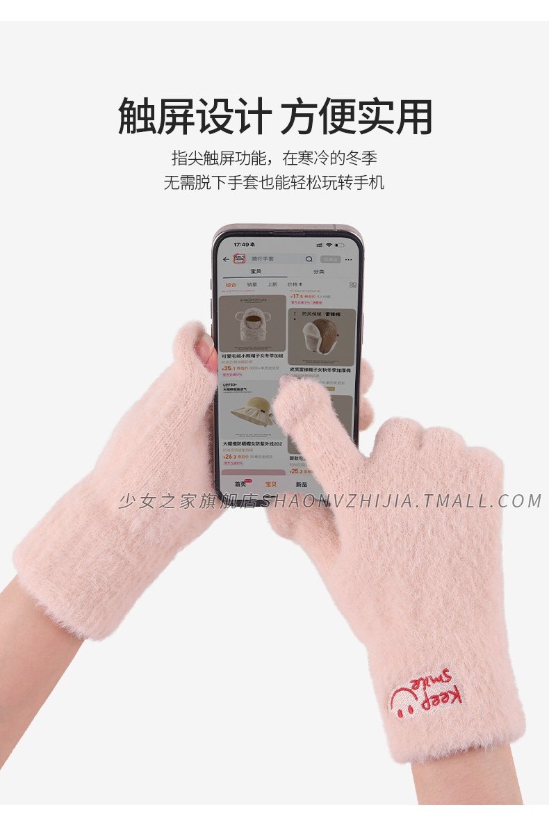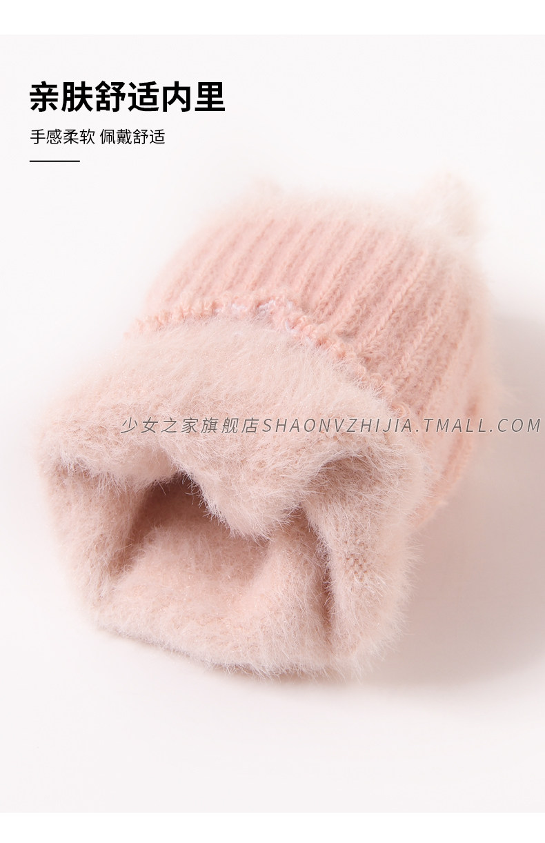 Pink Knitted Cycling Warm Gloves for Women, Winter Cute Student Five-Finger Thickened Wool Fingerless Gloves, Touchscreen Compatible, Cold-Proof