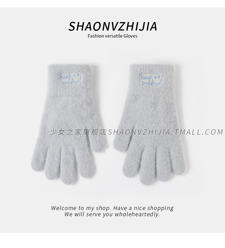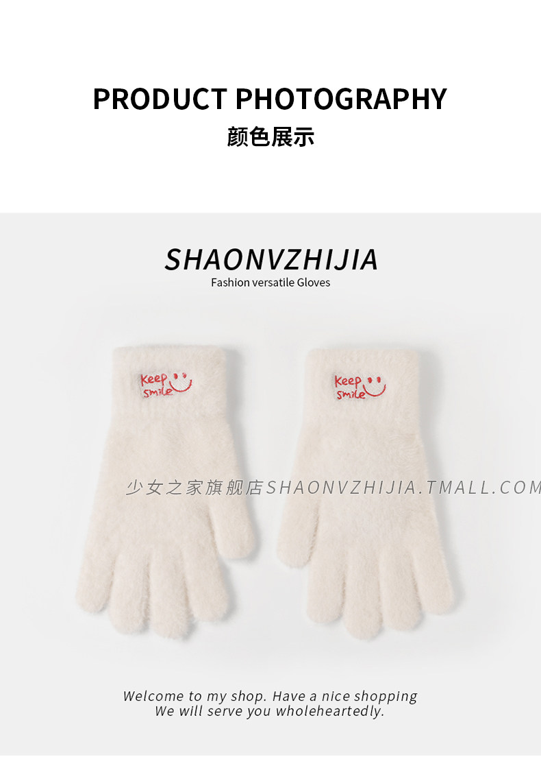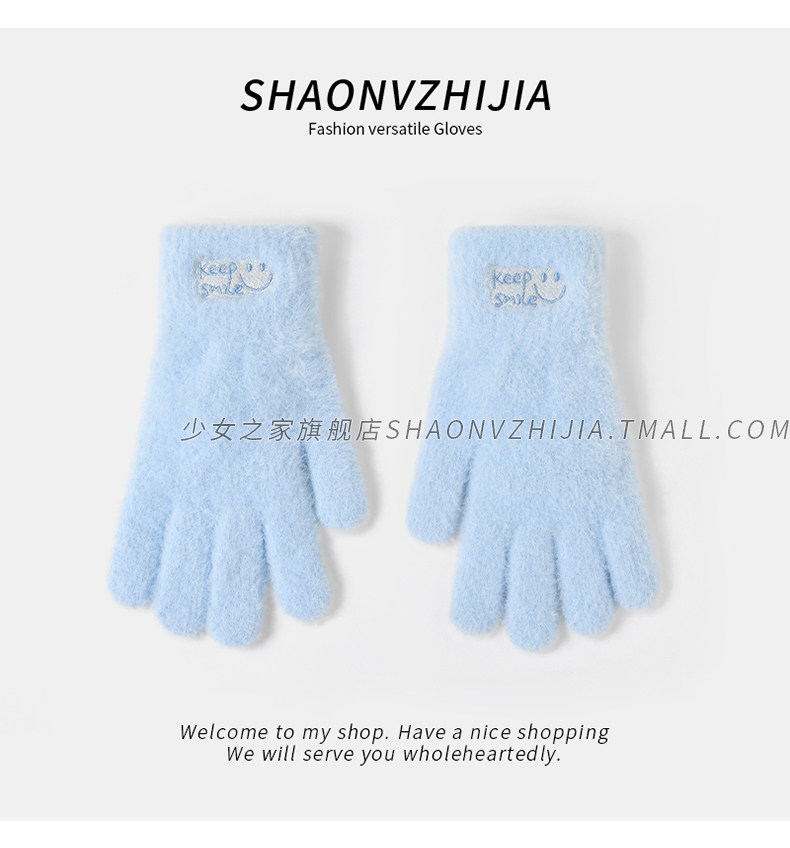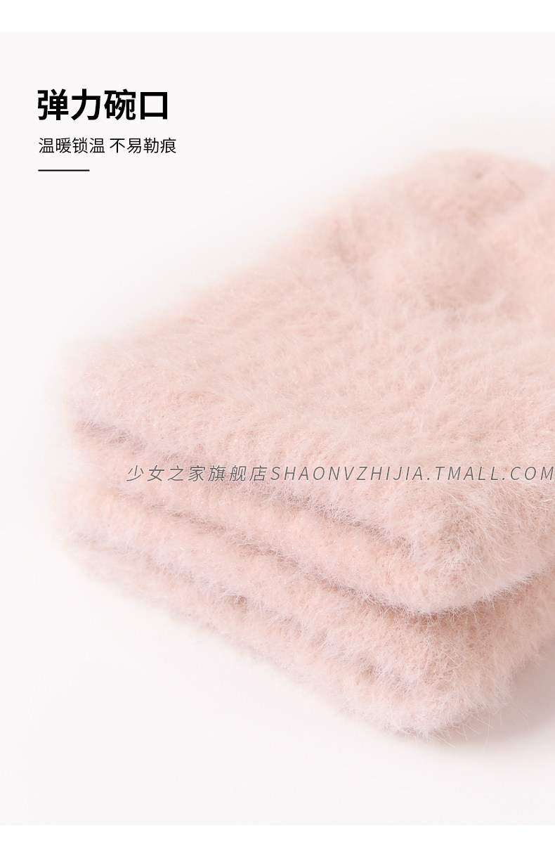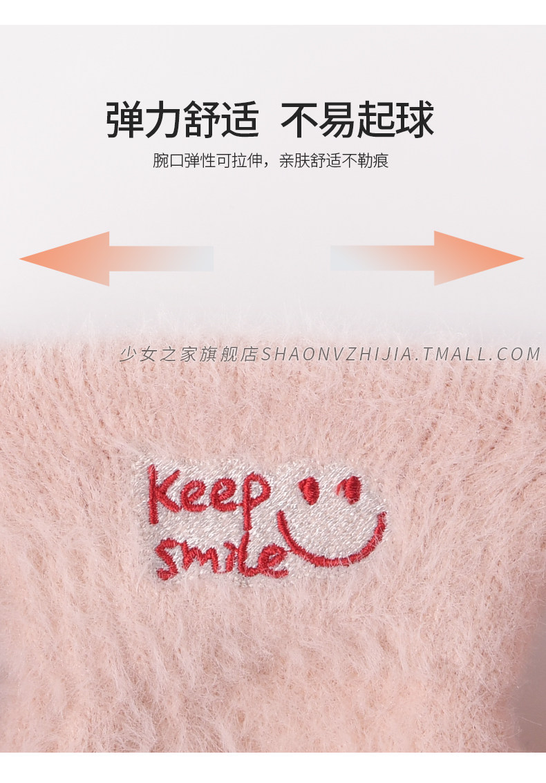 Pink Knitted Cycling Warm Gloves for Women, Winter Cute Student Five-Finger Thickened Wool Fingerless Gloves, Touchscreen Compatible, Cold-Proof