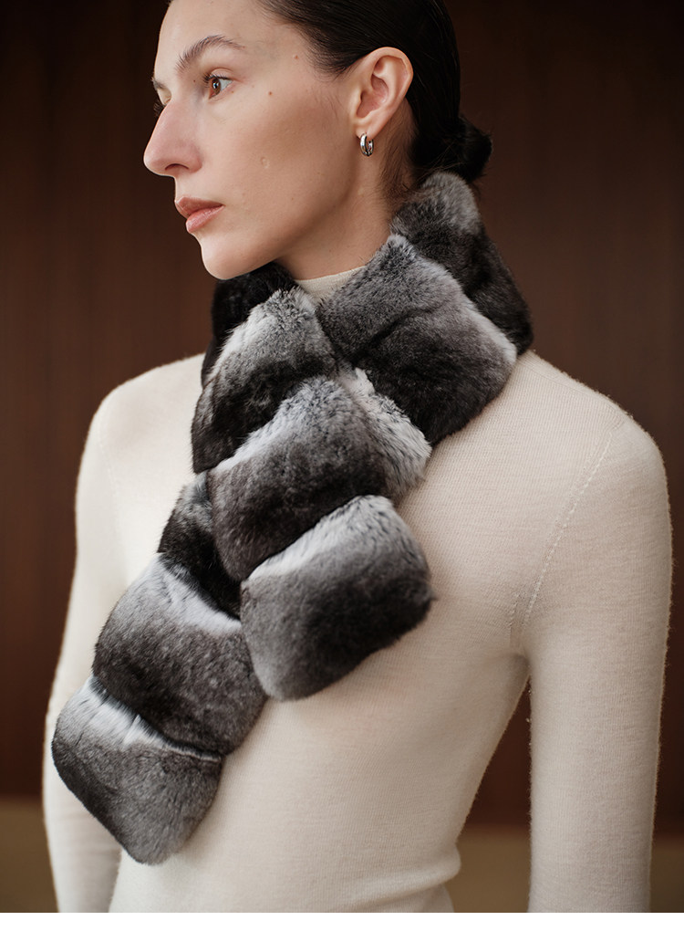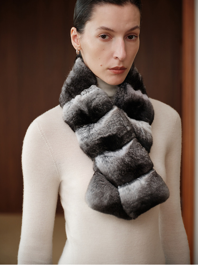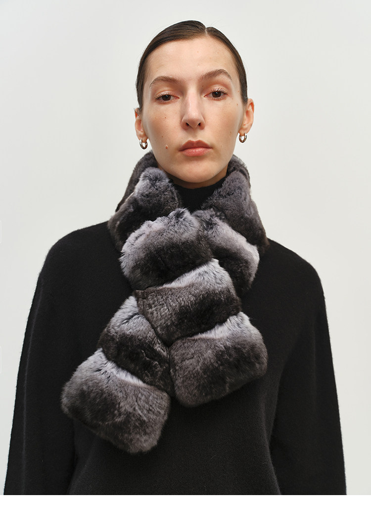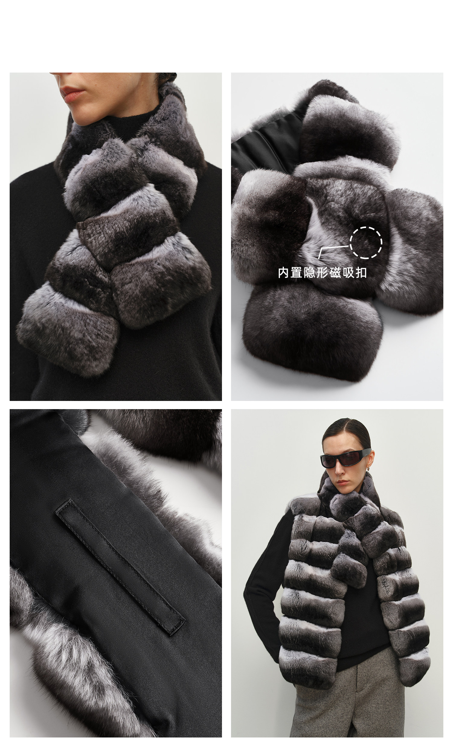 MSBEAST high luxury fur scarf_Imported rare blue, purple and blue chinchilla interspersed/magnetic 2-use horizontal scarf