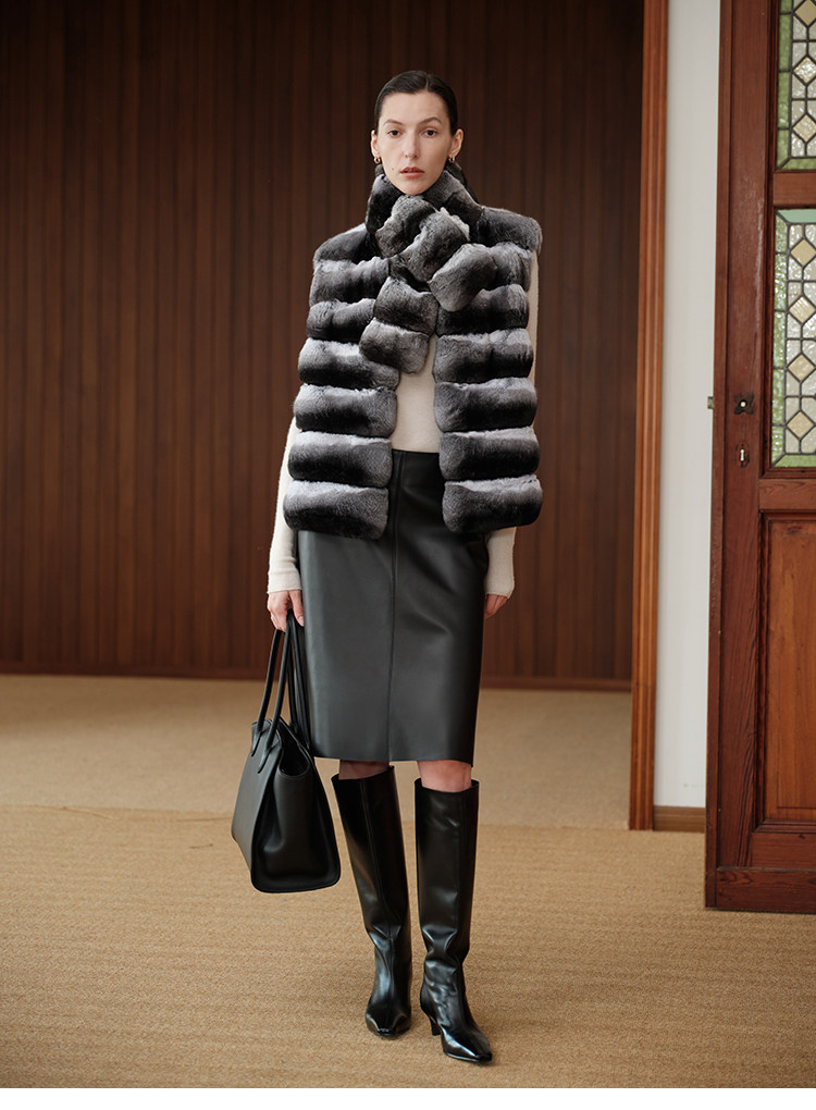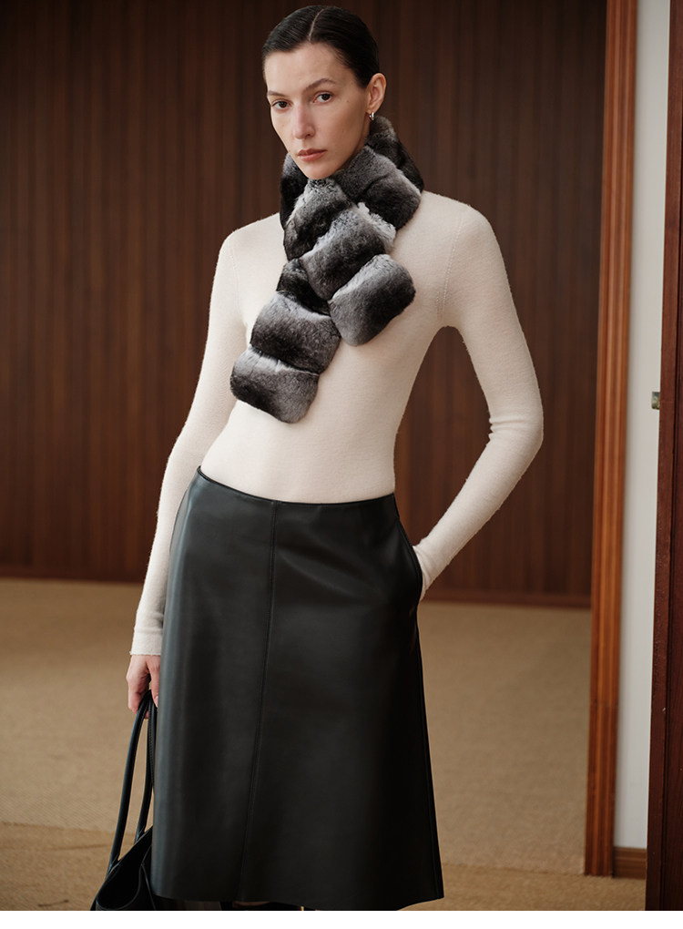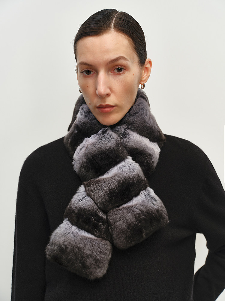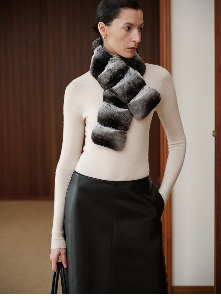 MSBEAST high luxury fur scarf_Imported rare blue, purple and blue chinchilla interspersed/magnetic 2-use horizontal scarf