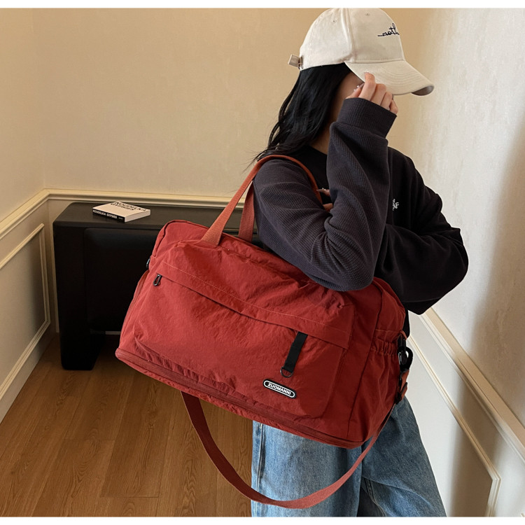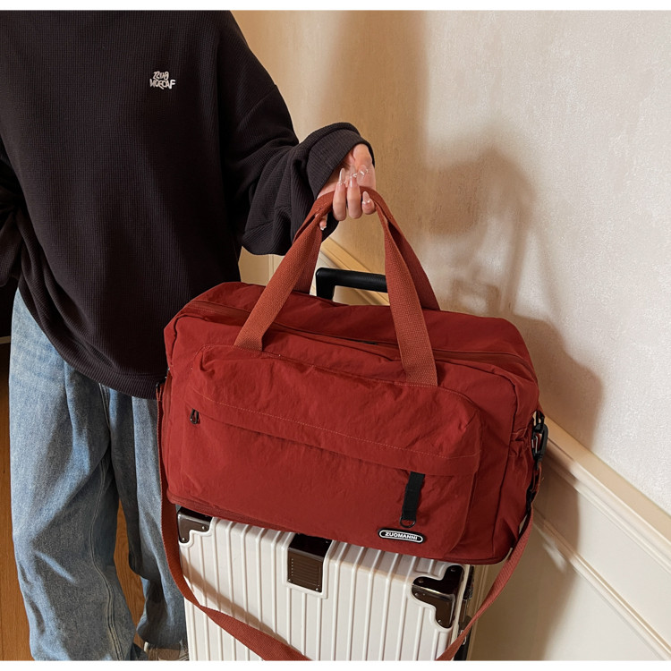 Red travel bag, fashionable, large-capacity, slip-on trolley case, expanded capacity, independent shoe compartment, portable luggage bag, storage bag for women