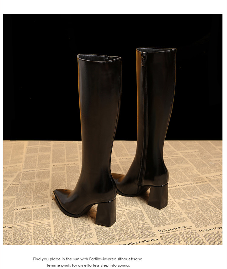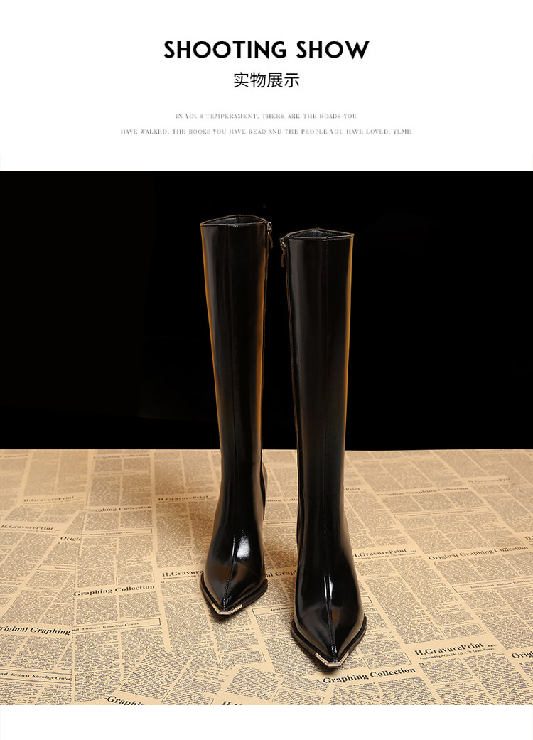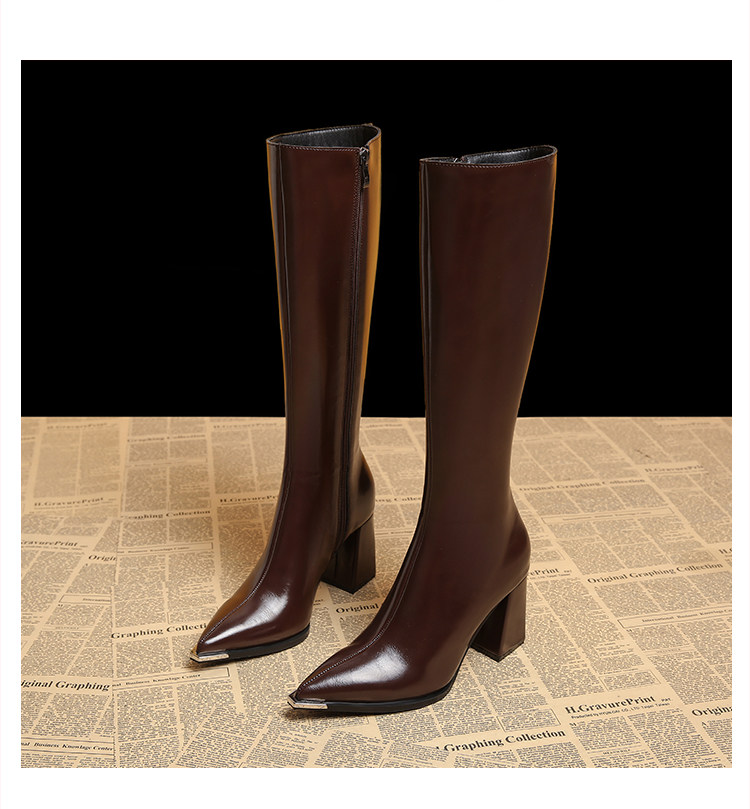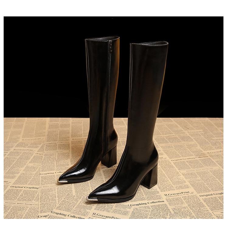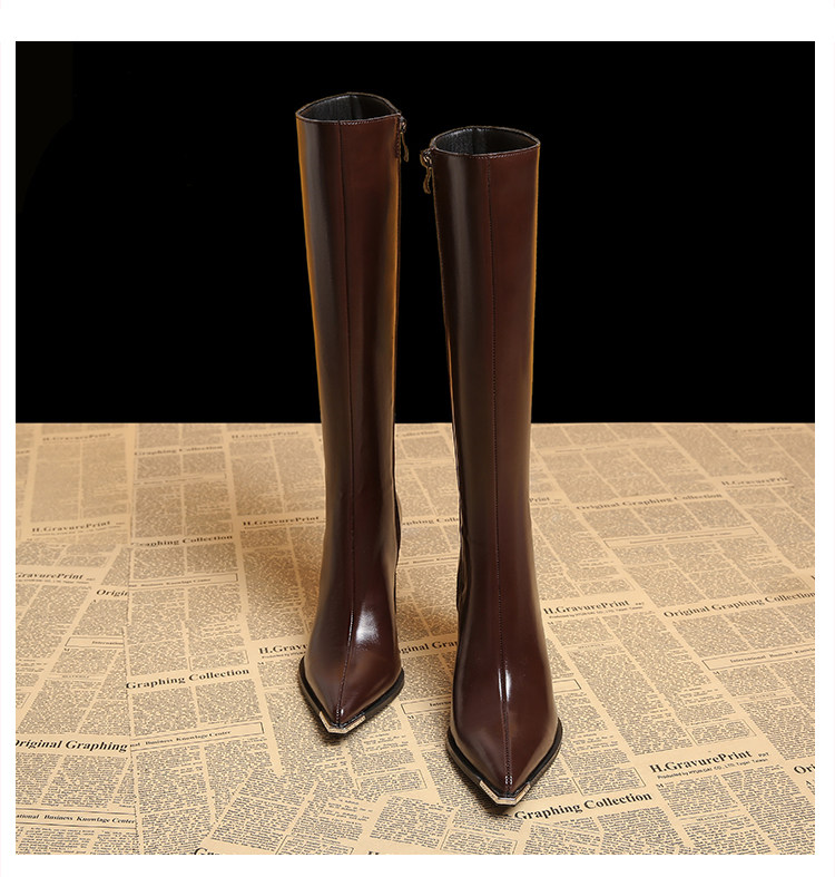 Genuine Leather Pointed-Toe Elegant Autumn Long Boots 2025 Autumn and Winter New Style Women's High-End Black High-Heeled Boots