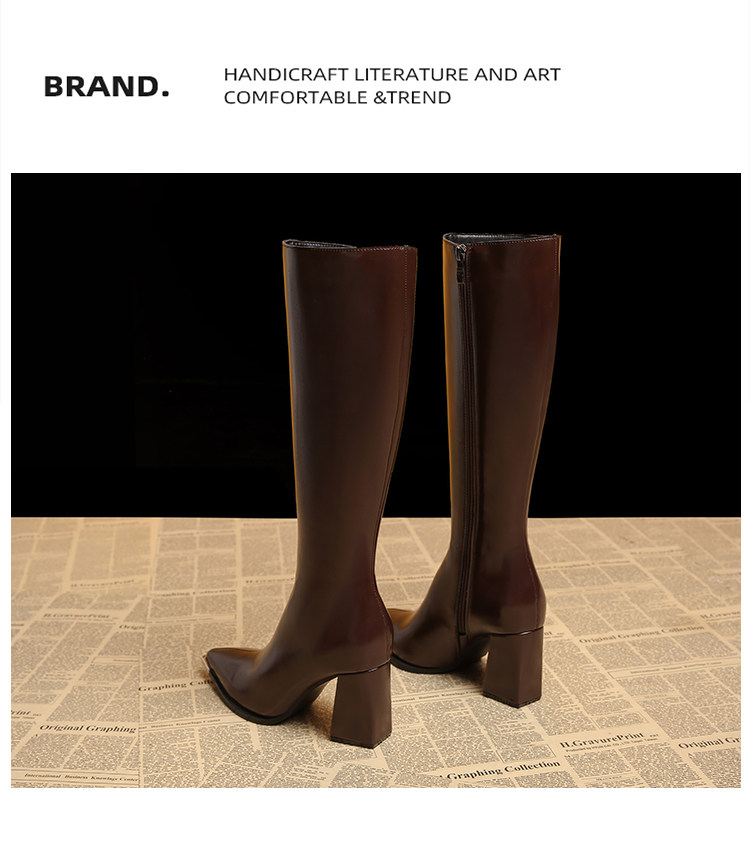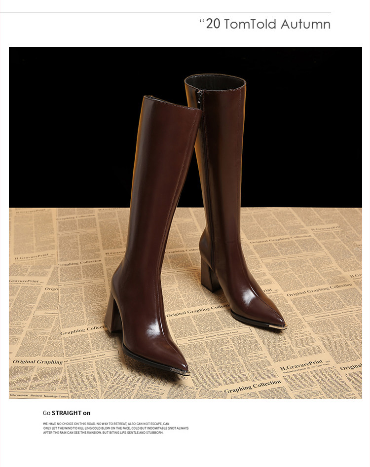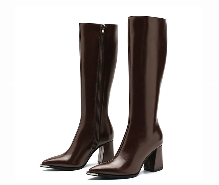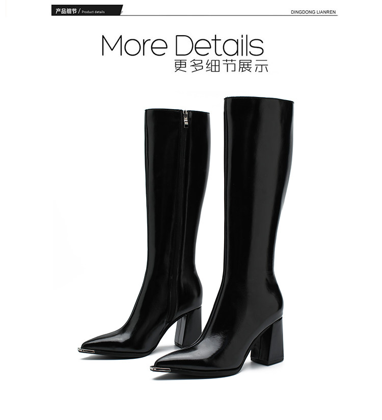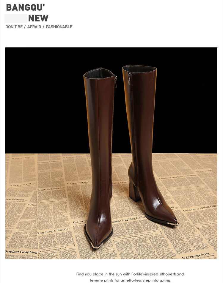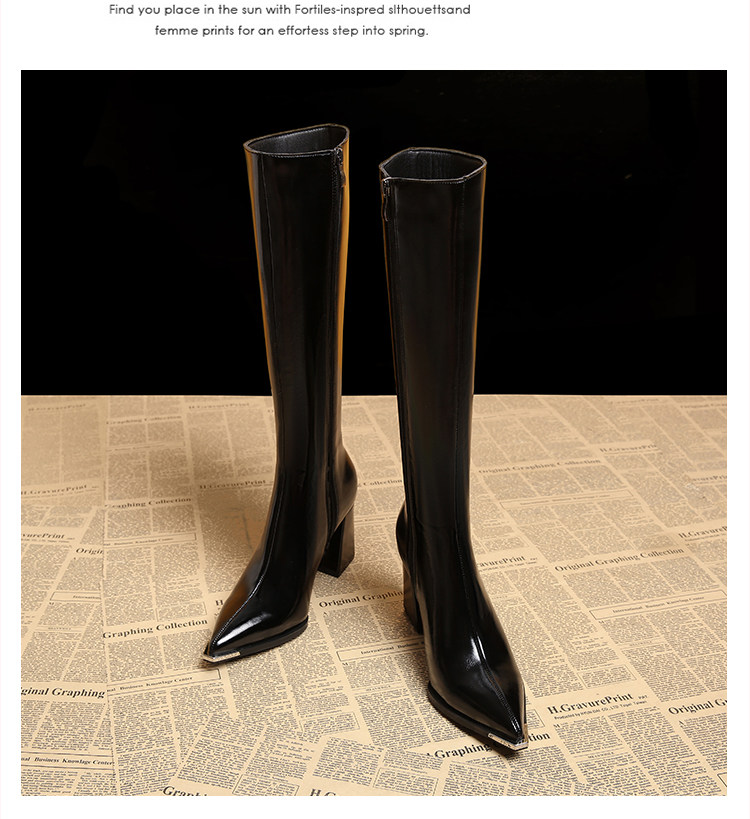 Genuine Leather Pointed-Toe Elegant Autumn Long Boots 2025 Autumn and Winter New Style Women's High-End Black High-Heeled Boots