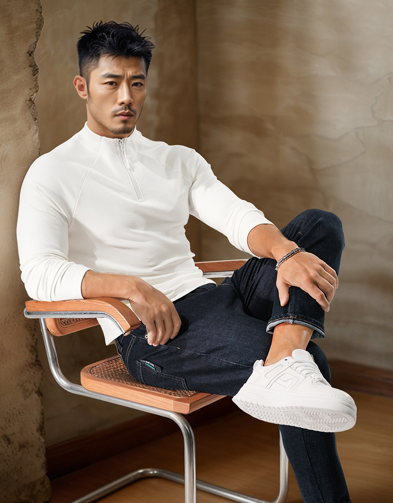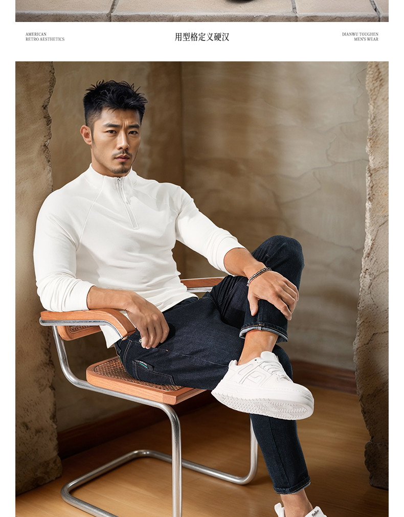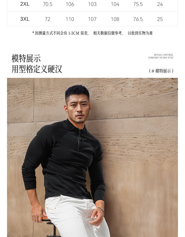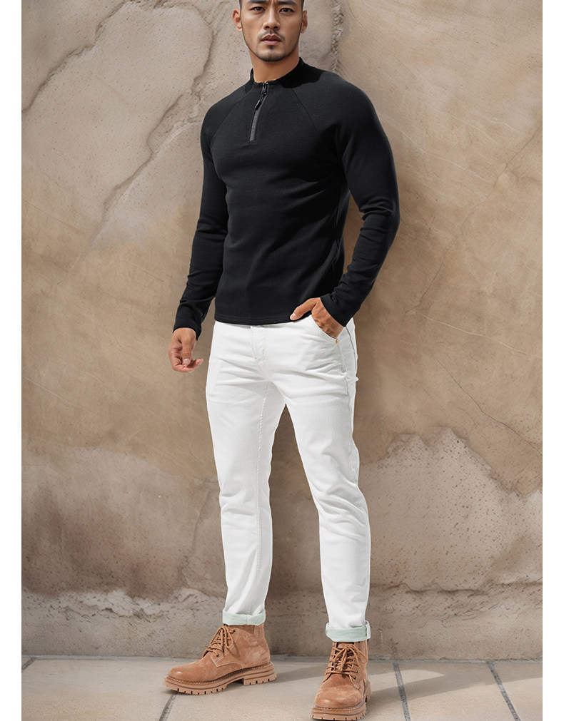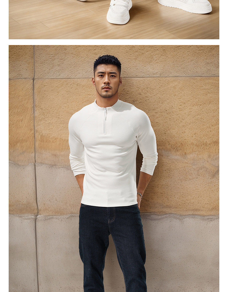 Men's High-Neck Base Layer Long-Sleeve Half-Zip Open-Front Sports Fitness Slim-Fit Stretchy Autumn and Winter Outerwear T-Shirt