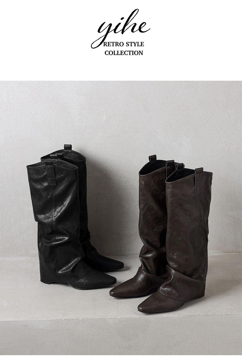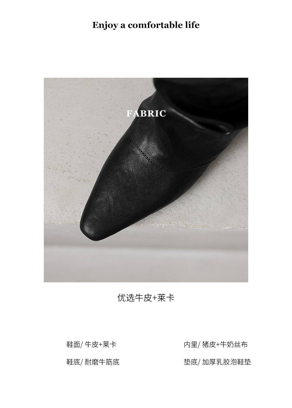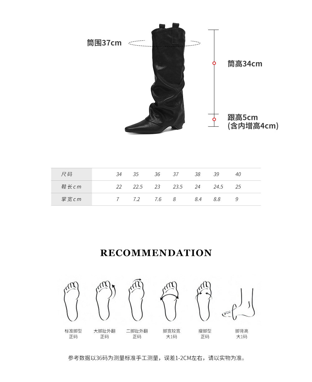 Moriwa Takumi's loose-feeling genuine leather trouser boots, women's inner heightening long boots, autumn and winter new pointed toe thick heel knight boots