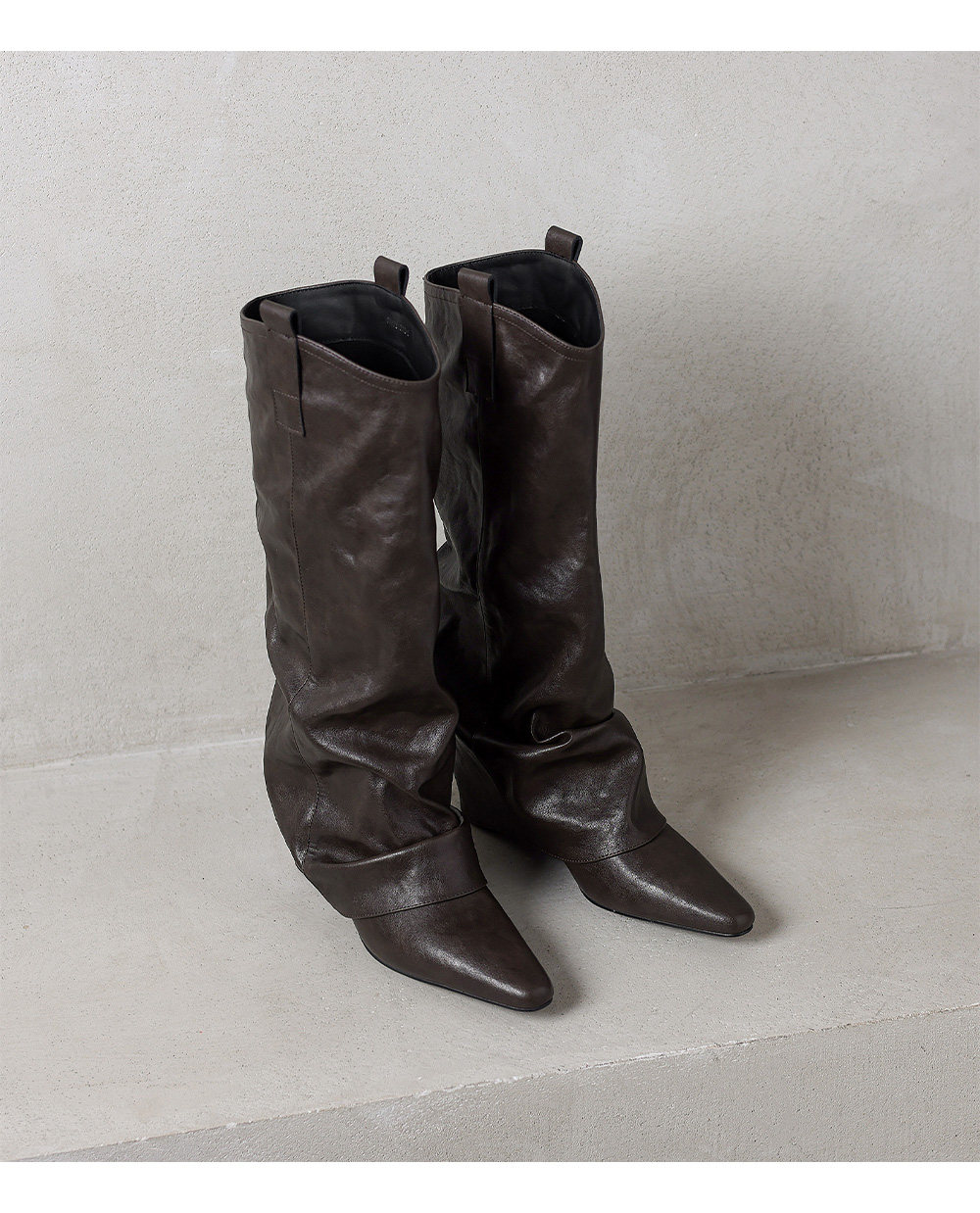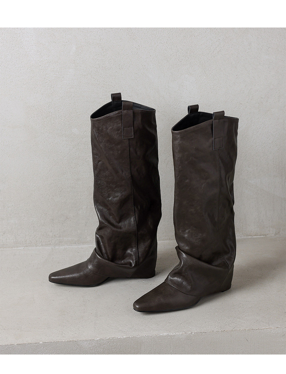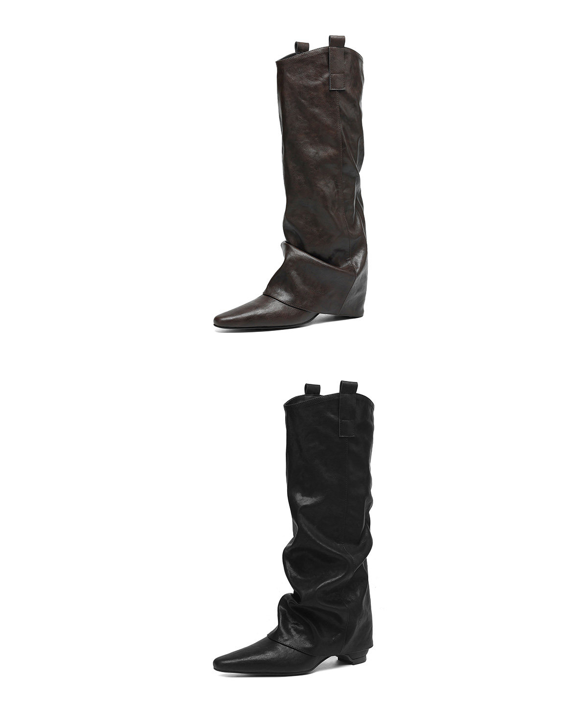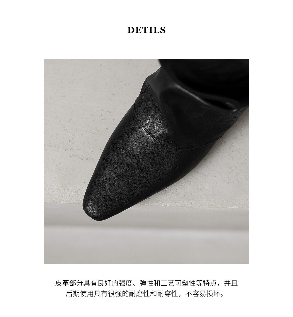 Moriwa Takumi's loose-feeling genuine leather trouser boots, women's inner heightening long boots, autumn and winter new pointed toe thick heel knight boots