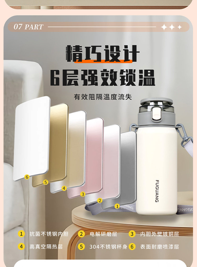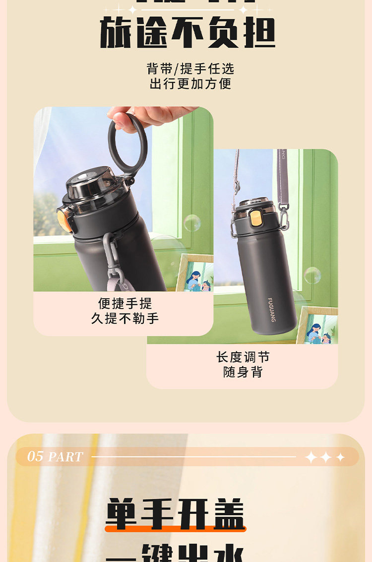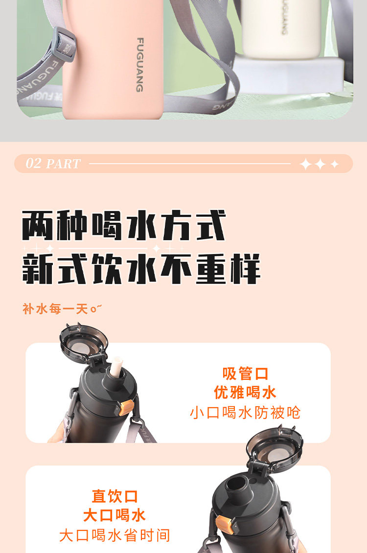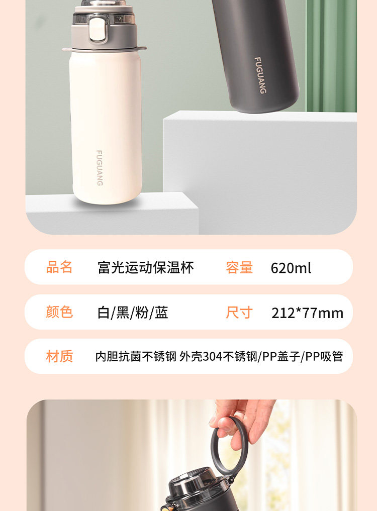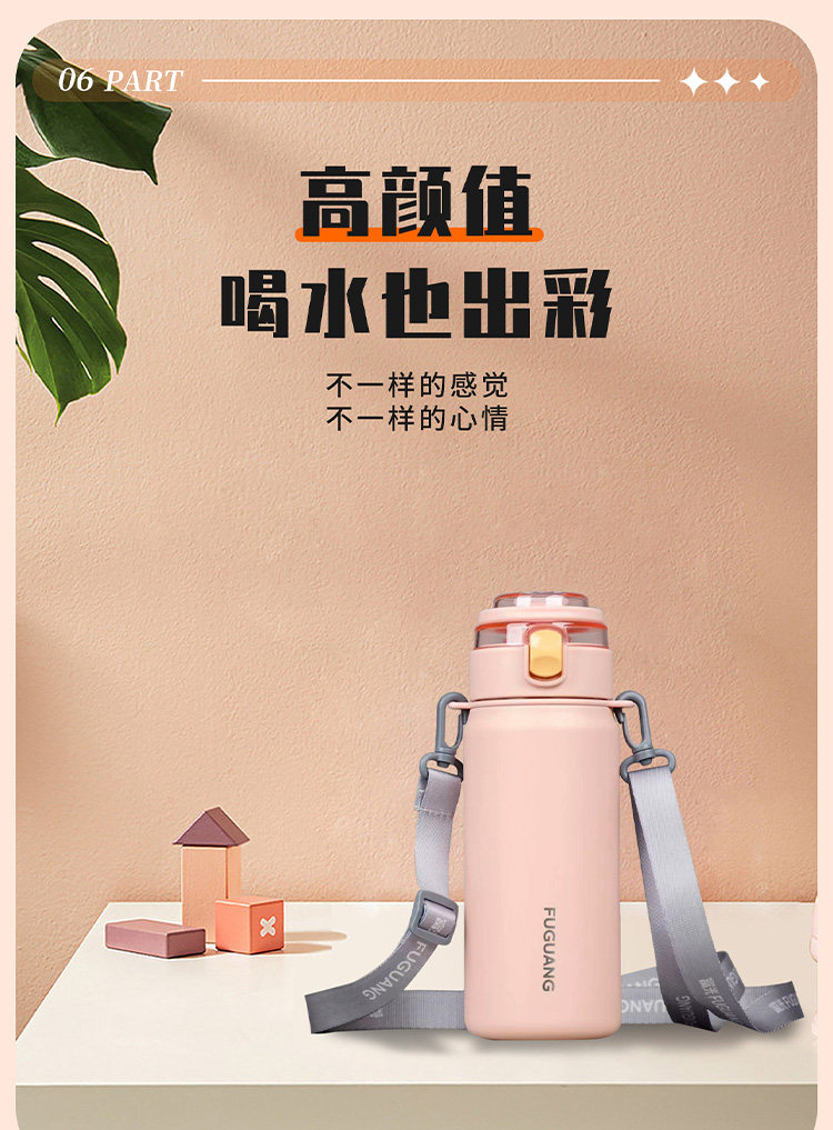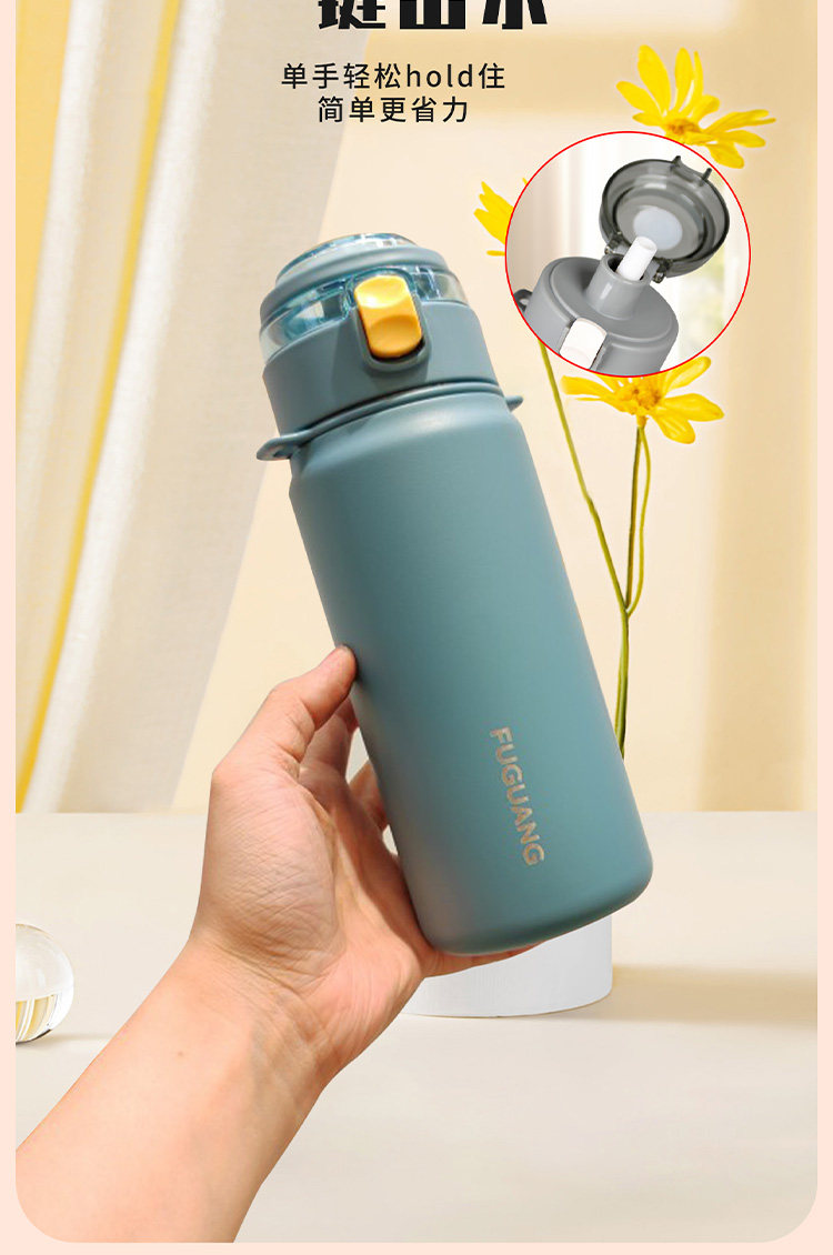 Fuguang Thermos Cup Large Capacity Water Cup for Girls and Kidsren Antibacterial Stainless Steel Straw Cup Student Portable Sports Water Bottle