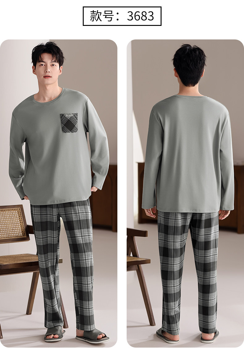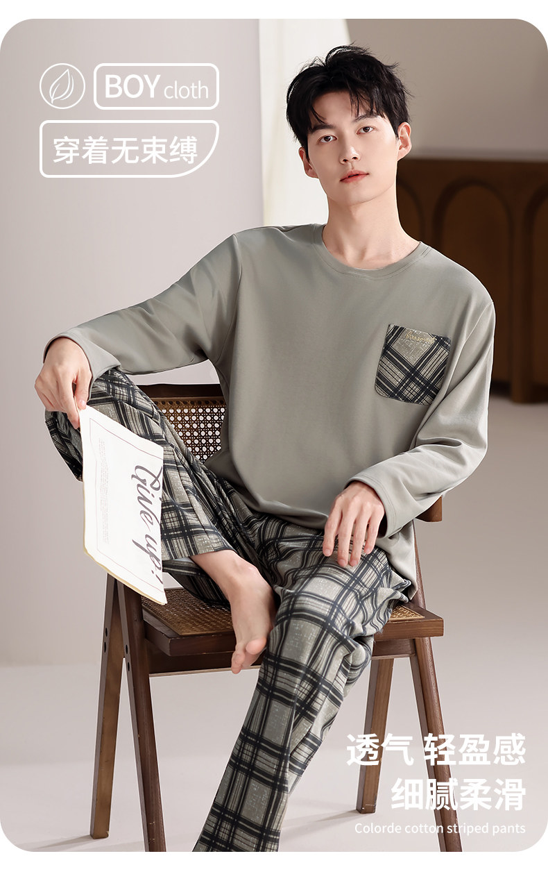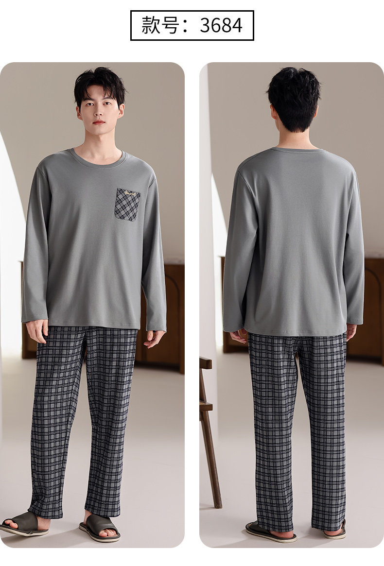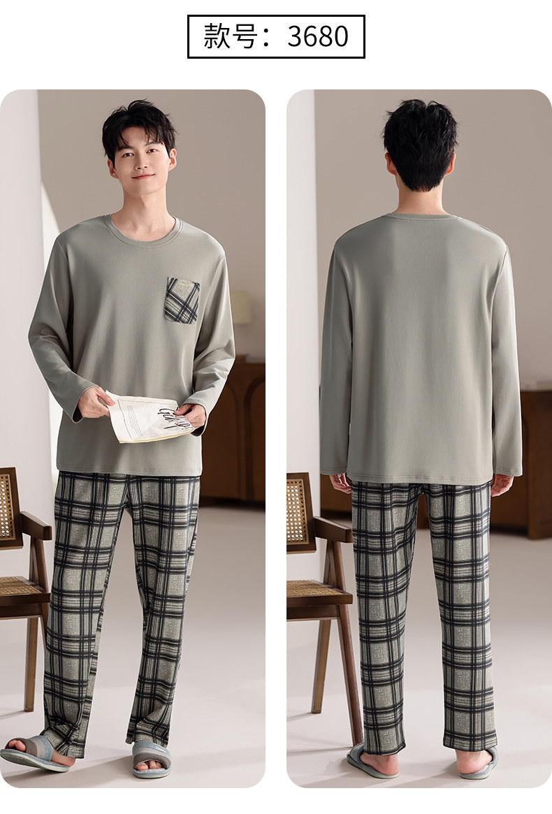 Catman men's pajamas men's autumn pure cotton autumn and winter 2026 new long-sleeved large size plaid home clothes winter