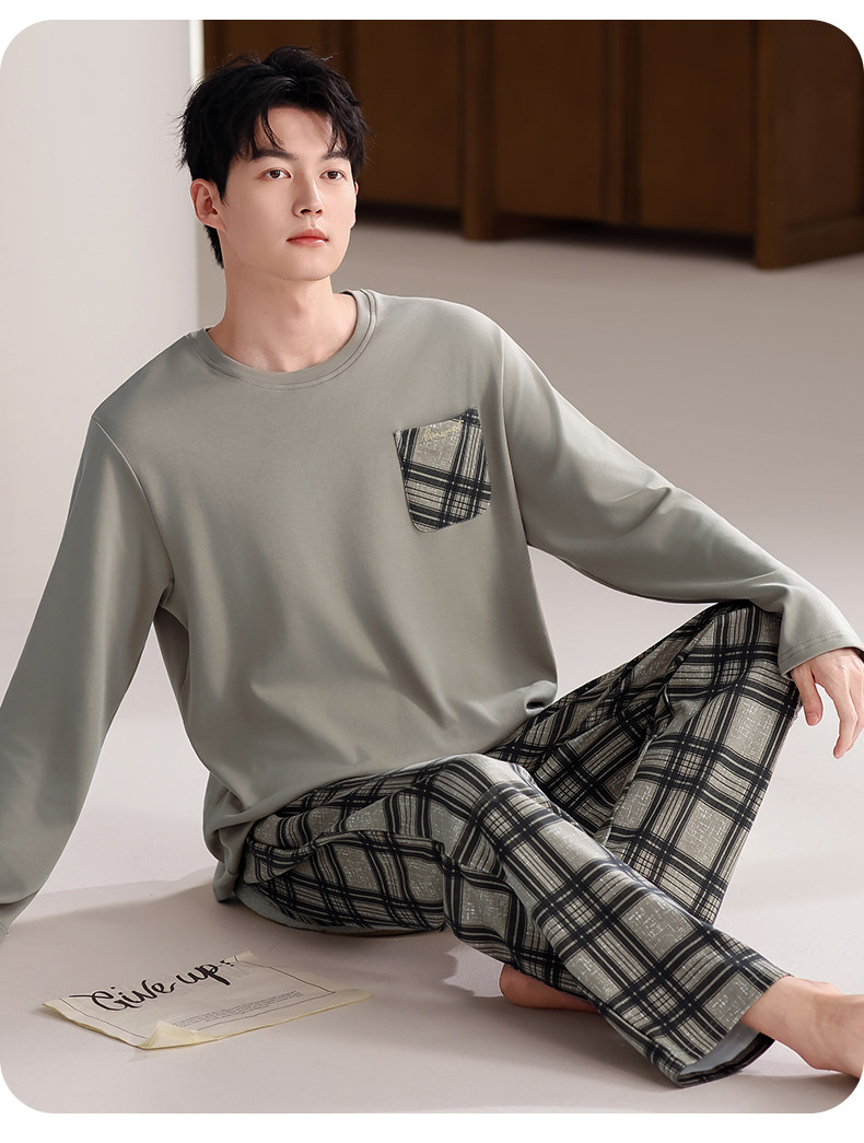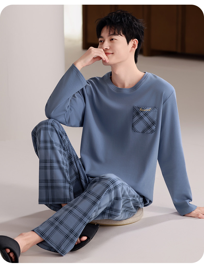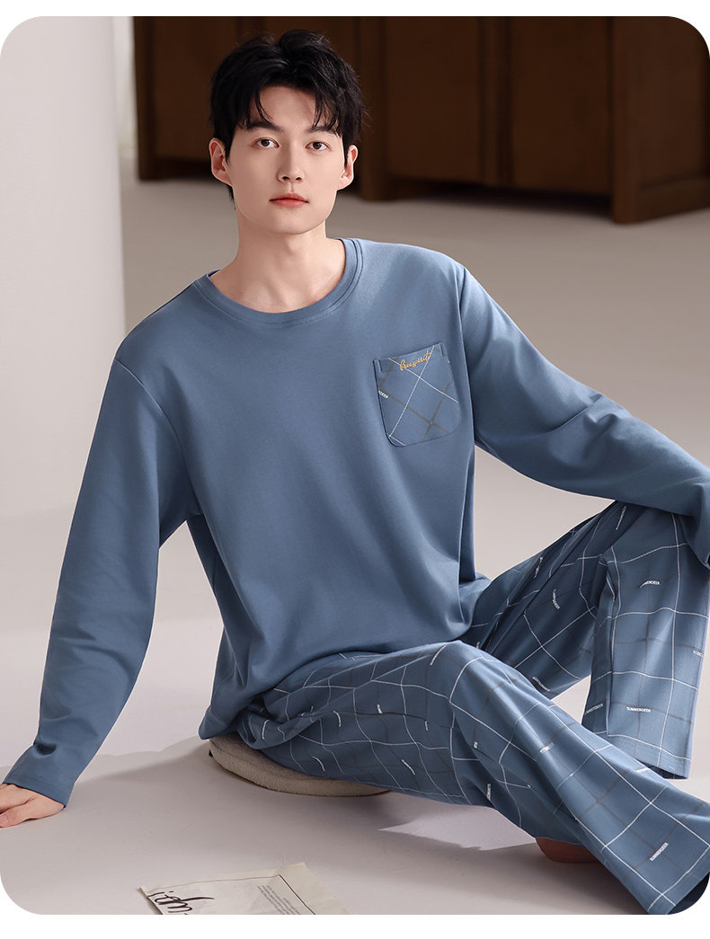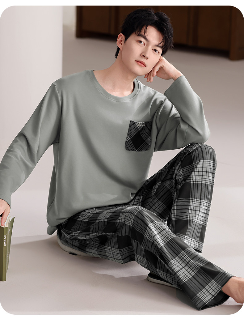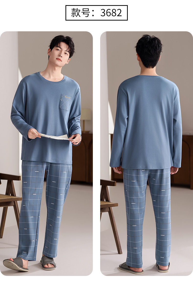 Catman men's pajamas men's autumn pure cotton autumn and winter 2026 new long-sleeved large size plaid home clothes winter
