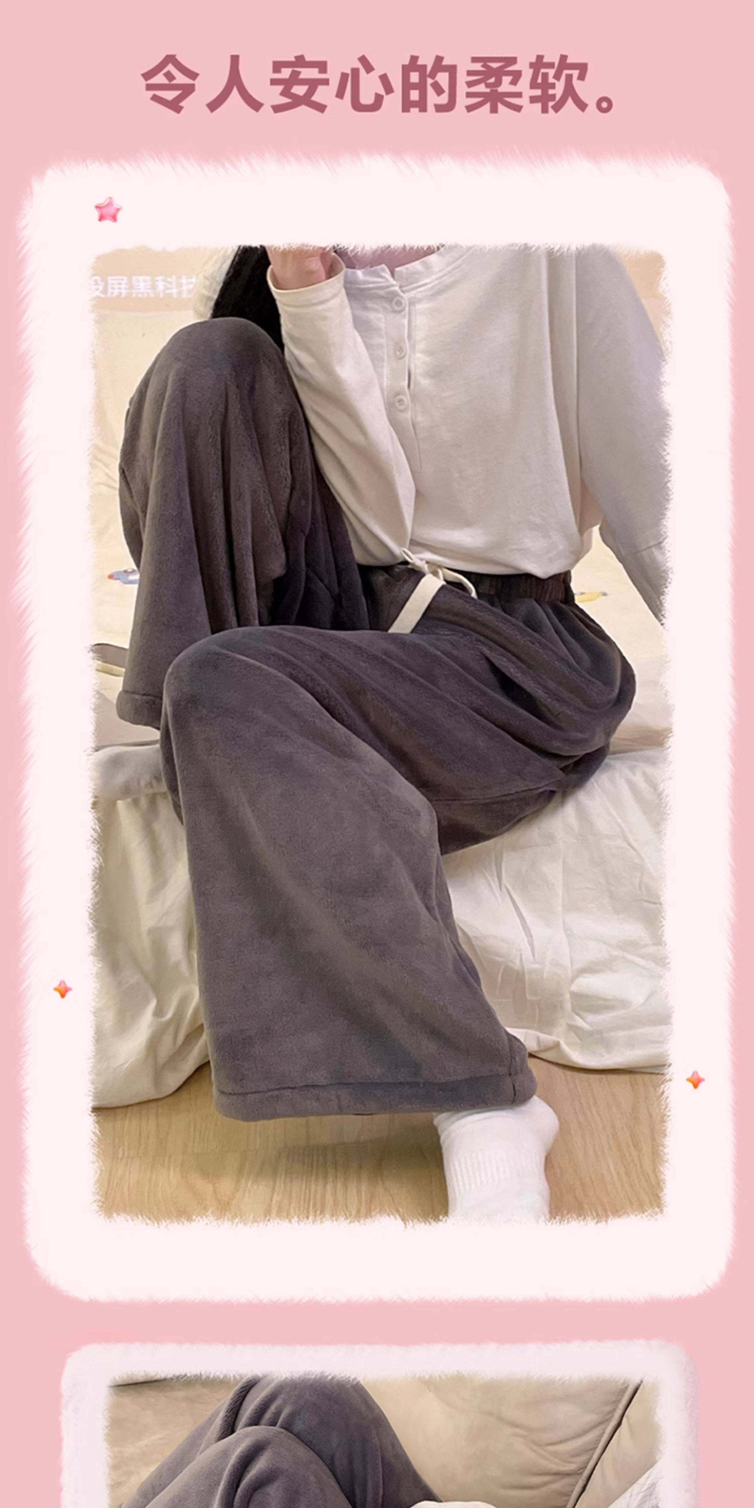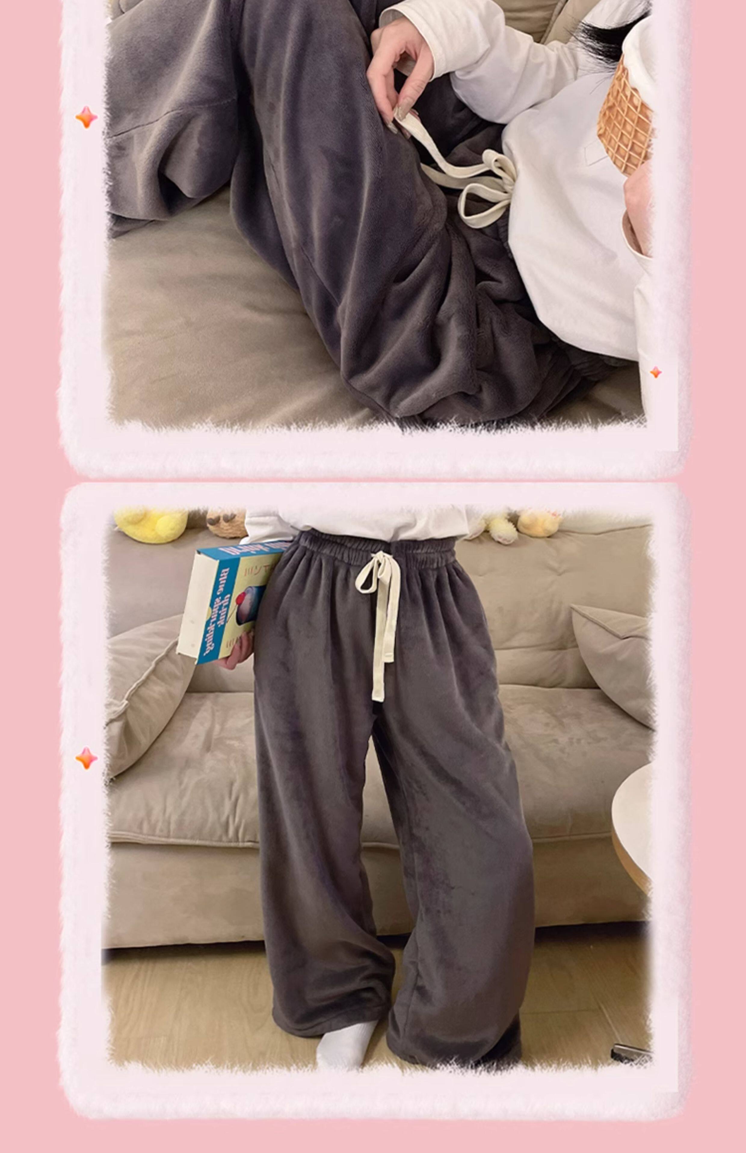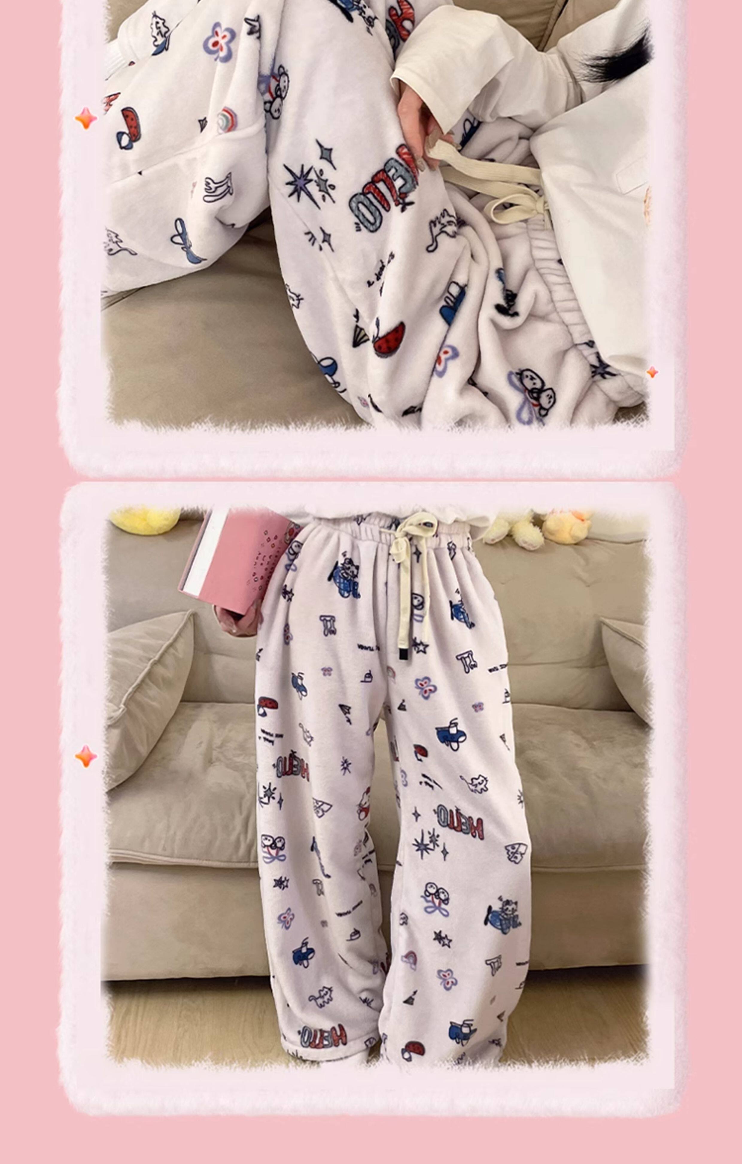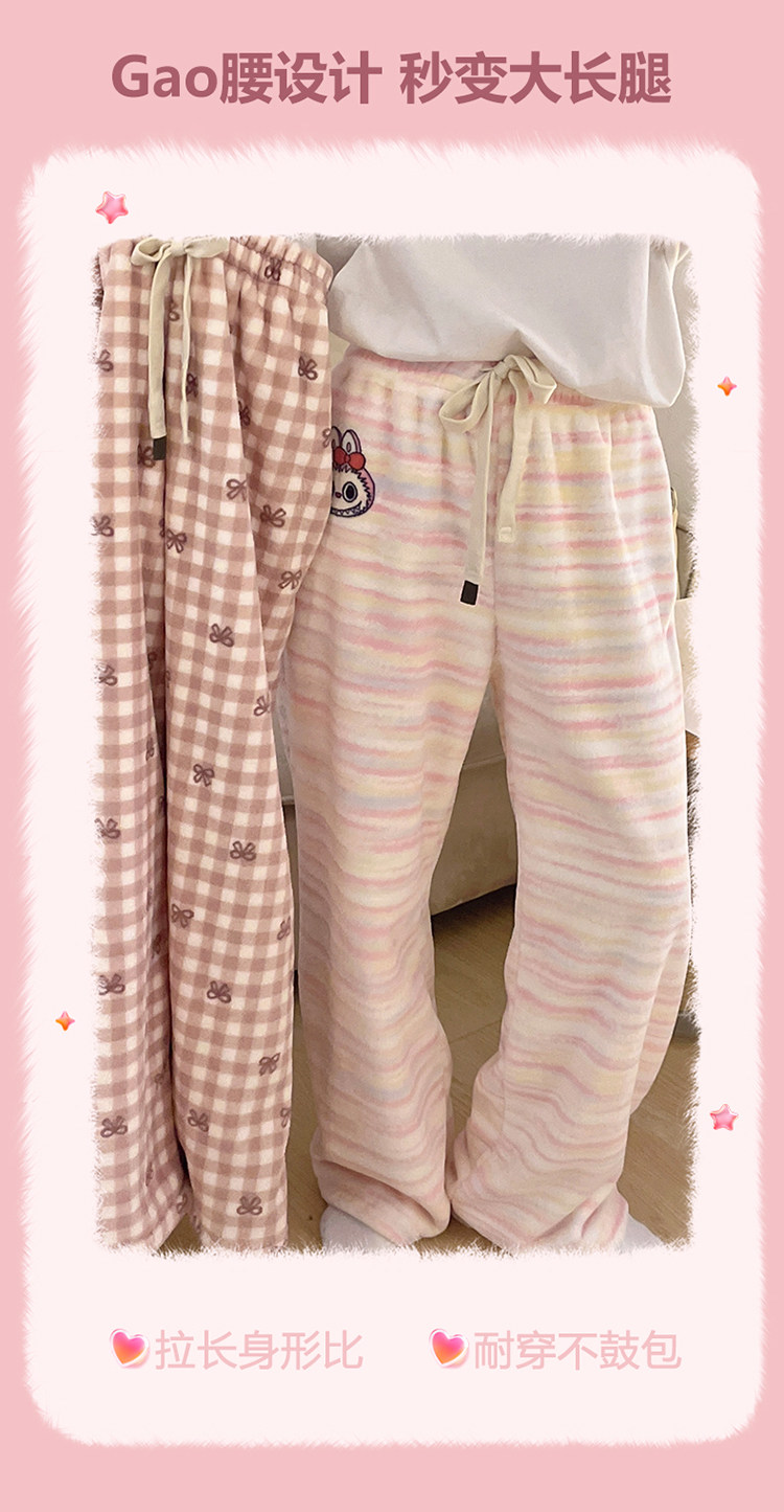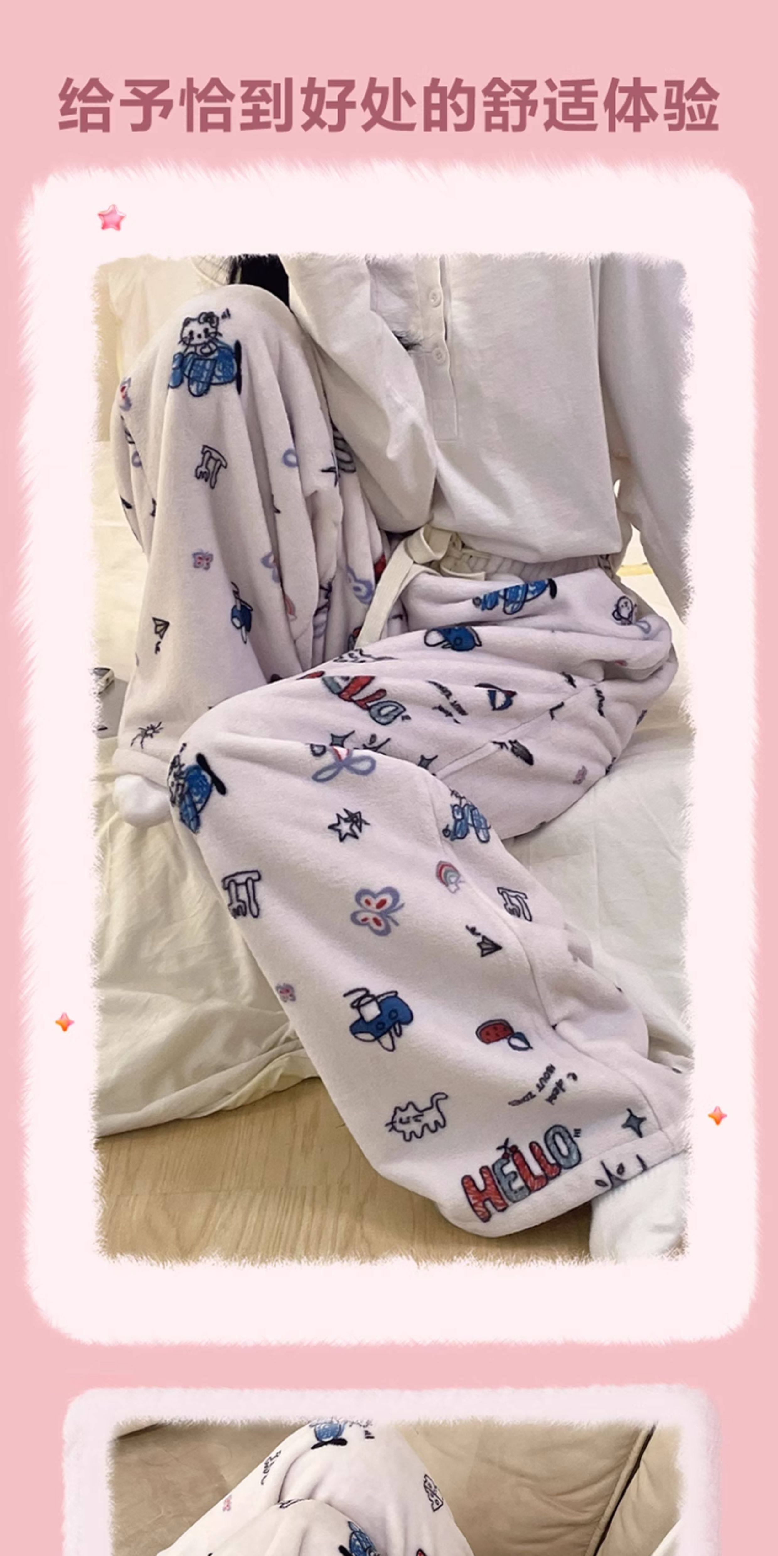 Flannel pajamas, coral velvet trousers, women's velvet thickened winter cartoon wide-leg pants, warm home warm pants