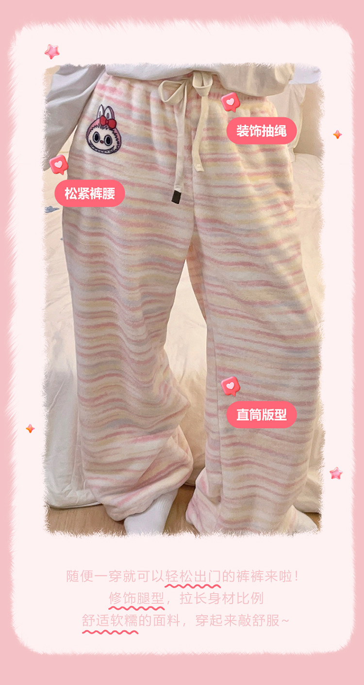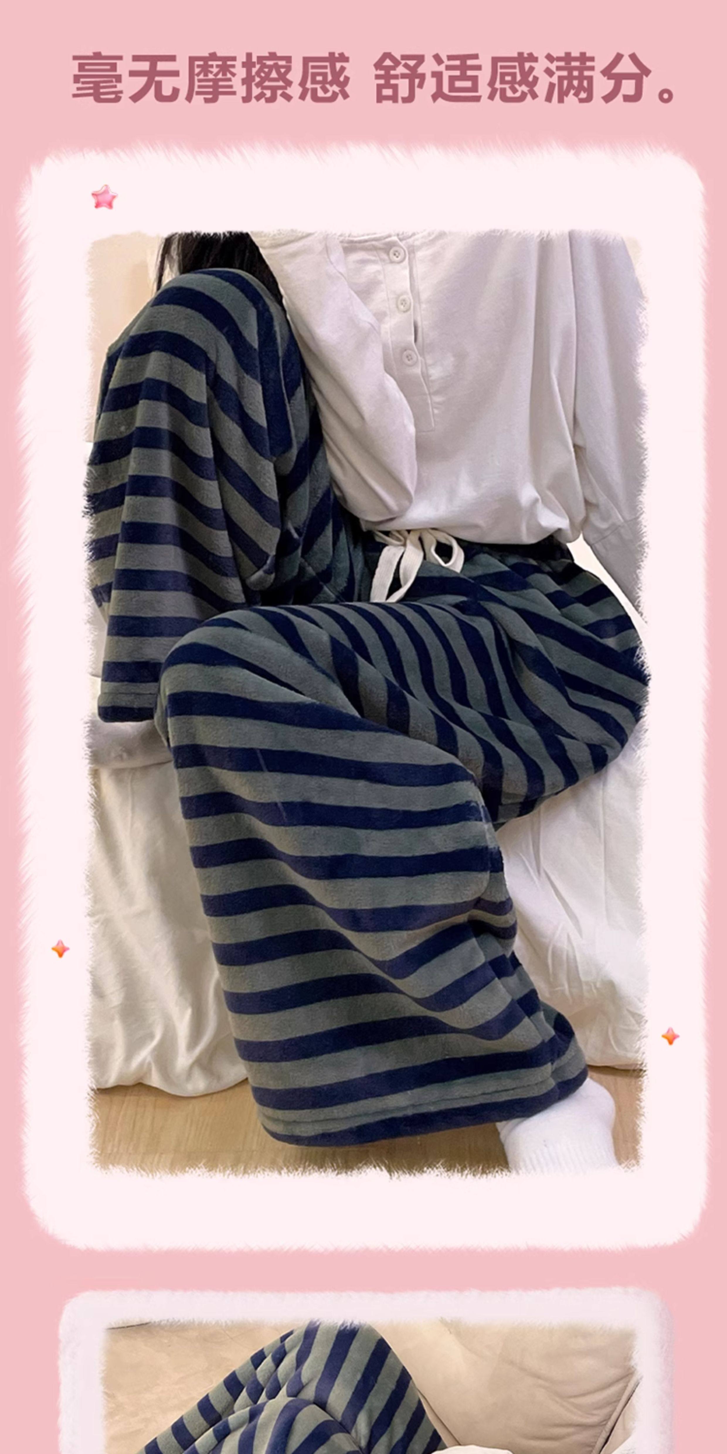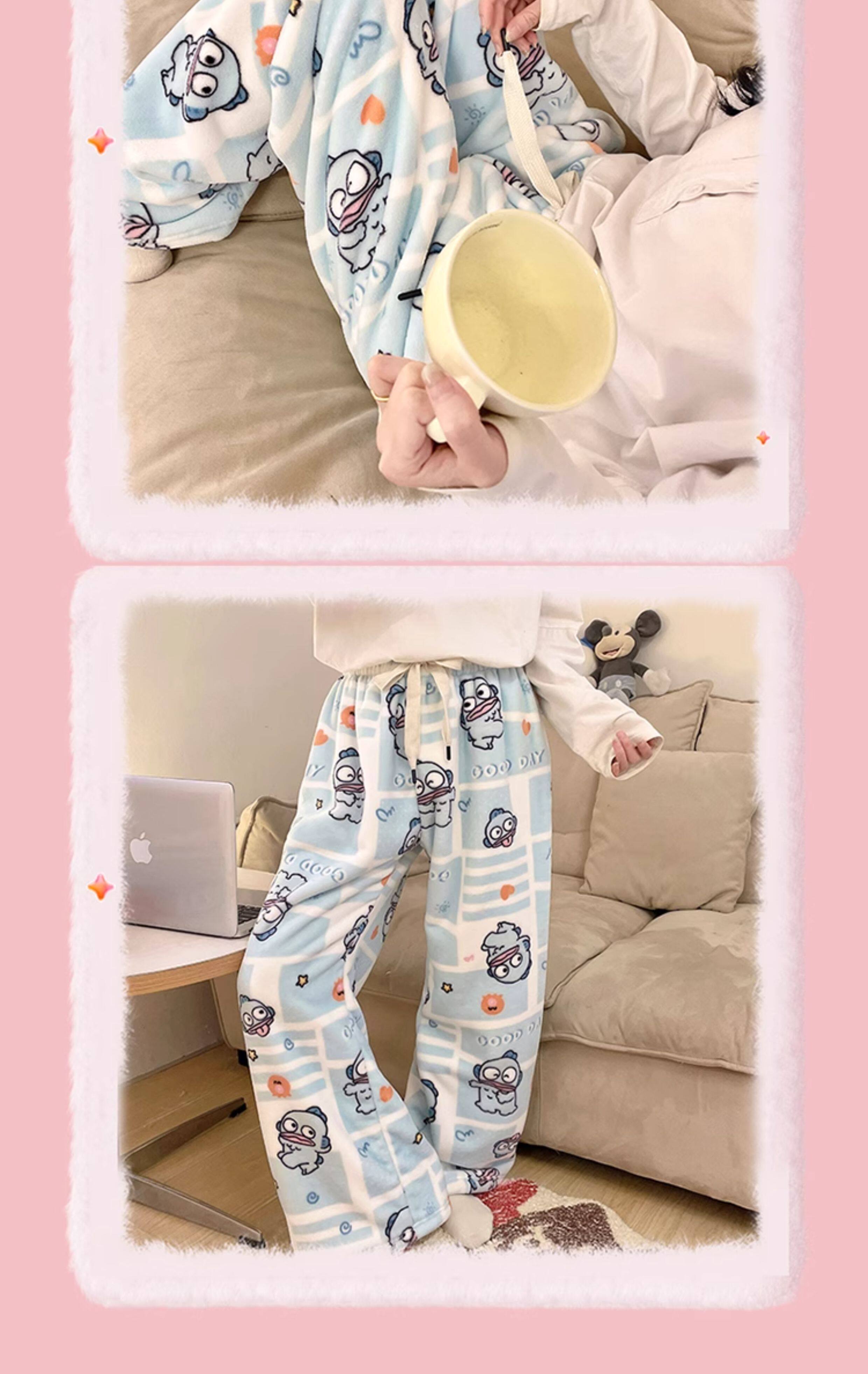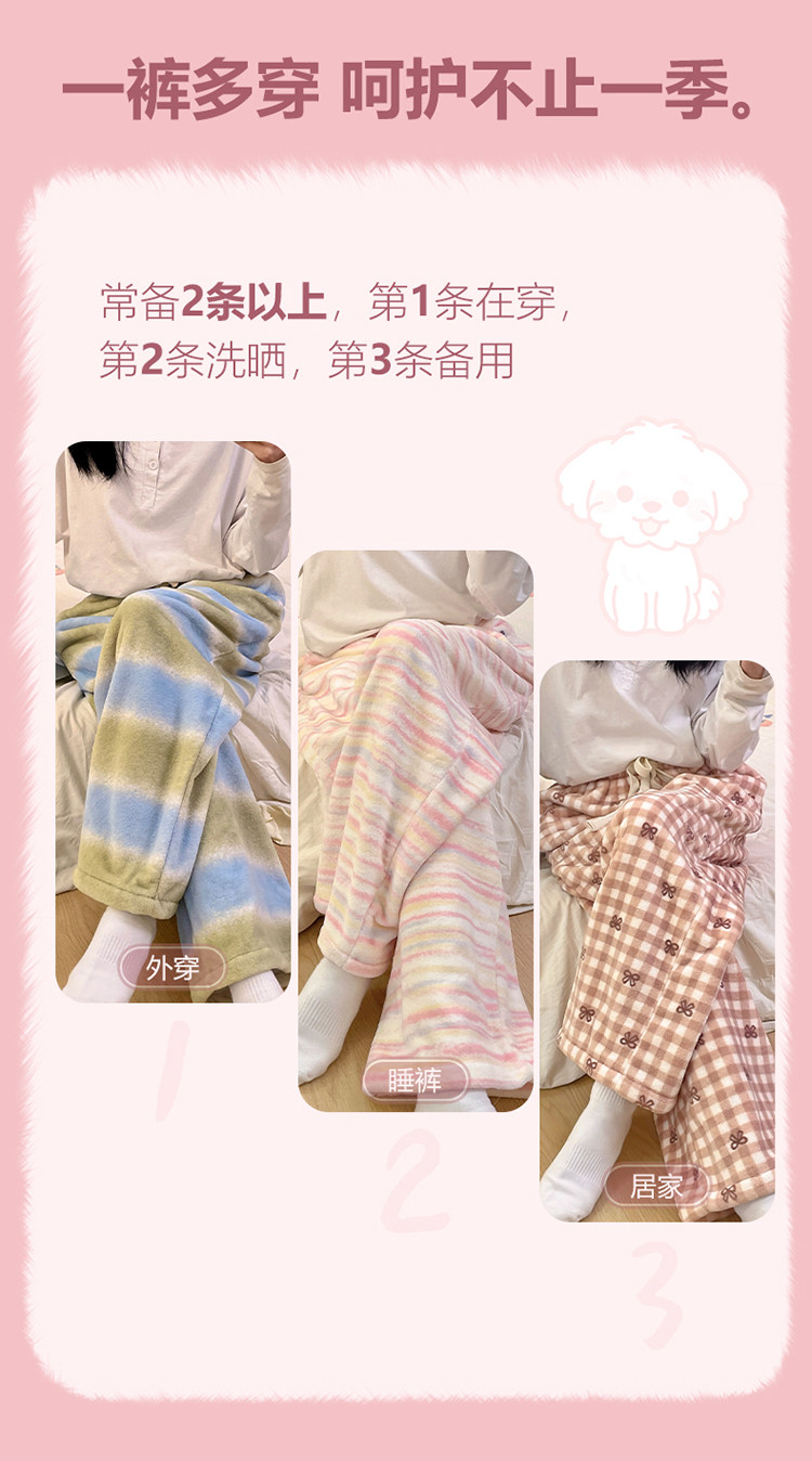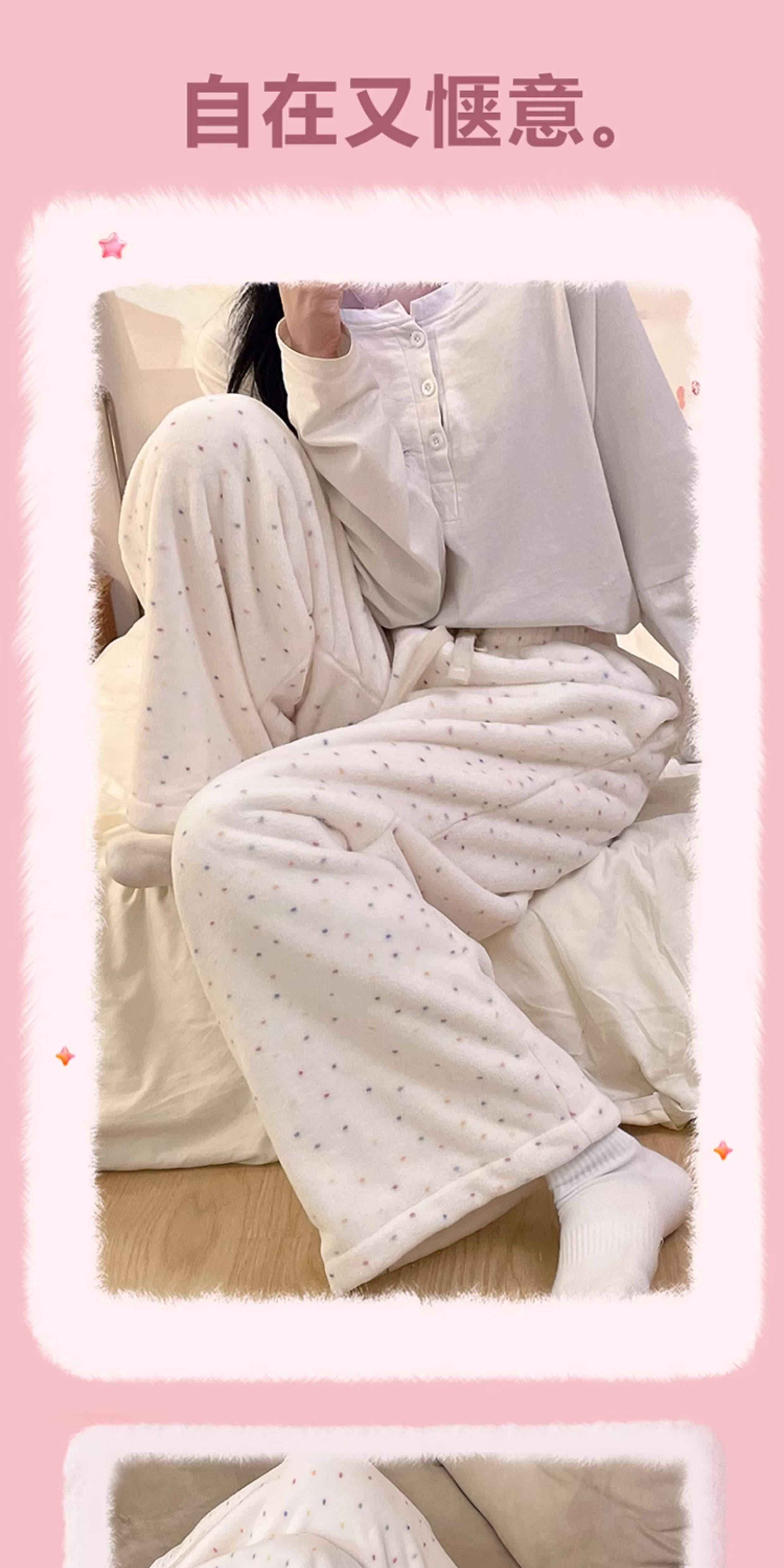Flannel pajamas, coral velvet trousers, women's velvet thickened winter cartoon wide-leg pants, warm home warm pants