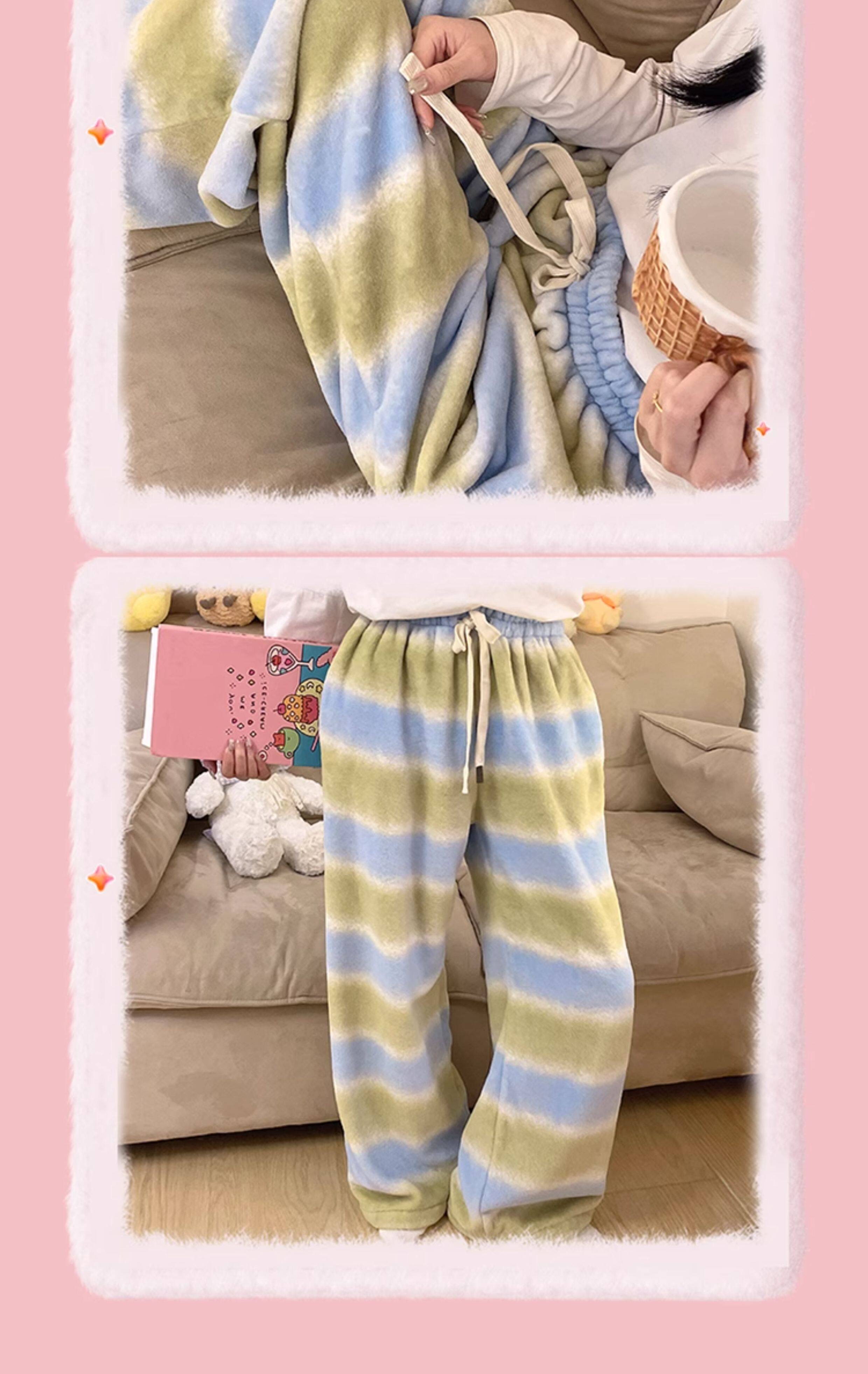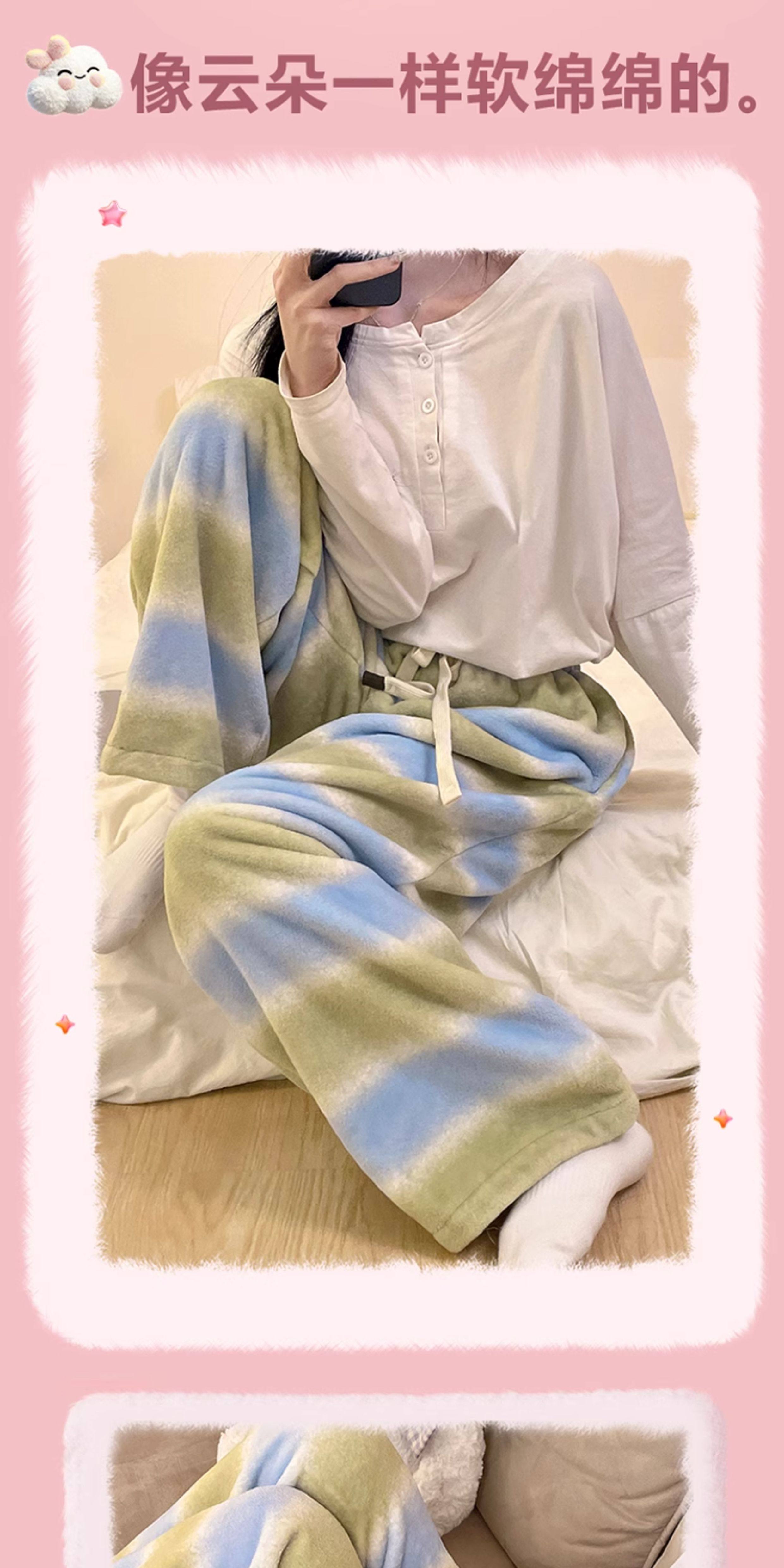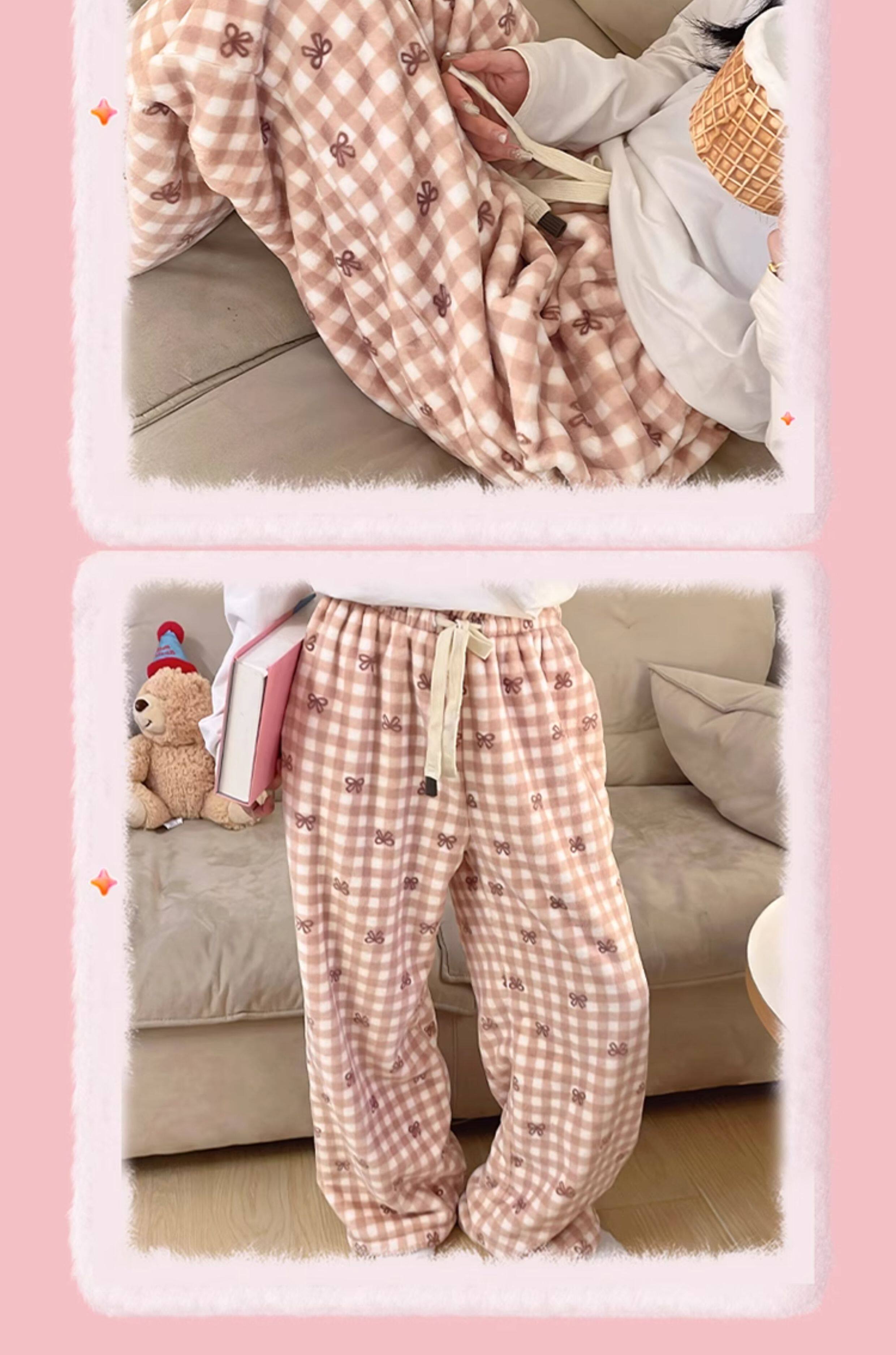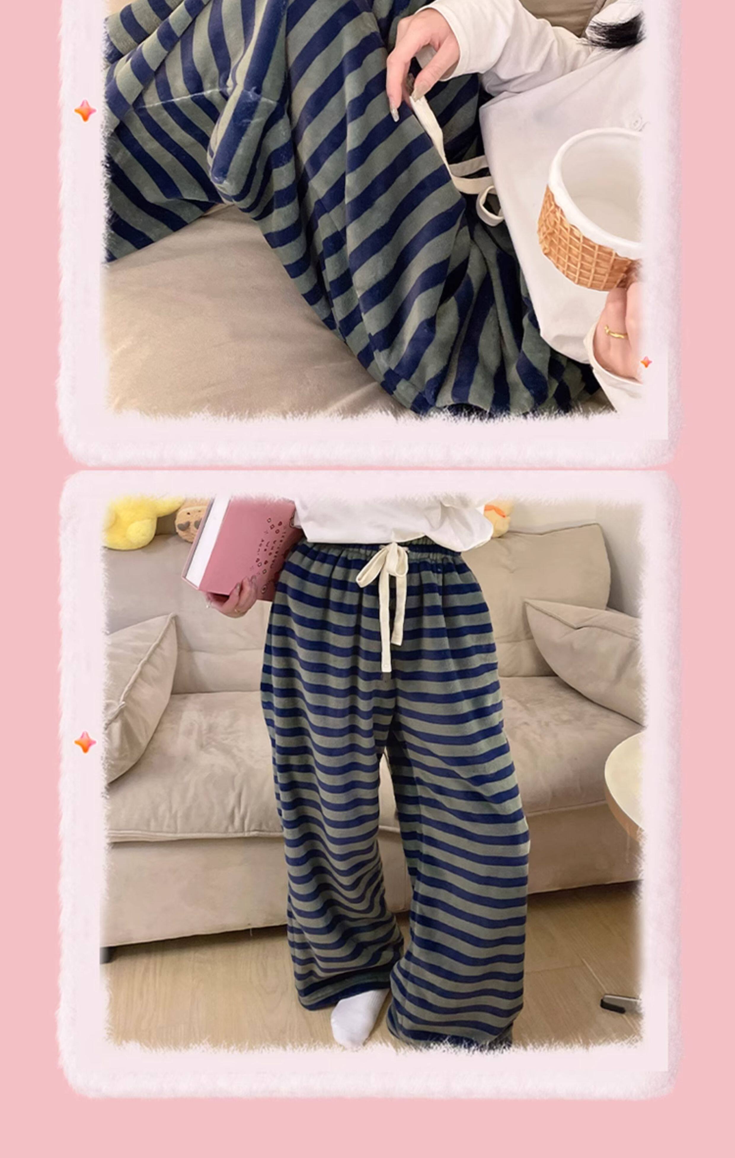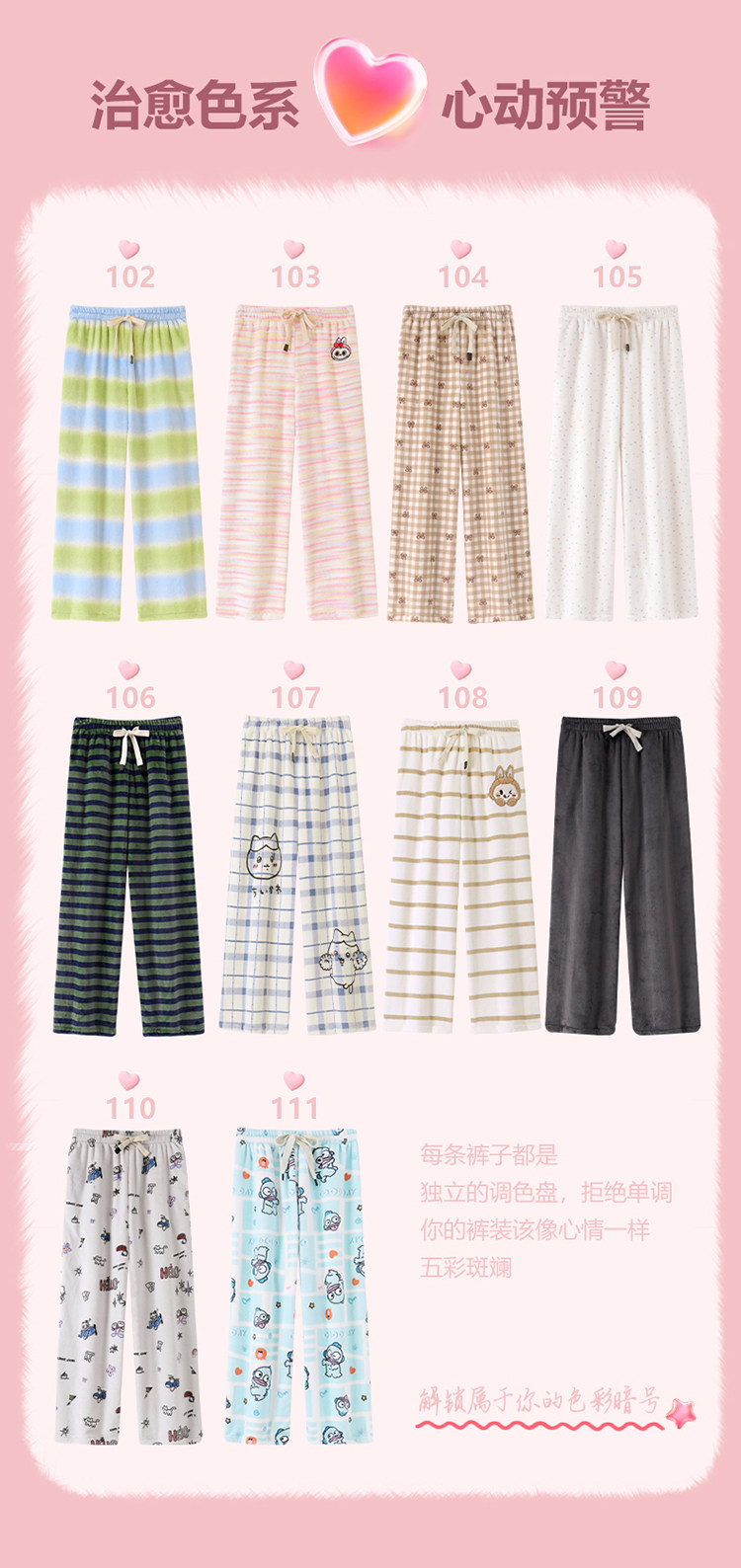 Flannel pajamas, coral velvet trousers, women's velvet thickened winter cartoon wide-leg pants, warm home warm pants
