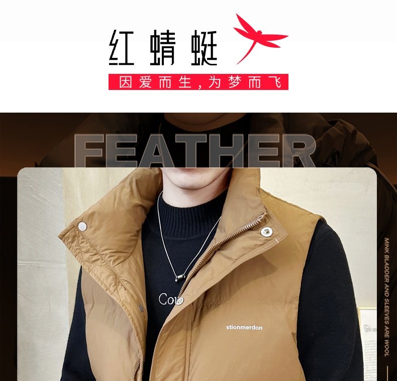 Red Dragonfly down Vest Men's Autumn New Windproof Warm Vest Trendy Fashion Casual Vest Jacket for Men