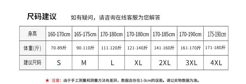 China (cm) 165 / 88-90 170 / 96-98 175 / 108-110 180 / 118-122 185 / 126-130