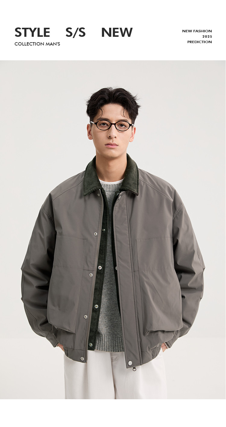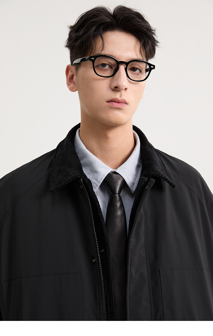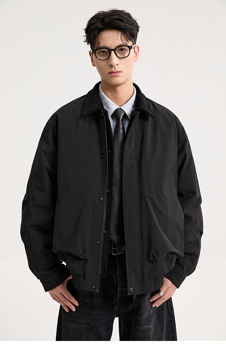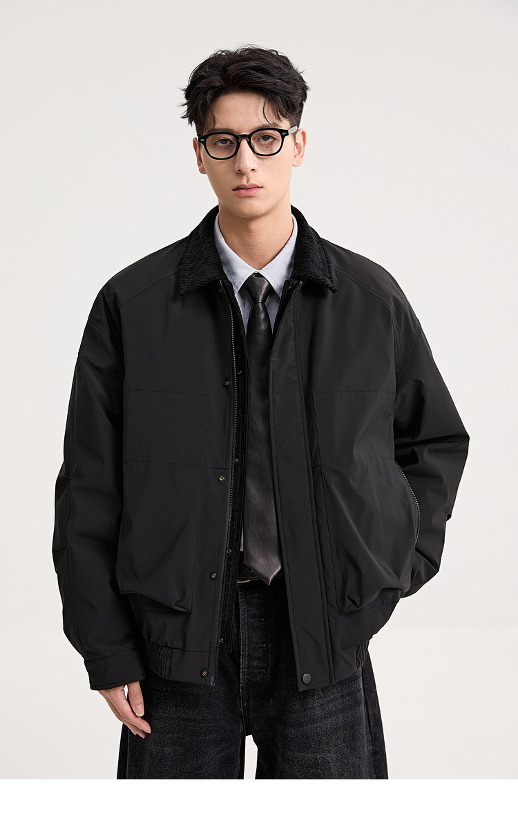 Black Zeming Barn style down jacket men's 2025 winter new fake two-piece silhouette lapel warm jacket