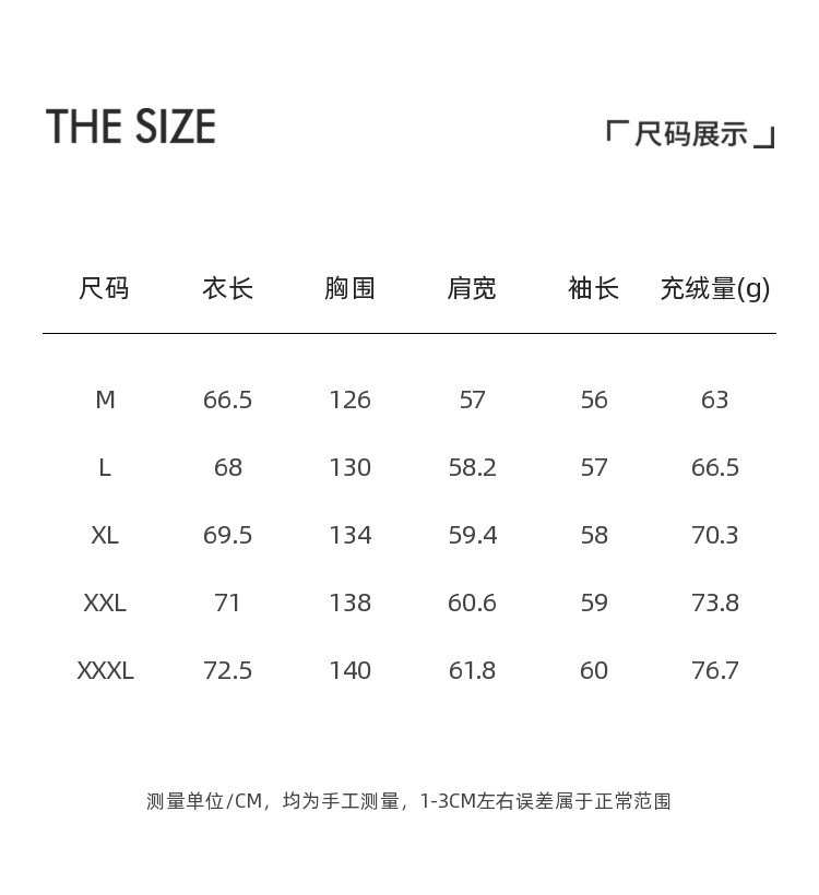 Fleece filling amount 63-76.7g