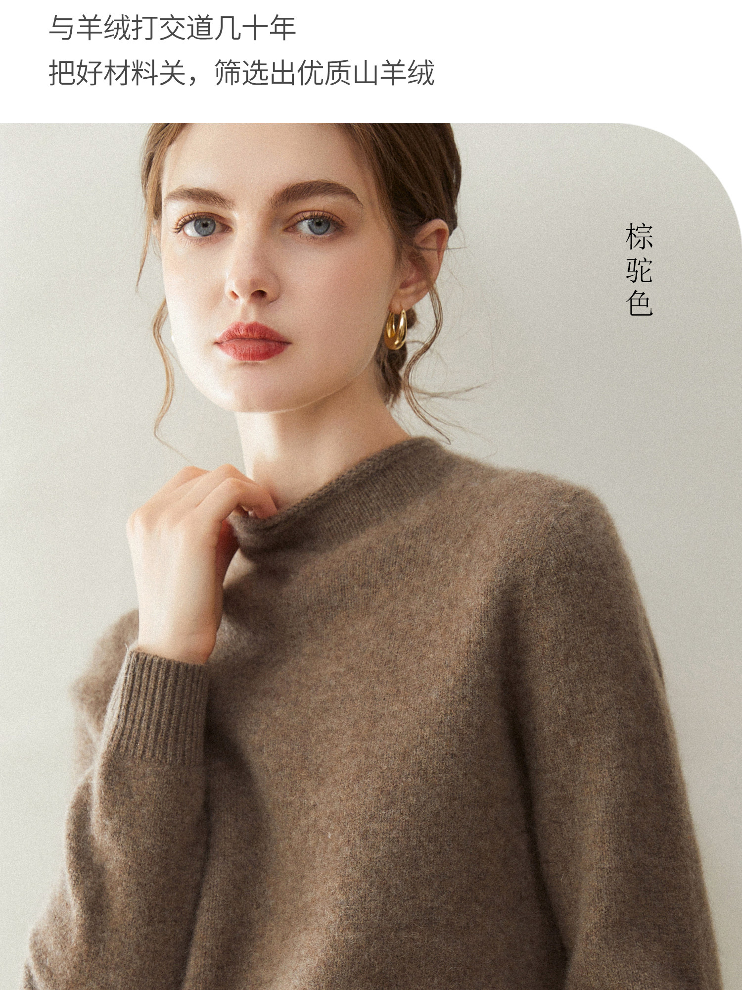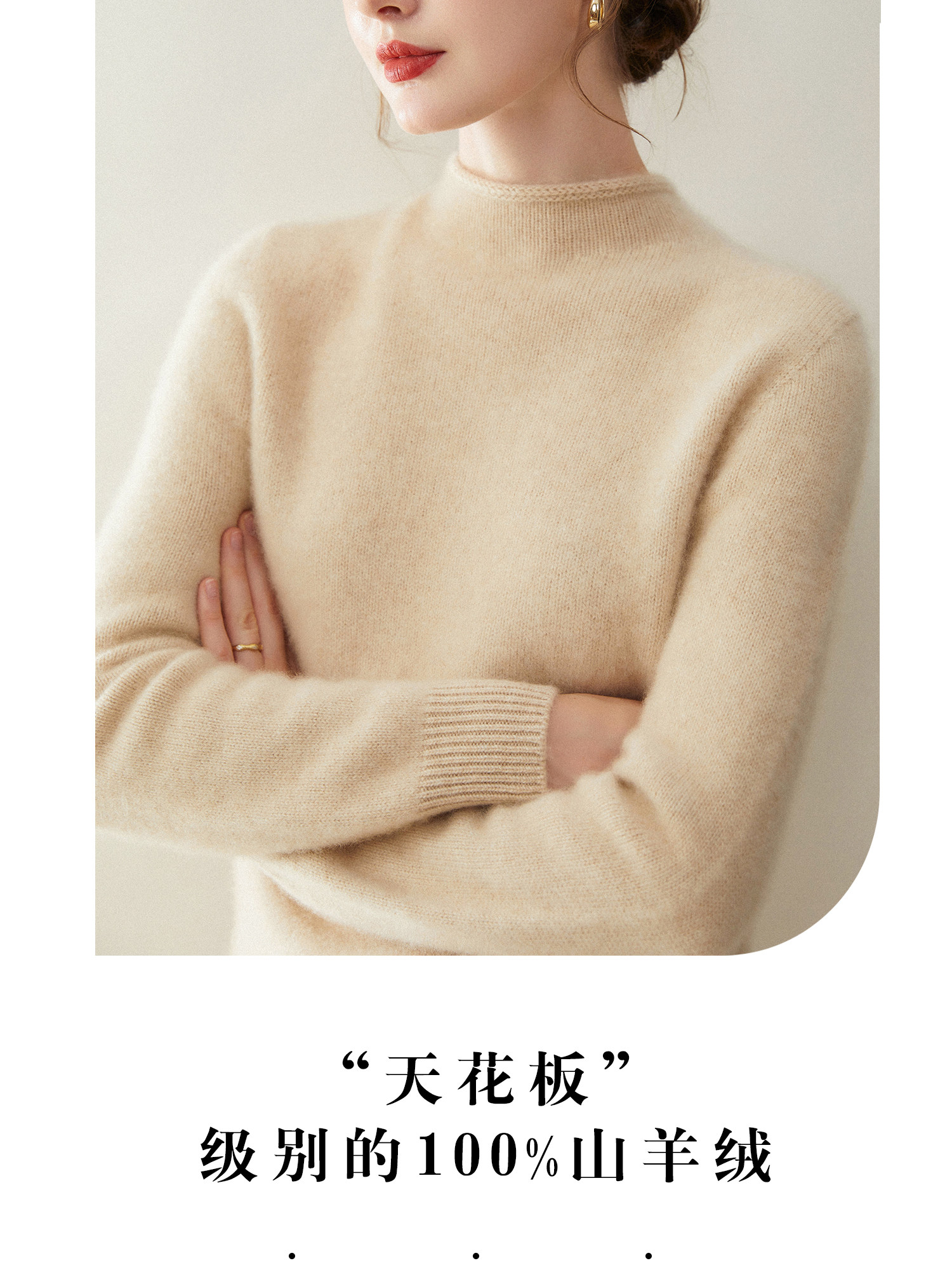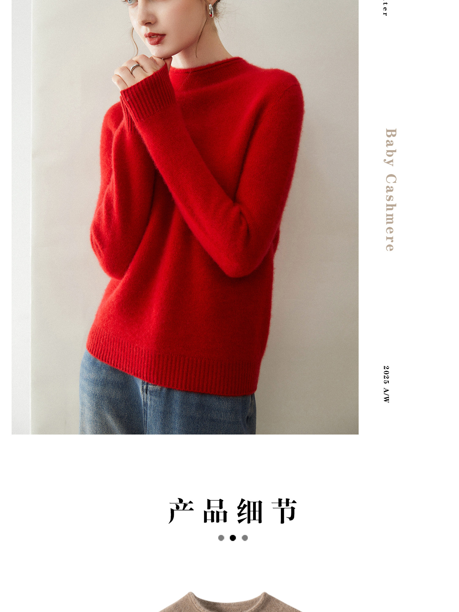 轻奢卷边加厚100%纯山羊绒衫女半高领毛衣2025新款宽松针织打底衫