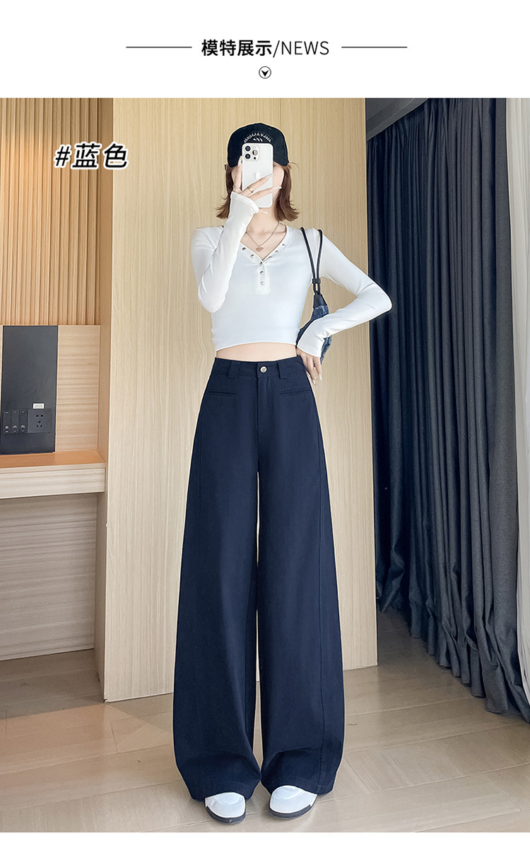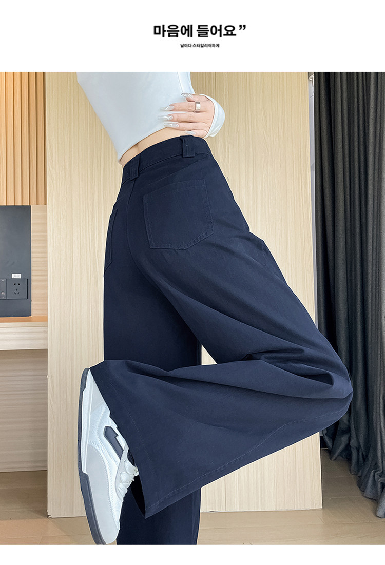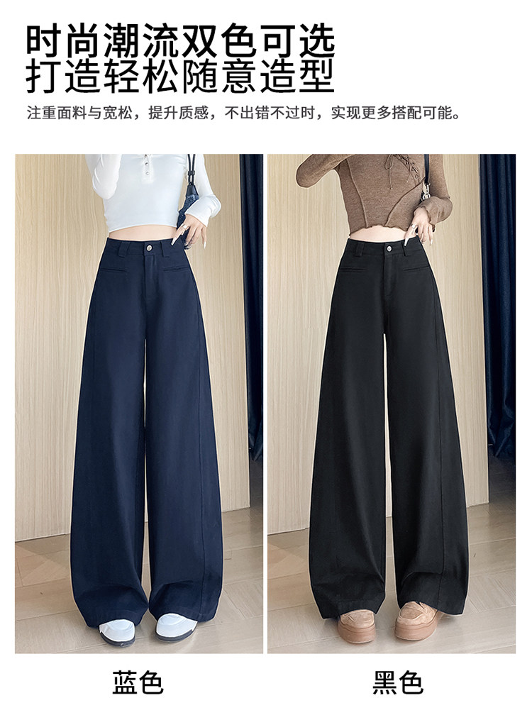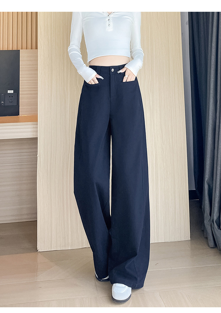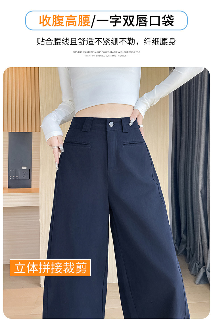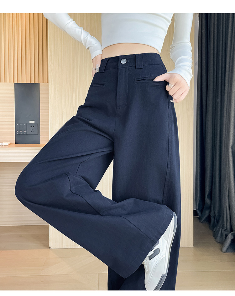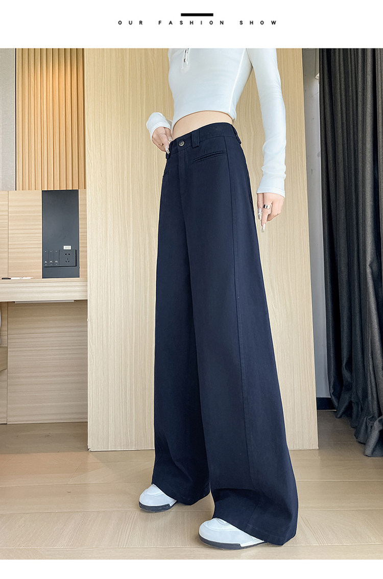 Tencel cotton narrow scimitar suit pants for women in spring and autumn navy blue anti-wrinkle wide leg pants old money style casual floor mopping pants