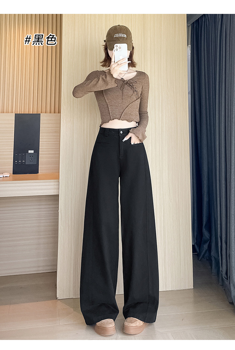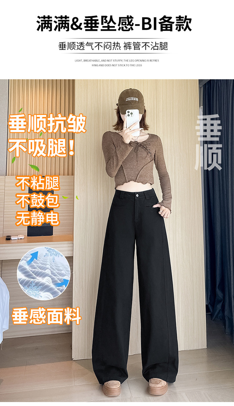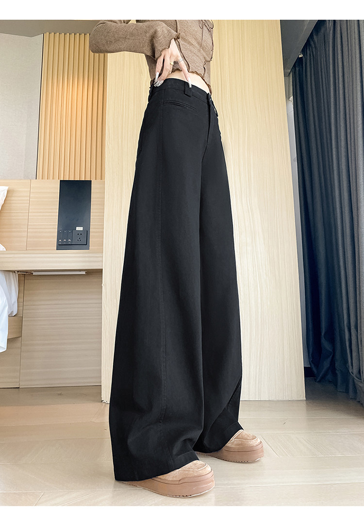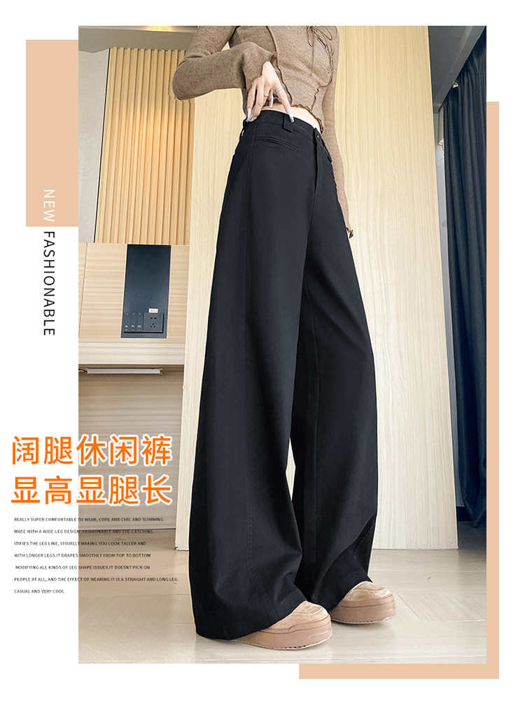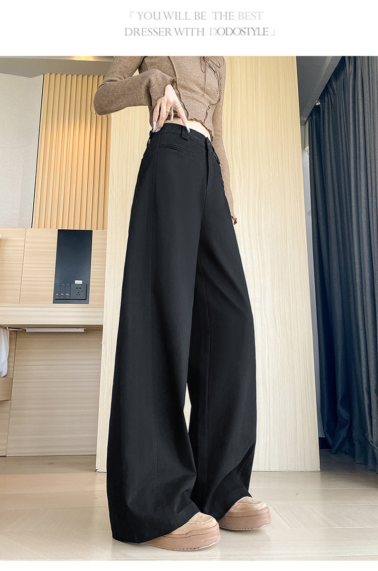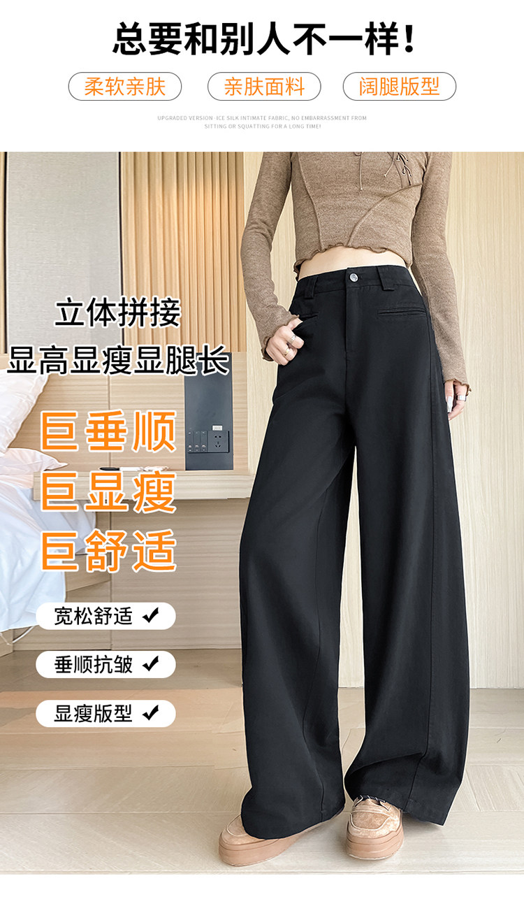 Tencel cotton narrow scimitar suit pants for women in spring and autumn navy blue anti-wrinkle wide leg pants old money style casual floor mopping pants