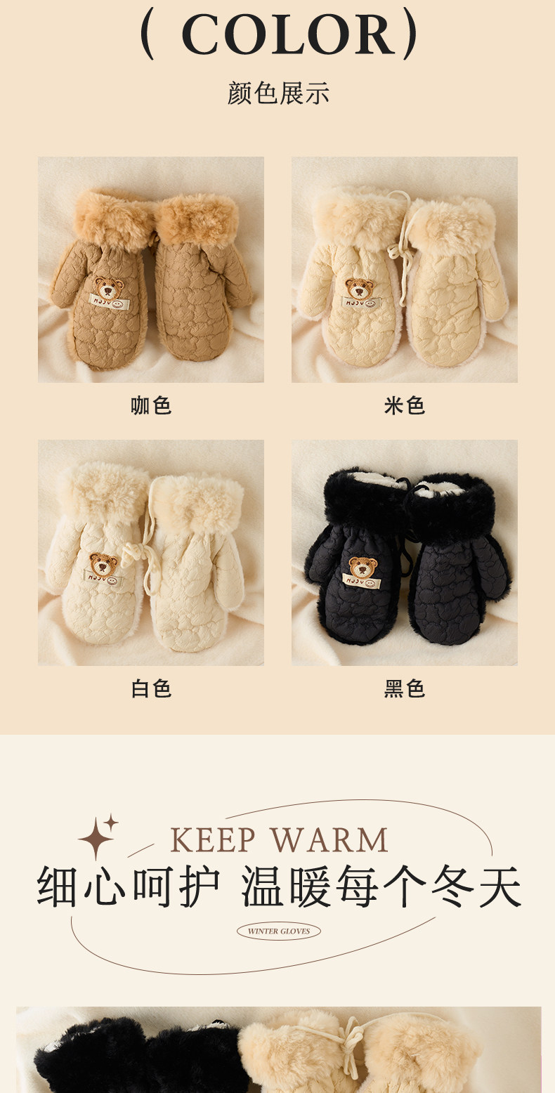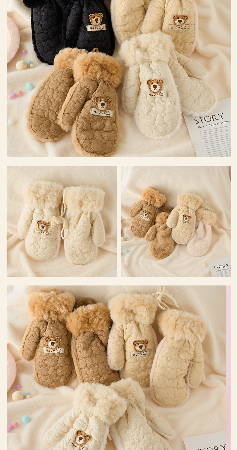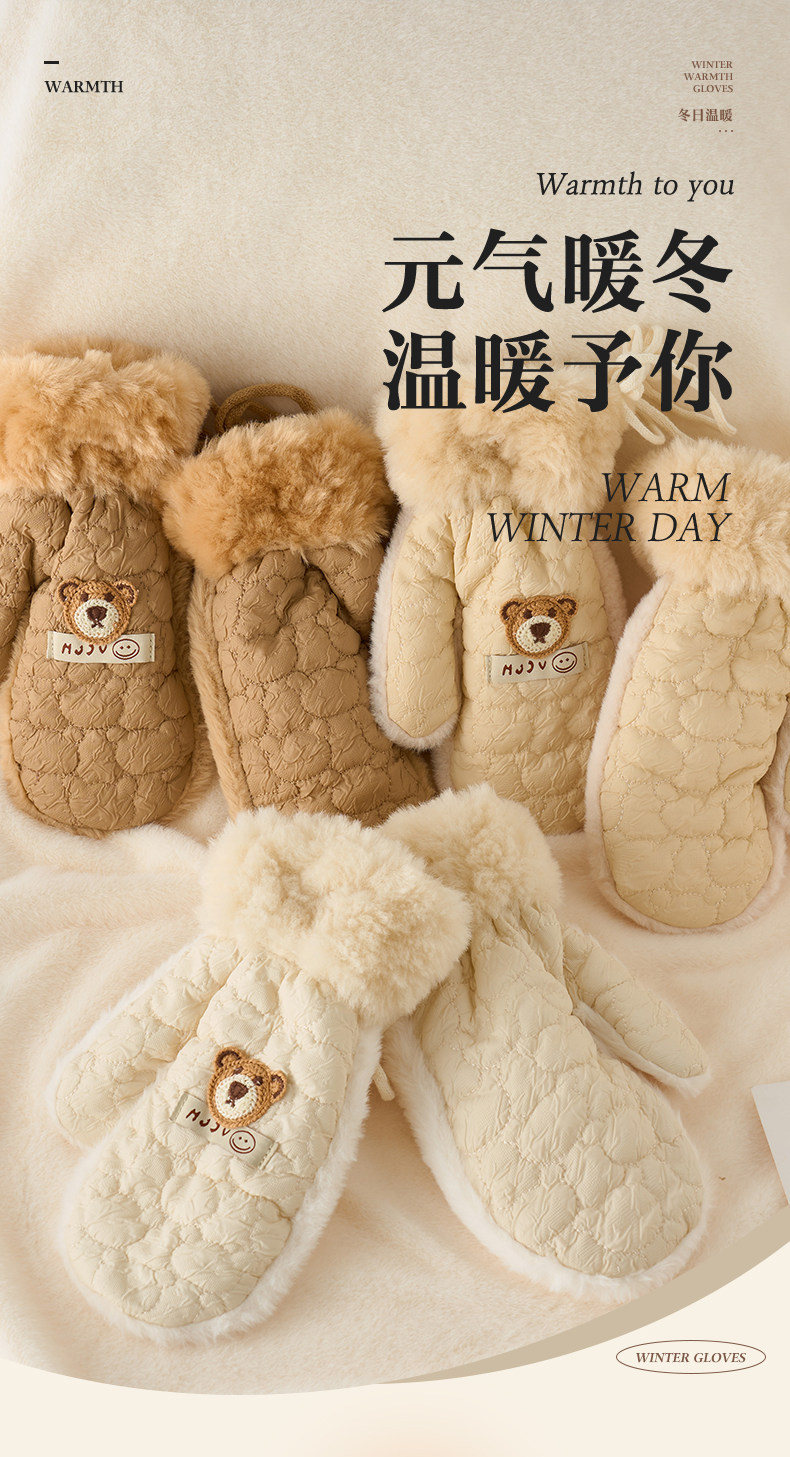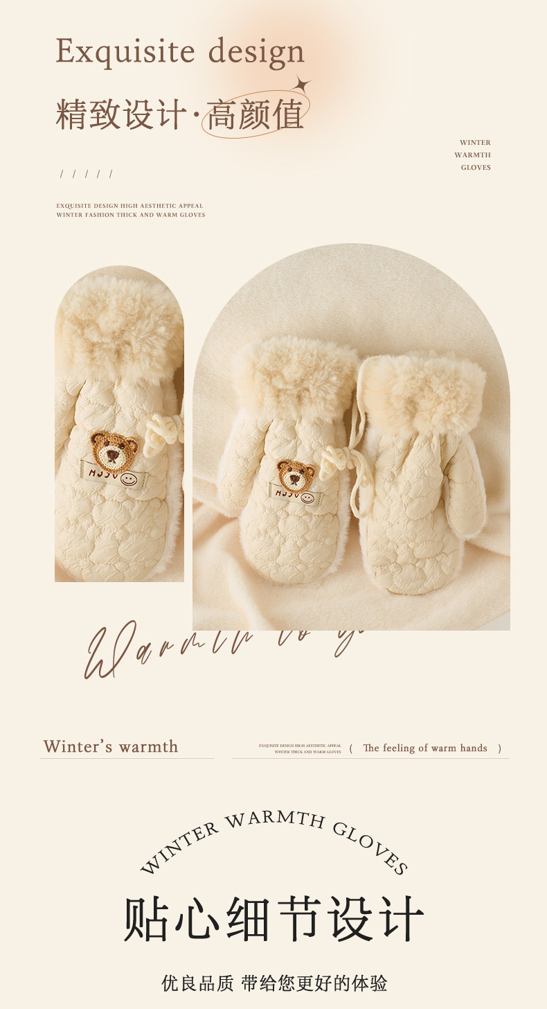 Cute plush gloves for women in winter cartoon windproof and warm plus velvet and thickened student cycling cold-proof all-inclusive mittens
