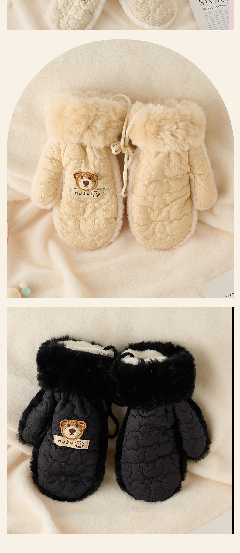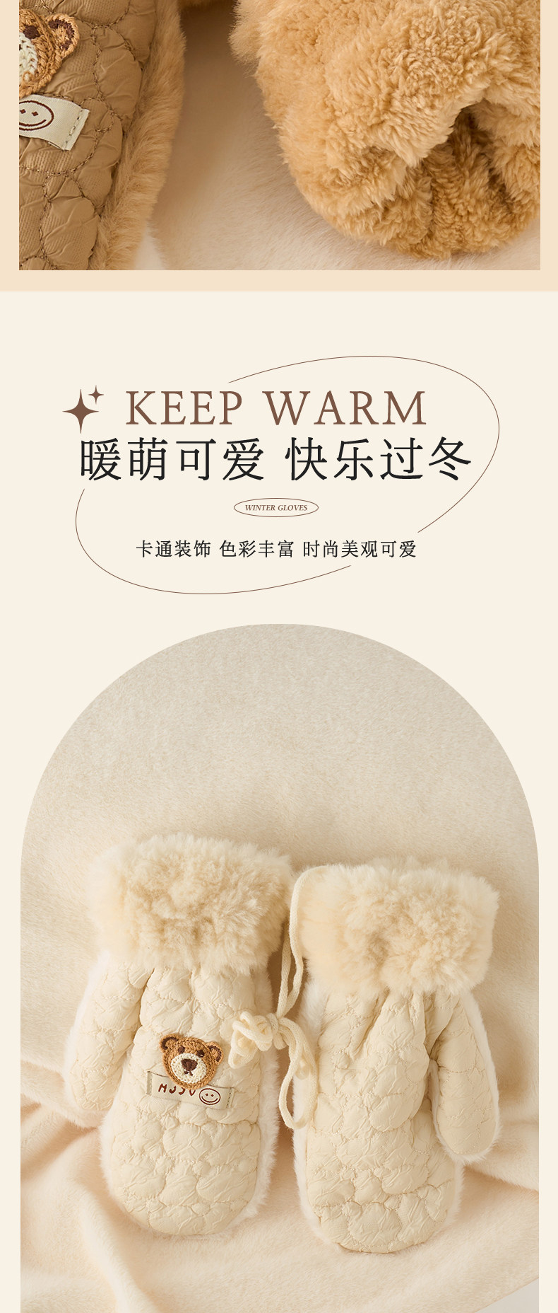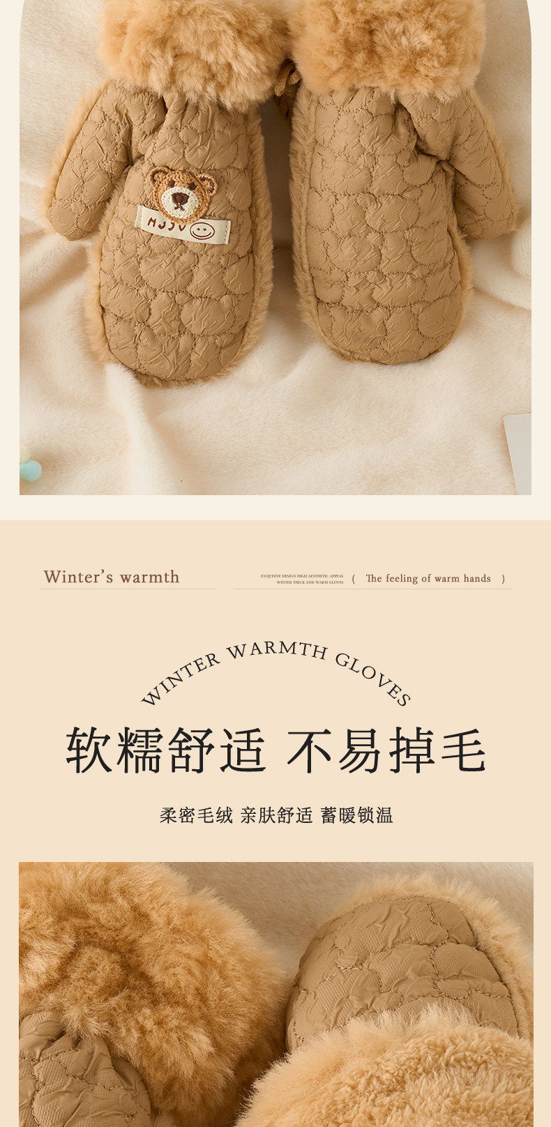 Cute plush gloves for women in winter cartoon windproof and warm plus velvet and thickened student cycling cold-proof all-inclusive mittens