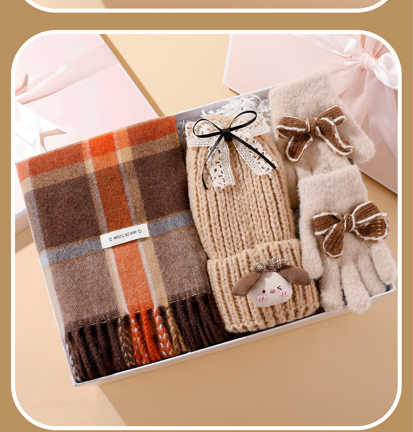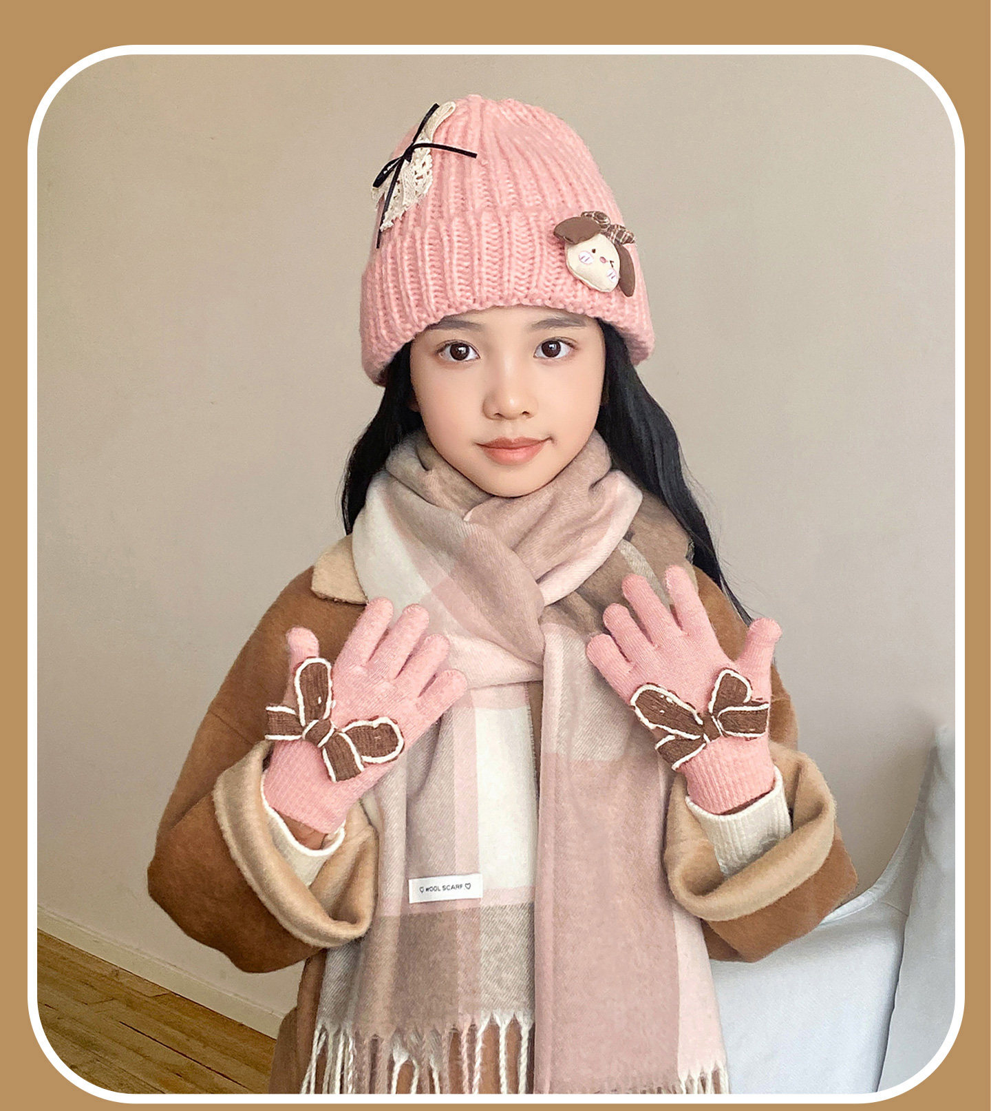Color Classification Khaki Korean Plaid Warm Winter Three-Piece Set,Khaki Korean Plaid Warm Winter Four-Piece Set,Caramel Korean Plaid Warm Winter Three-Piece Set,Caramel Korean Plaid Warm Winter Four-Piece Set,Pink and Coffee Korean Plaid Warm Winter Three-Piece Set,Pink and Coffee Korean Plaid Warm Winter Four-Piece Set