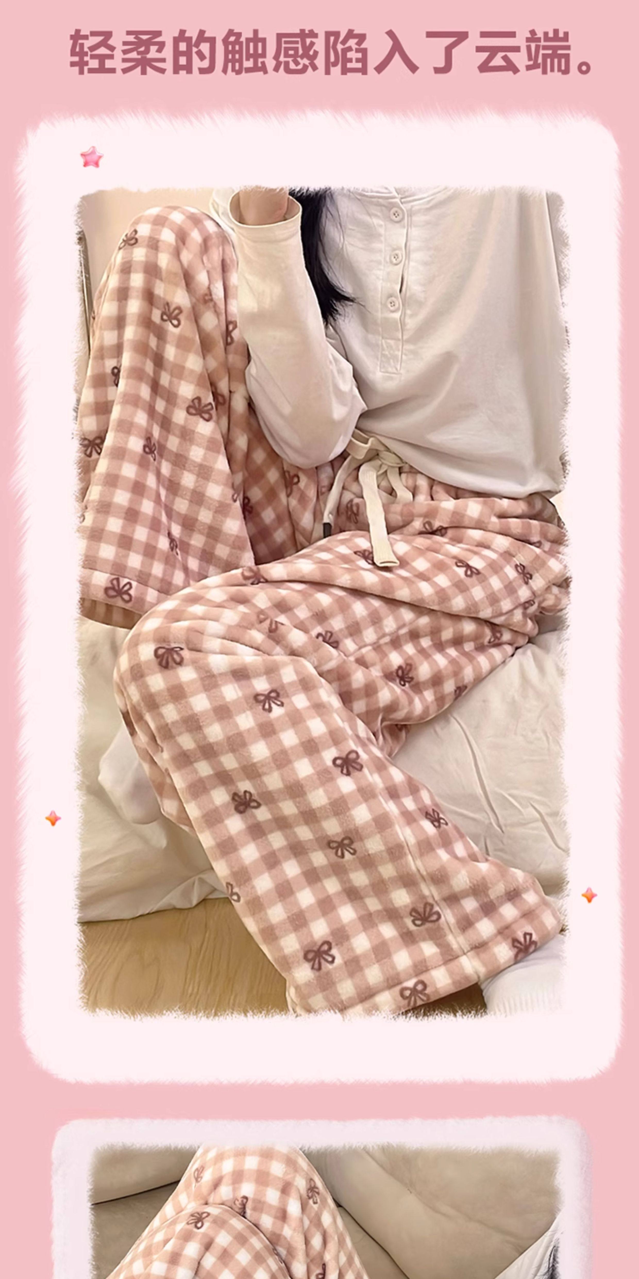 Clownfish pajama pants women's flannel trousers autumn and winter casual lazy style home pants coral velvet warm wide-leg pants