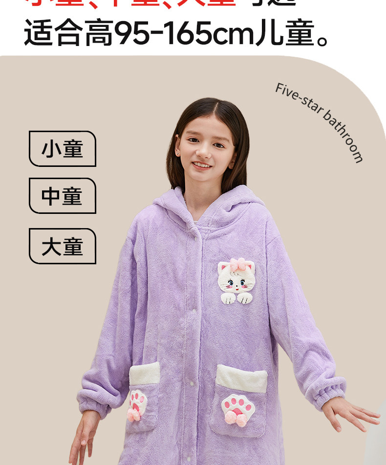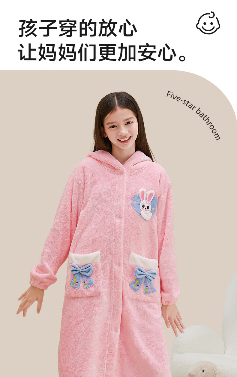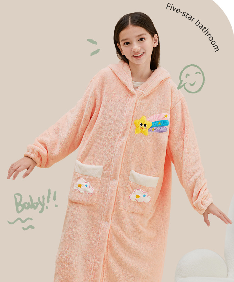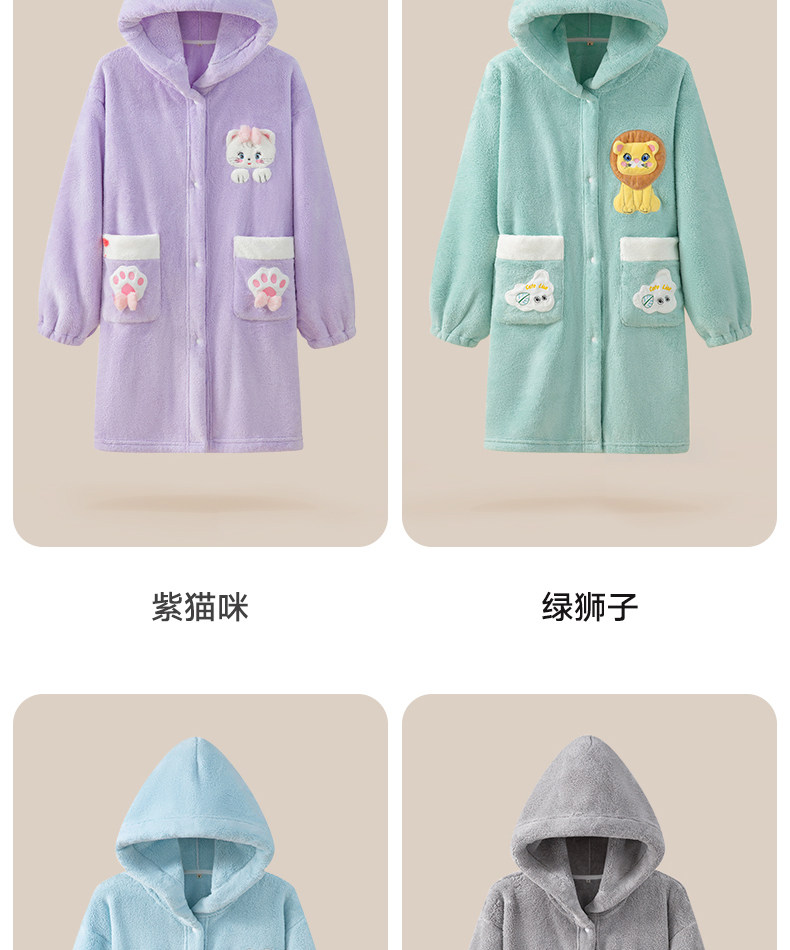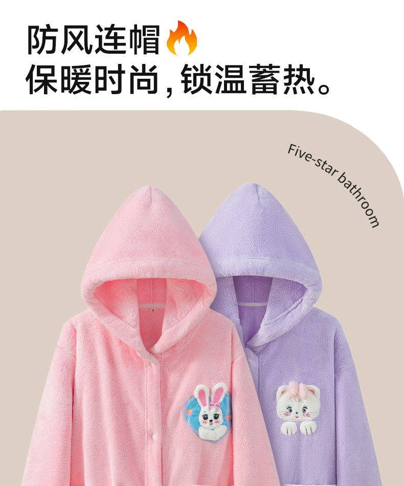 Children's Bathrobe, Thickened Coral Fleece, for Boys and Girls, Older Children and Teenagers, Non-Pure Cotton, Absorbent, for Swimming and Bathing, Class a