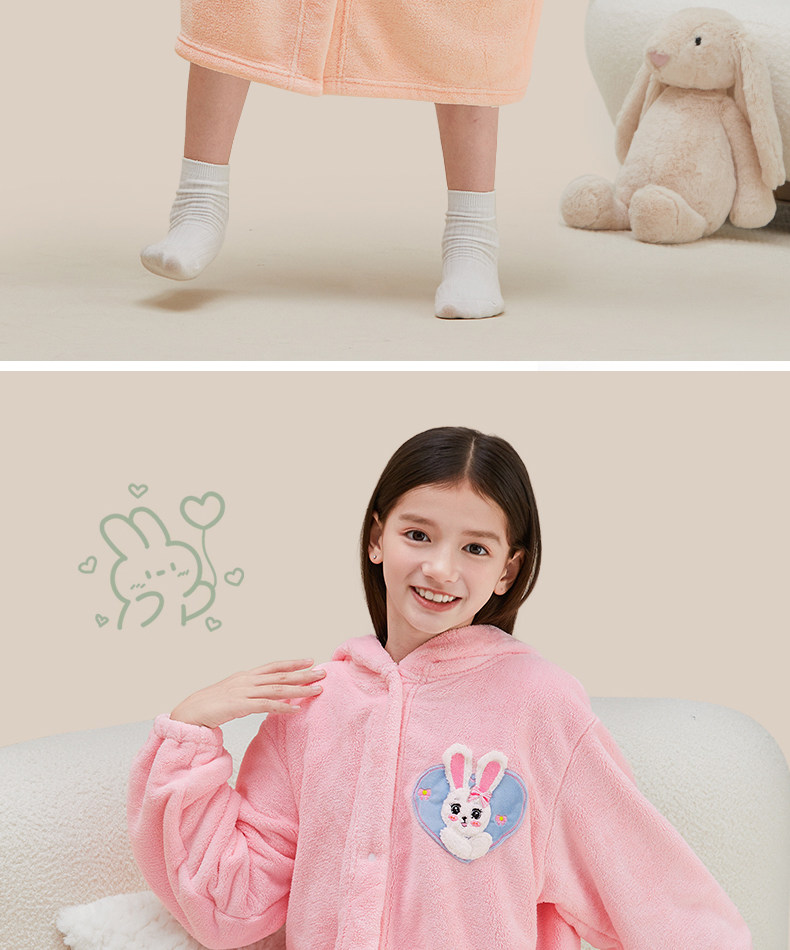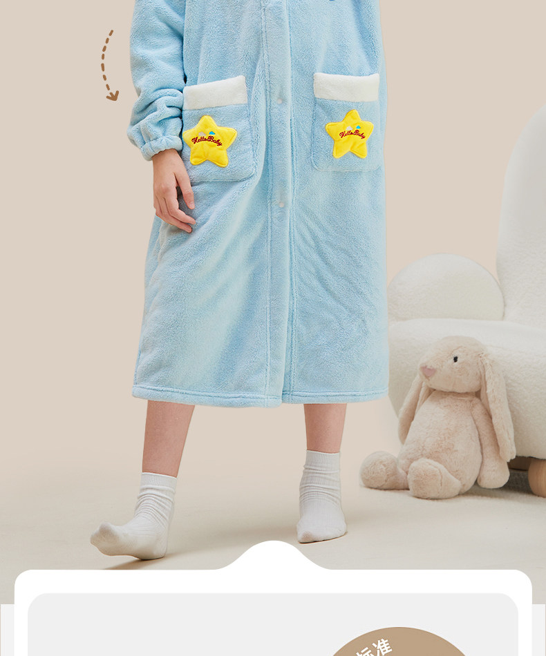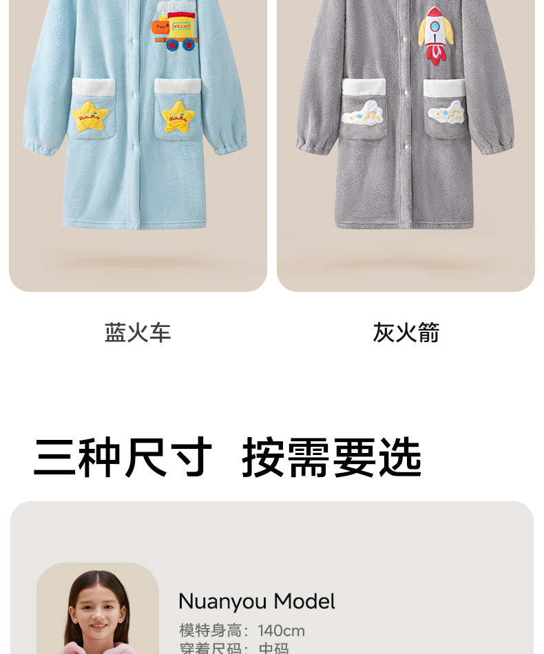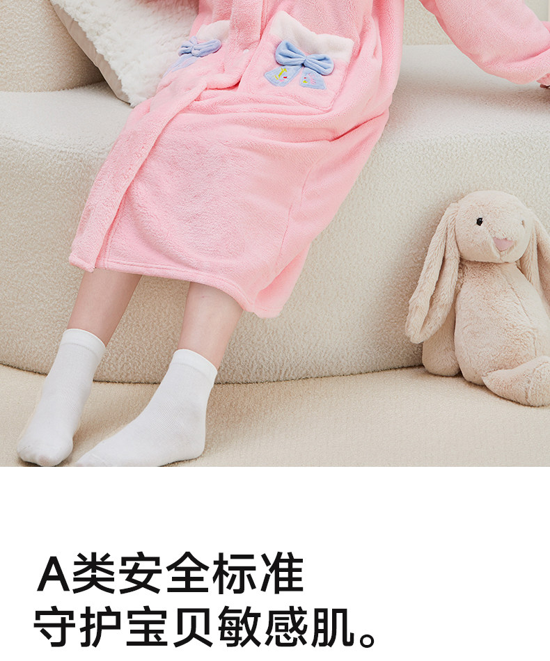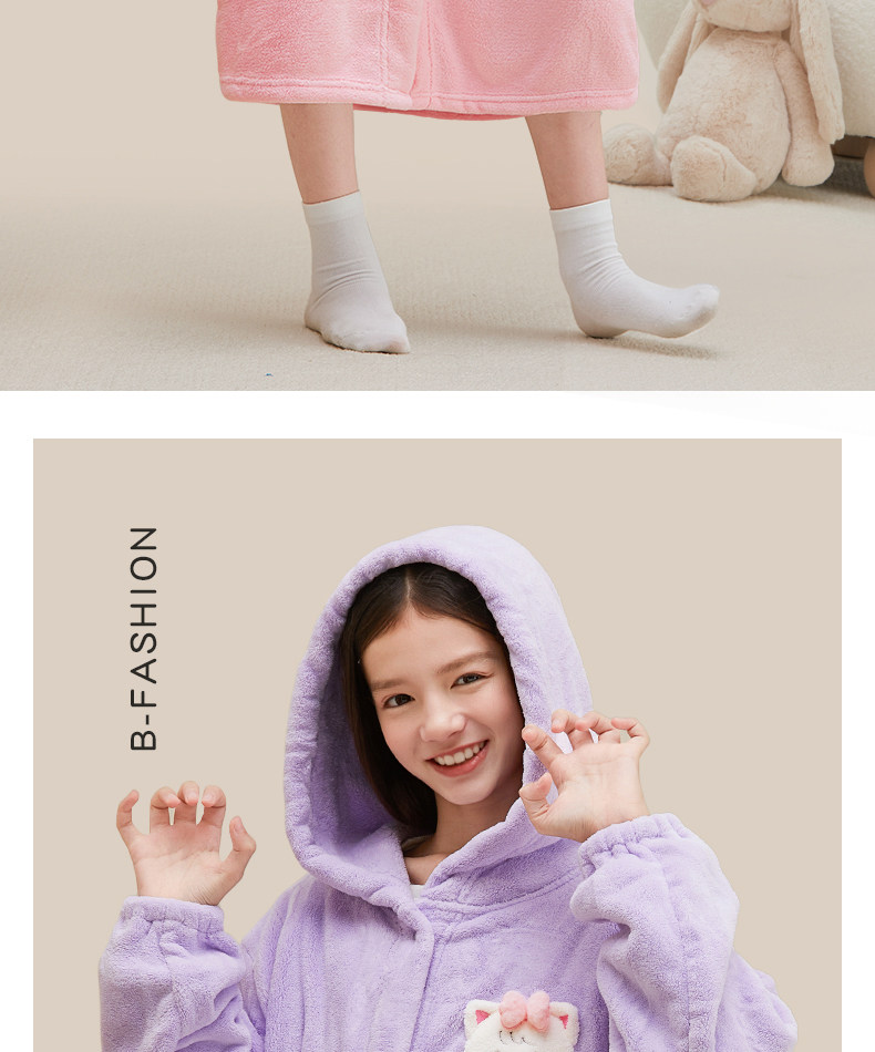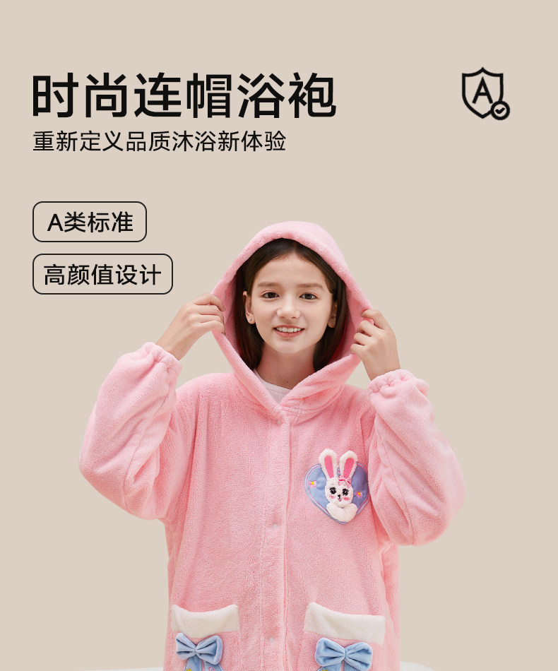 Children's Bathrobe, Thickened Coral Fleece, for Boys and Girls, Older Children and Teenagers, Non-Pure Cotton, Absorbent, for Swimming and Bathing, Class a