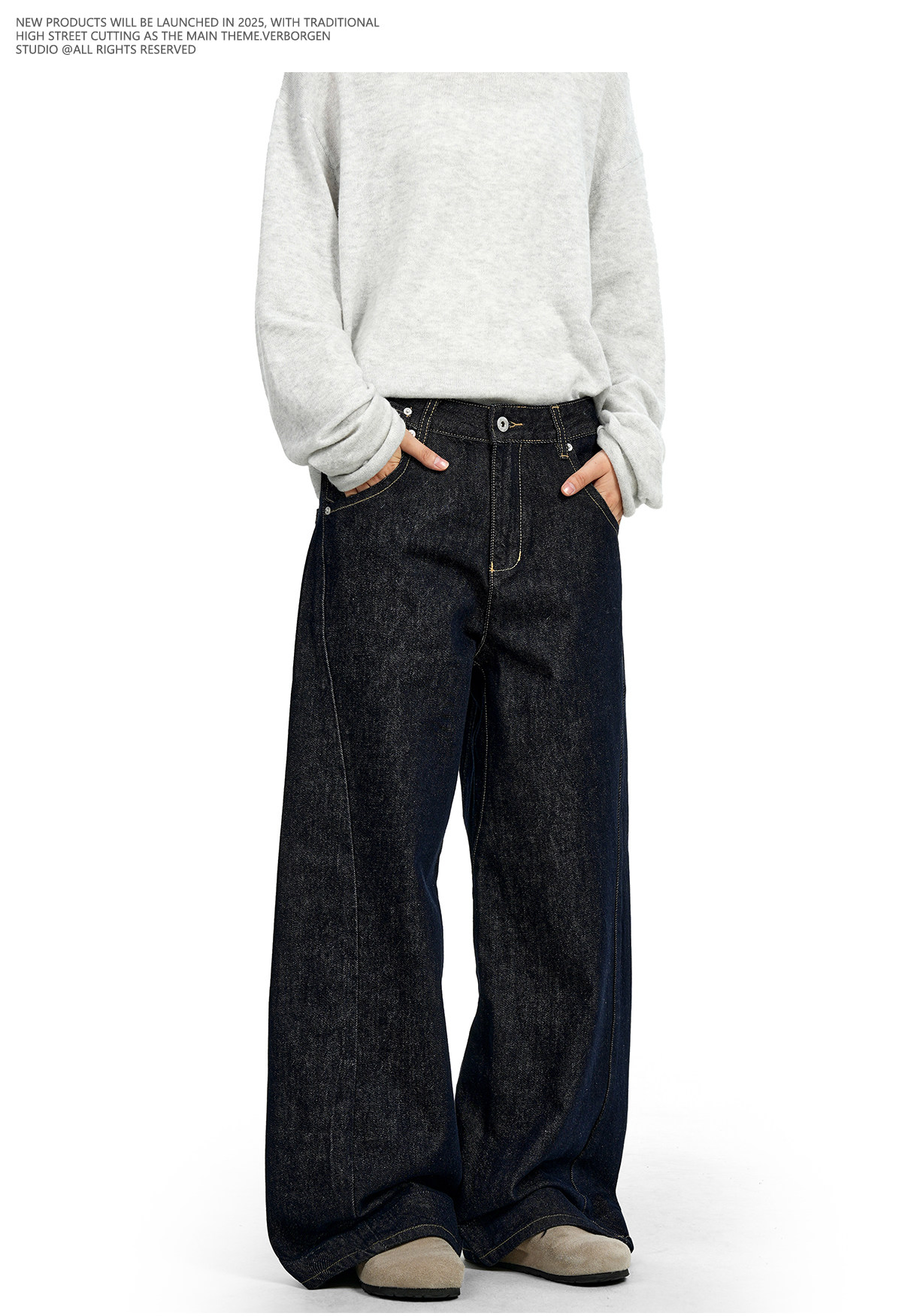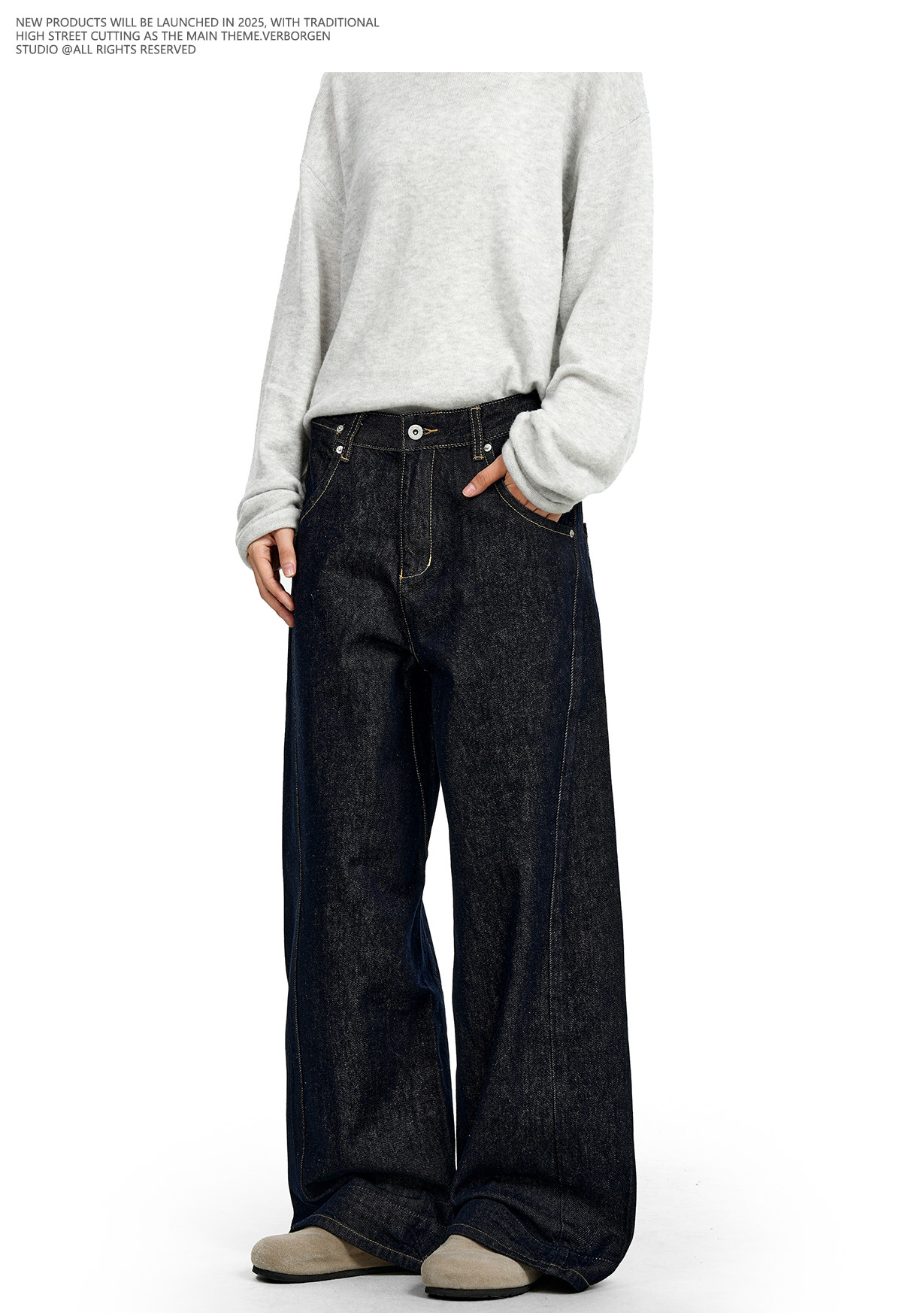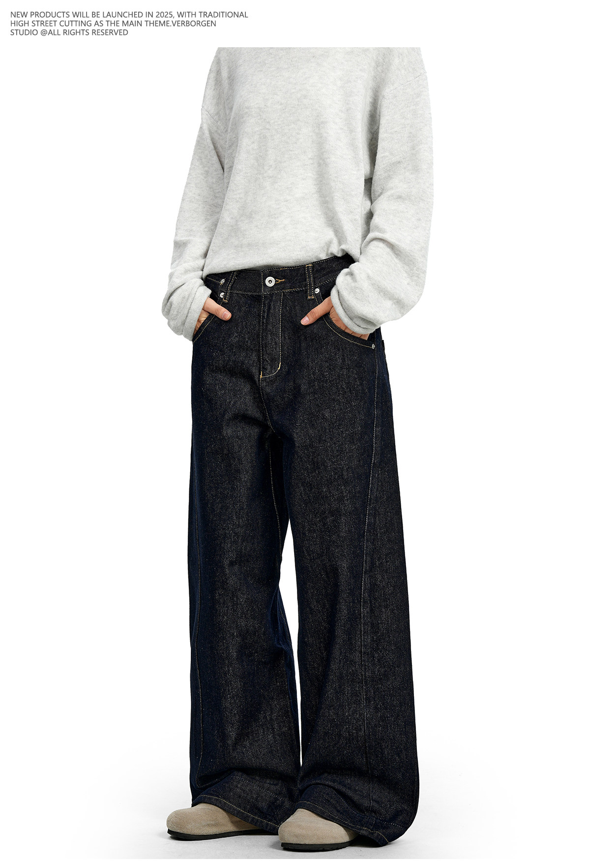 Verborgen American Retro Raw Denim Blue Straight-Leg Jeans Cleanfit Loose Slimming Wide-Leg Trousers for Men