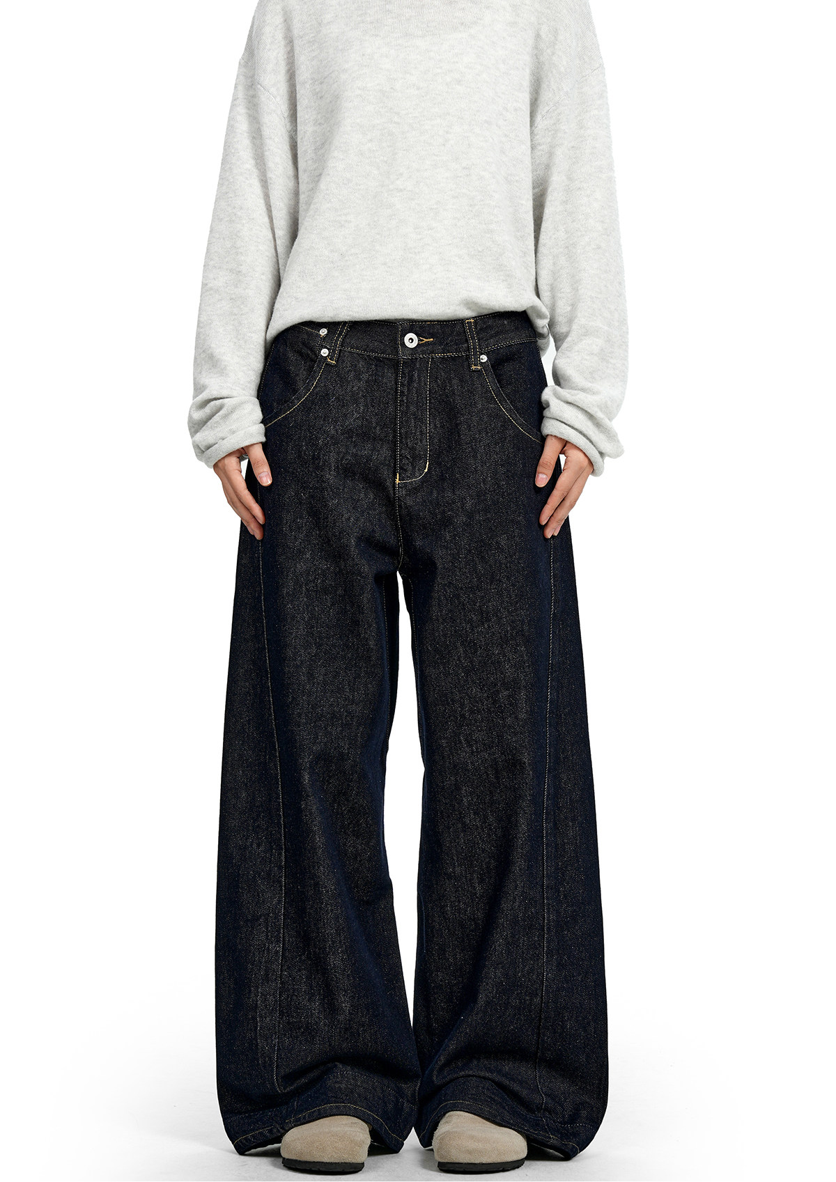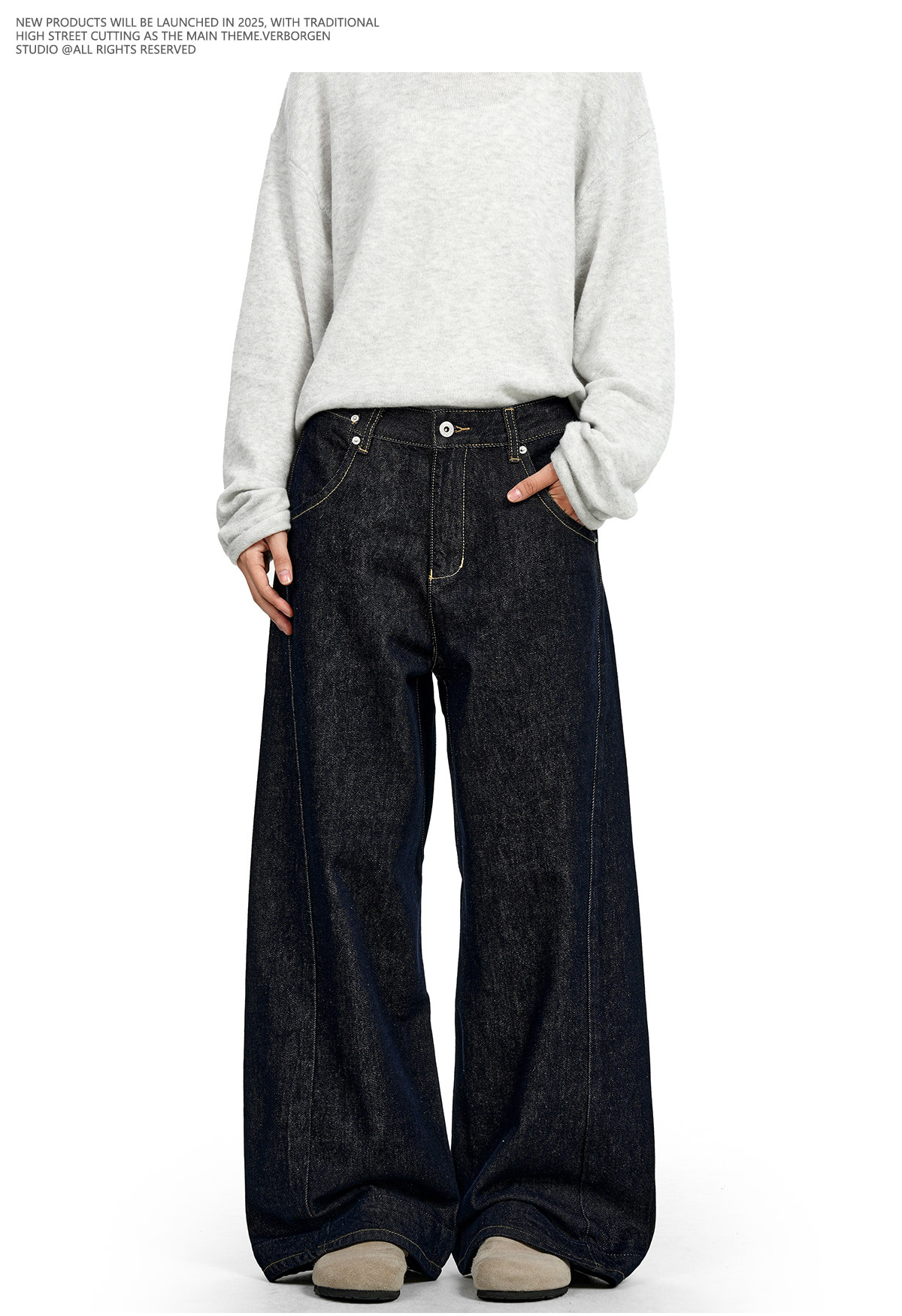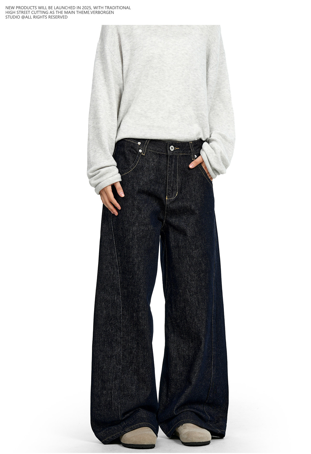 Verborgen American Retro Raw Denim Blue Straight-Leg Jeans Cleanfit Loose Slimming Wide-Leg Trousers for Men