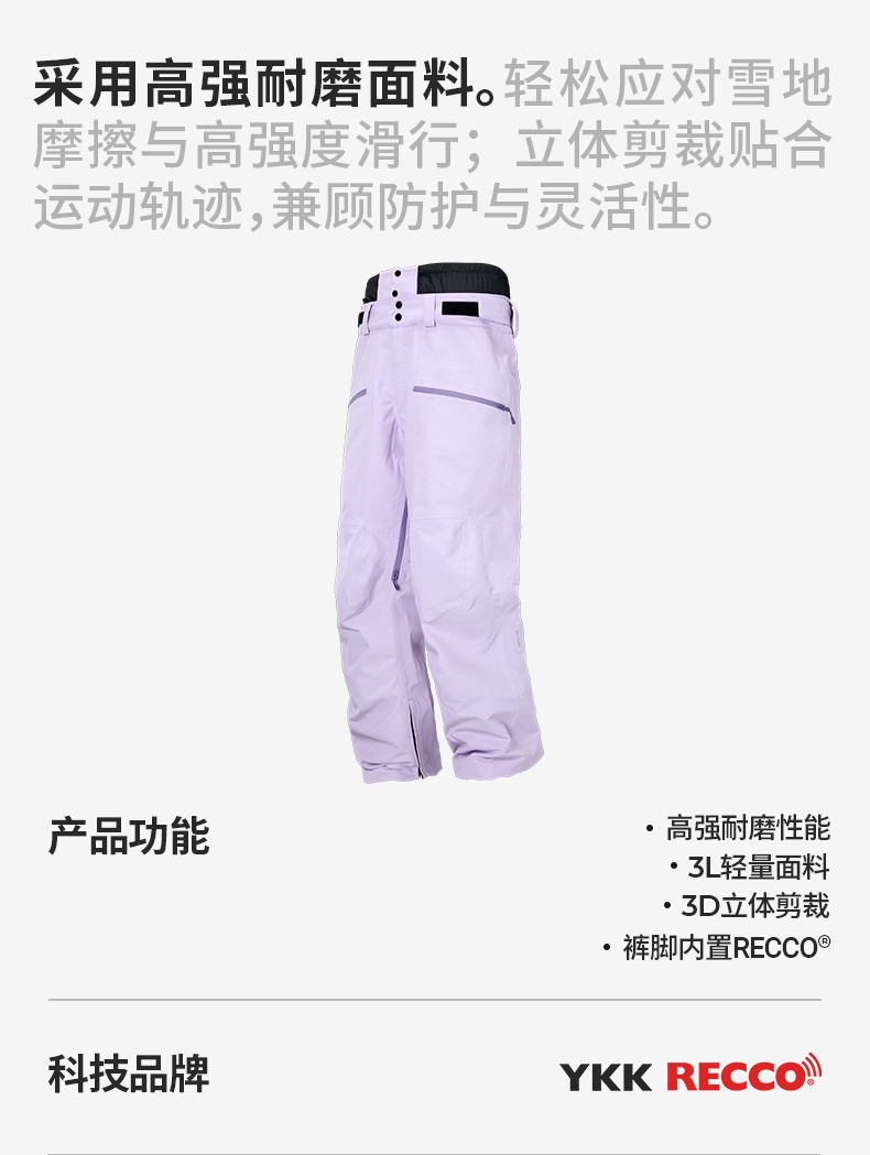 Nanen [Skyline Lite] 25 Models of Single and Double Board 3L Hard Shell Professional Ski Pants for Men and Women, Waterproof Pro Version