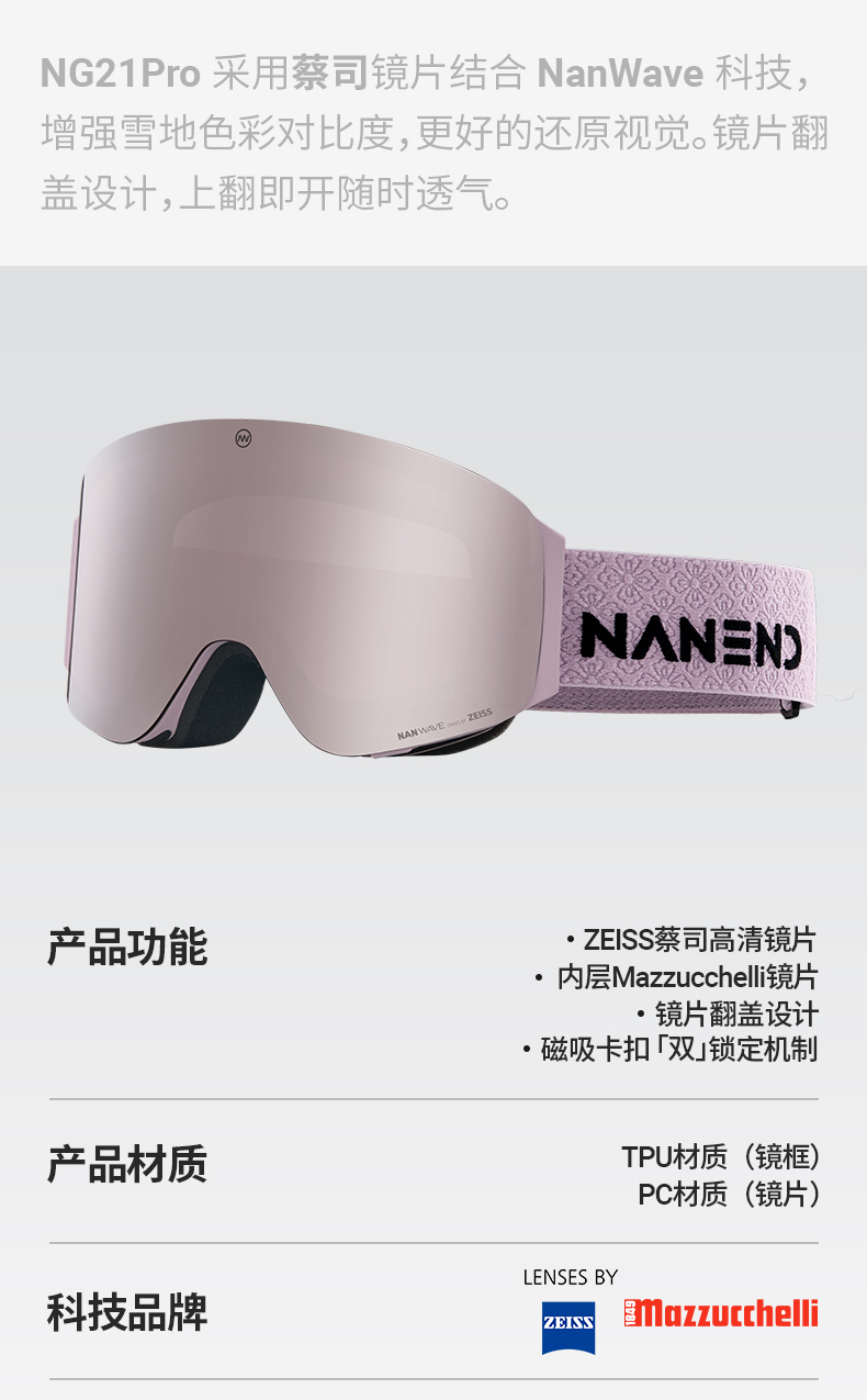Nanen [Instant Concealment] Chinese-Style Ski Goggles Zeiss Flip-Up Snow Goggles Anti-Fog Single/Double Board Goggles