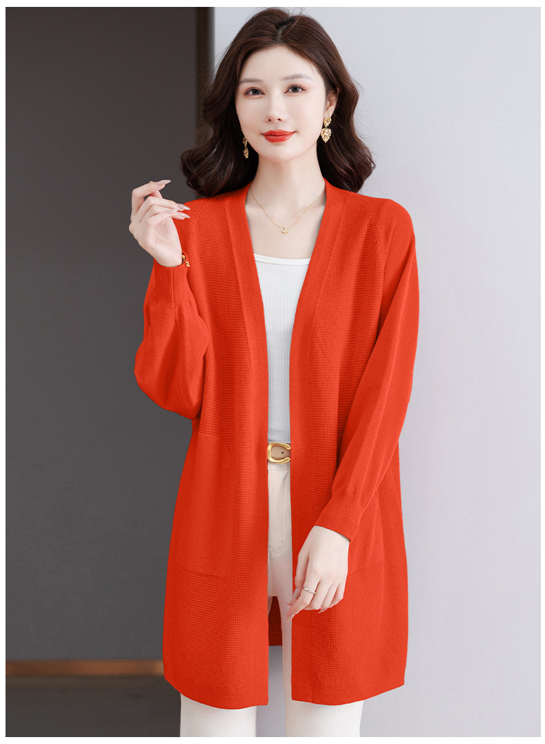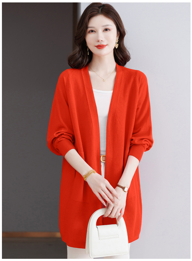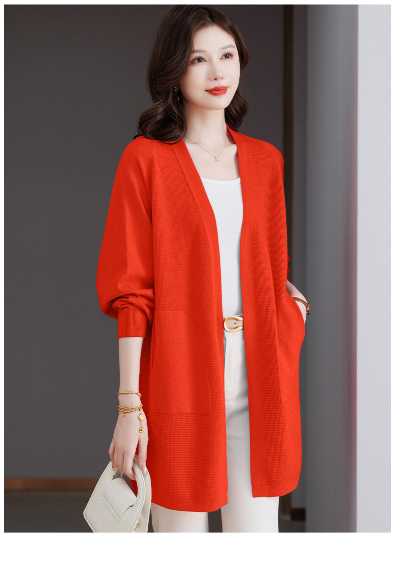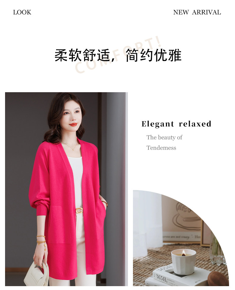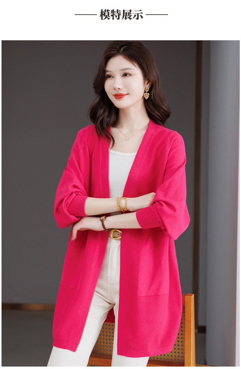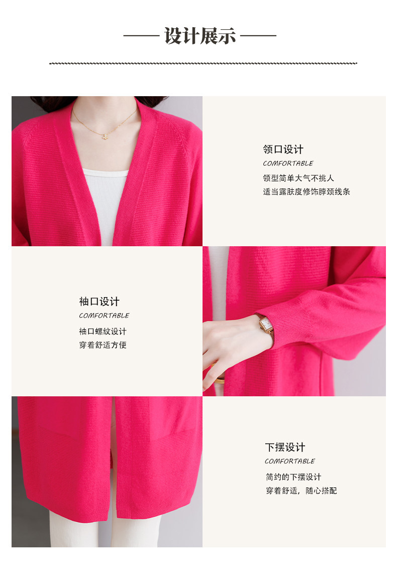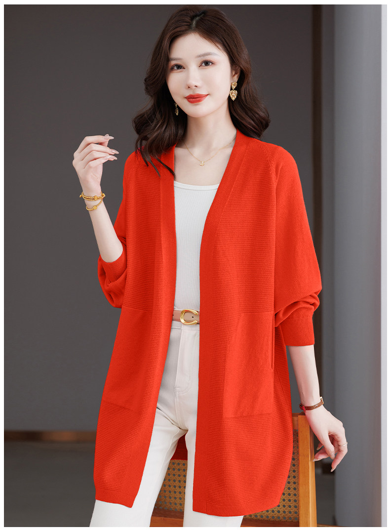 Early Autumn Rose Red Lazy Style Knitted Cardigan Jacket for Women, Mid-Length Loose Thin Sweater, Spring and Autumn Outerwear Shawl