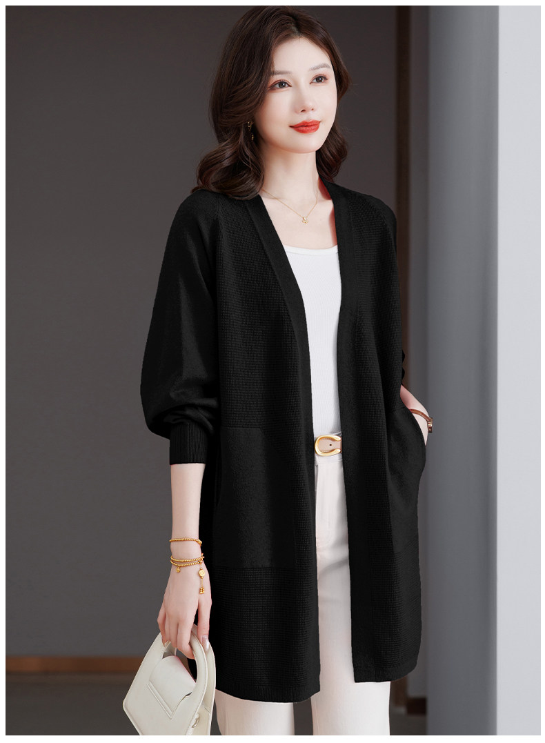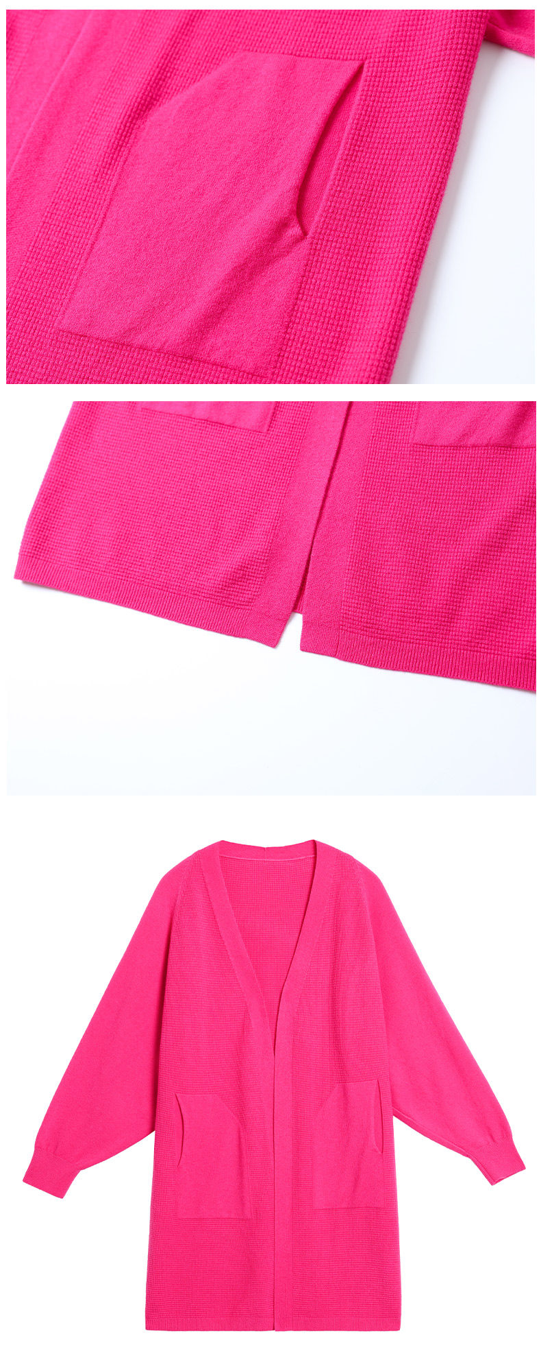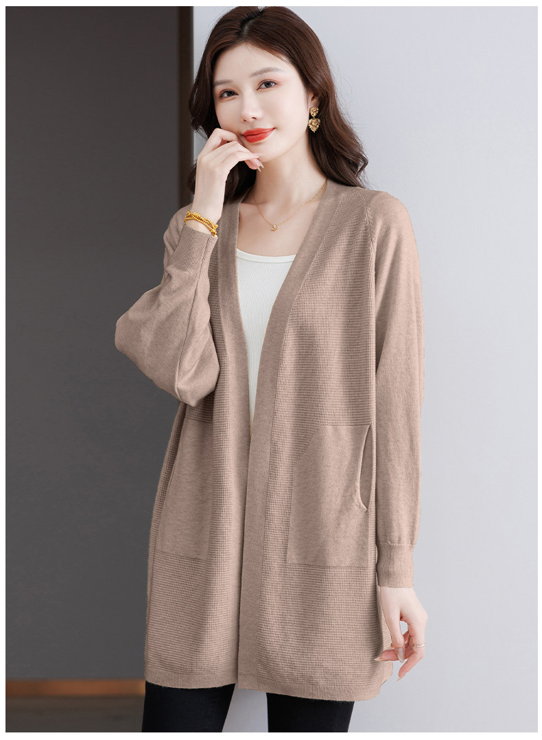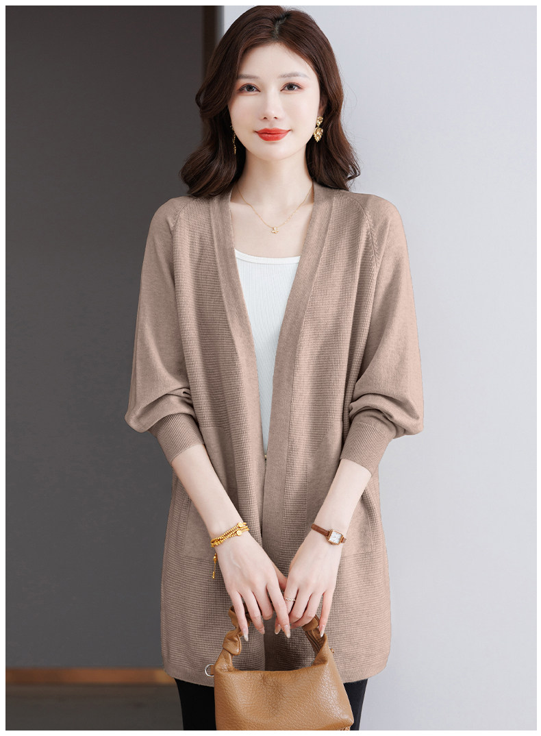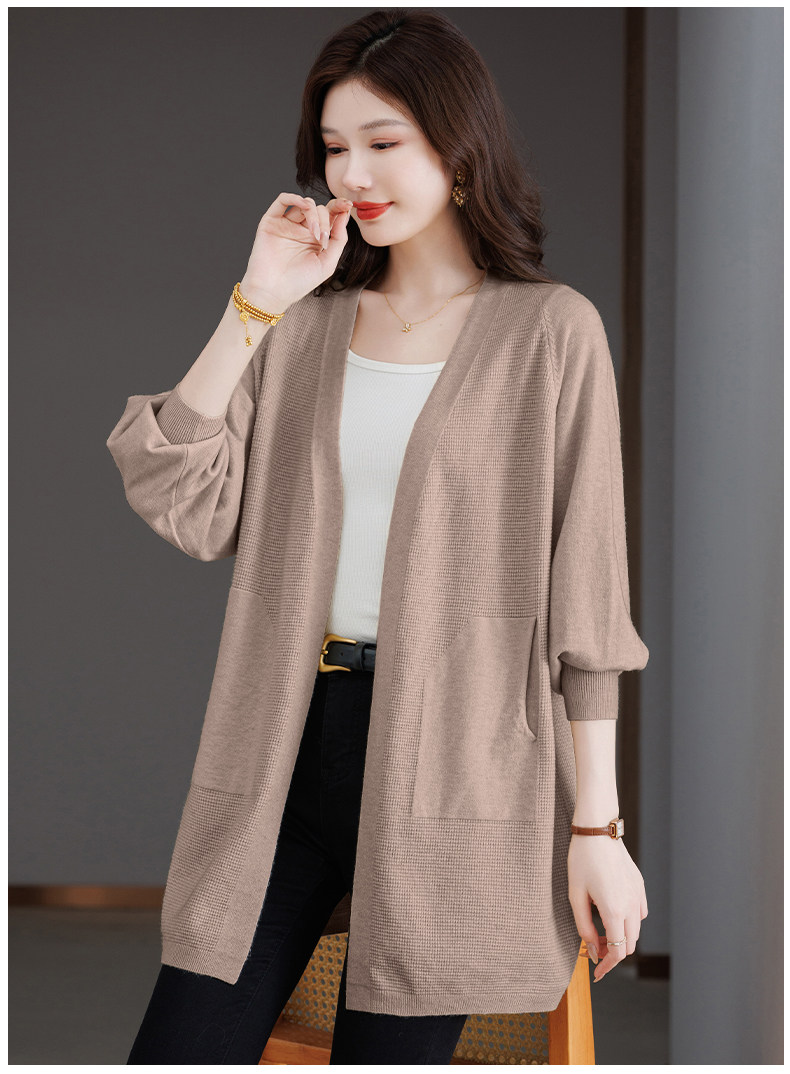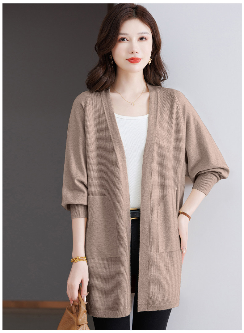 Early Autumn Rose Red Lazy Style Knitted Cardigan Jacket for Women, Mid-Length Loose Thin Sweater, Spring and Autumn Outerwear Shawl